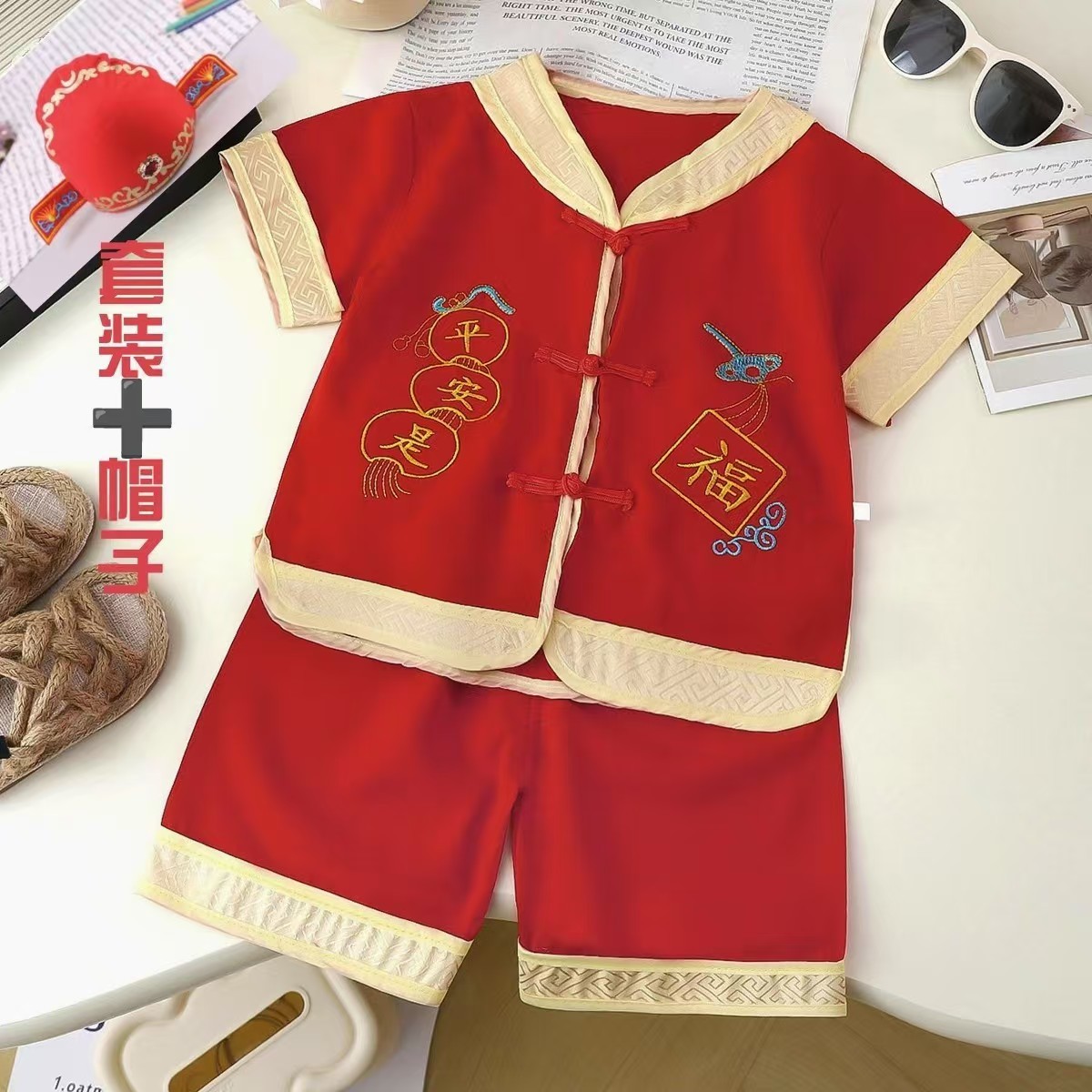 Безопасный костюм с короткими рукавами и красной вышивкой + шапка.; Красный костюм-шорты с короткими рукавами и вышивкой Ping An Fu + шляпа; Введение красного дракона с короткими рукавами и шортами + шляпа; Красный костюм-шорты с короткими рукавами и вышивкой Pisces + шапка; Красный вышитый благоприятный костюм с короткими рукавами и шортами с короткими рукавами + шапка; Желтый вышитый благоприятный шорт с короткими рукавами, костюм + шапка; Желтые шорты с короткими рукавами и вышивкой дракона; Желтый комплект шорт с короткими рукавами Pisces с вышивкой; Красные шорты с подвеской в виде дракона и короткими рукавами + шапка; Красный вышитый безопасный костюм с короткими рукавами + туфли; Красный вышитый благоприятный костюм с короткими рукавами и замком + туфли; Костюм с короткими рукавами и подвеской Fulong с красной вышивкой + туфли; Костюм Hermit с короткими рукавами и вышивкой красного дракона + туфли; Красная вышивка мира — костюм с короткими рукавами и туфли Фу.; Red Pisces Embroider — костюм с короткими рукавами и туфли Фу.; Красный вышитый костюм с короткими рукавами для мира на каждый год.; Костюм с коротким рукавом из красной вышивки дракона; Красный благоприятный костюм с короткими рукавами и пожелательным миру.; Красный Embroider Ping An — это благословещий комплект с короткими рукавами.; Осенний костюм Longfu с короткими рукавами и красной вышивкой.; Красный вышитый костюм Pisces с короткими рукавами