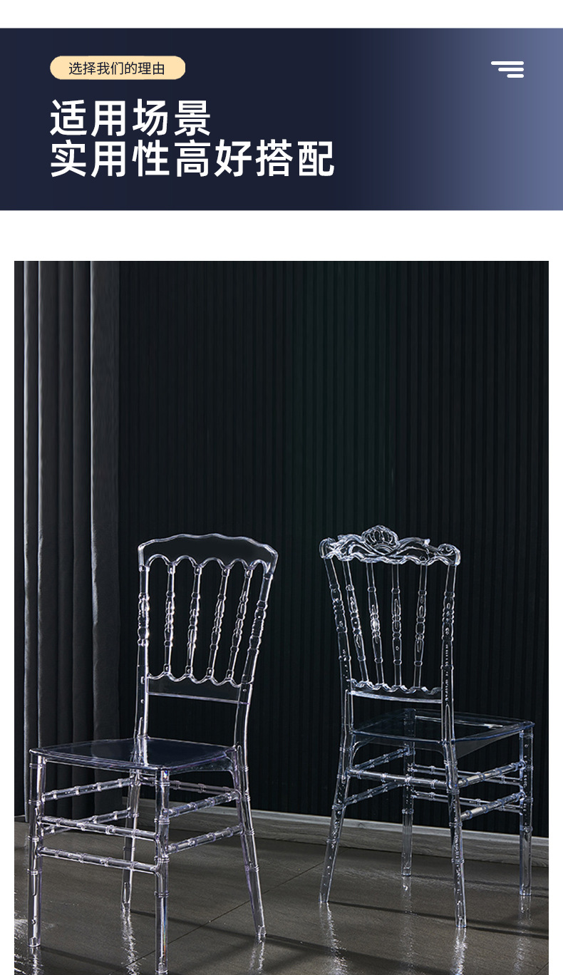Трансграничные производители акриловая прозрачная хрустальная кресла в отеле Ballroom Свадебные мероприятия на свежем воздухе Наполеон бамбуковый стул
