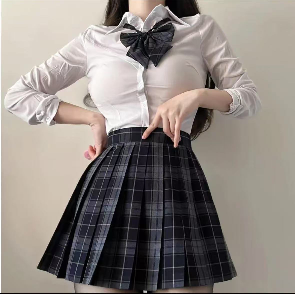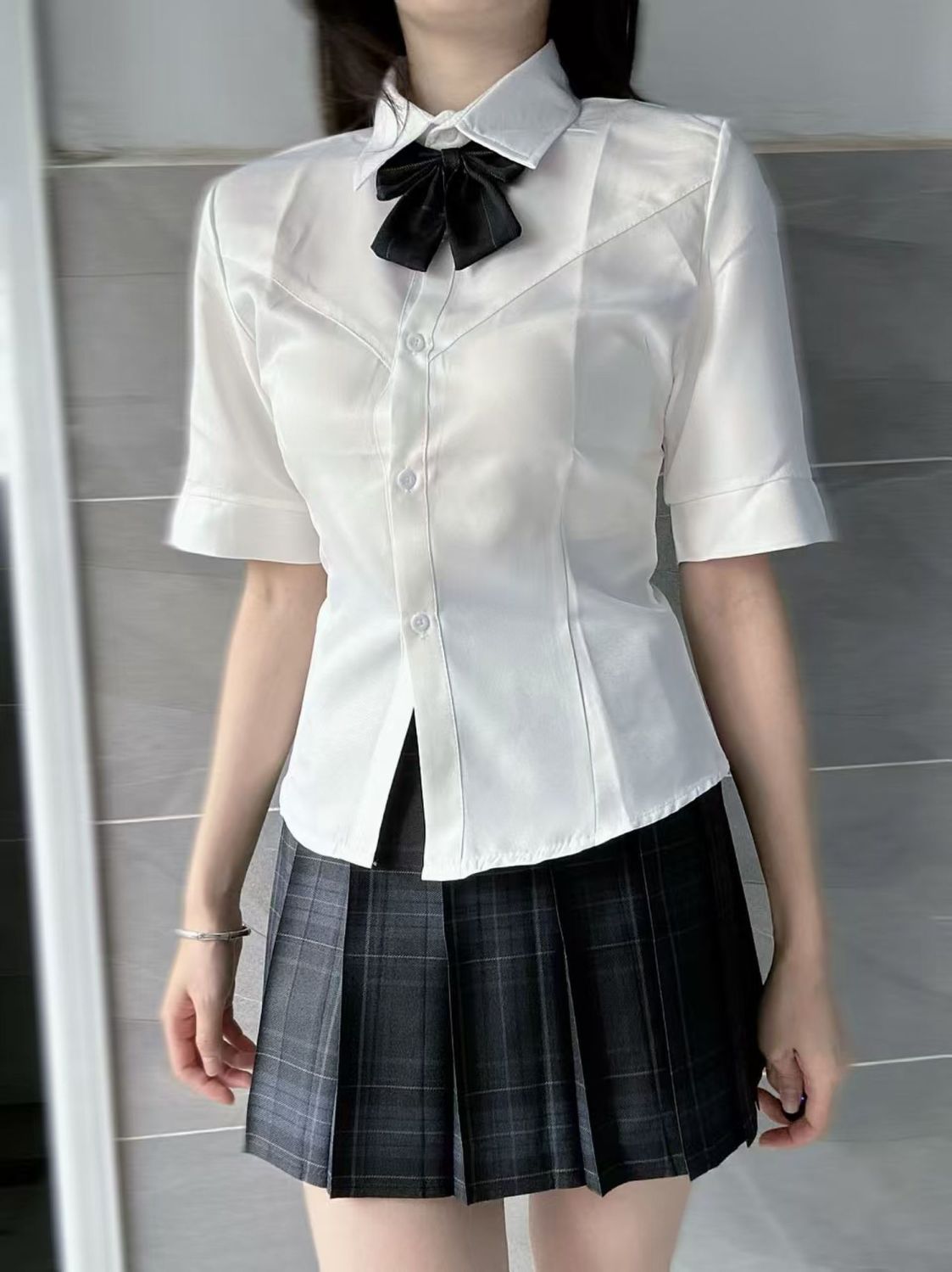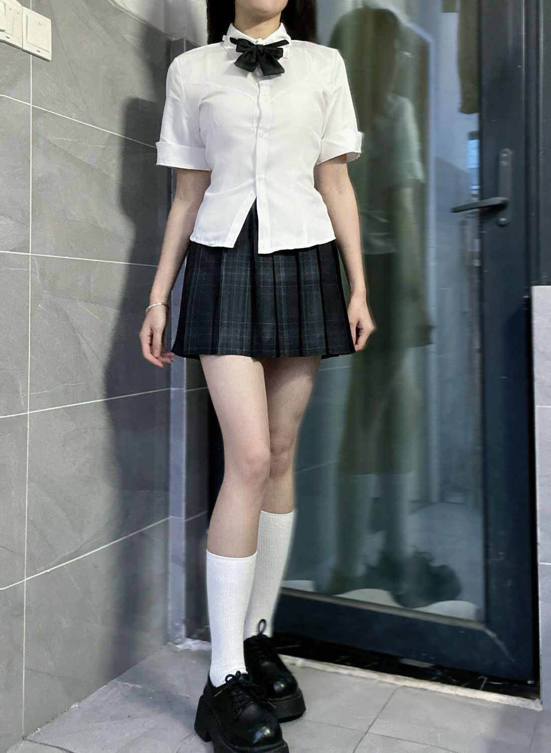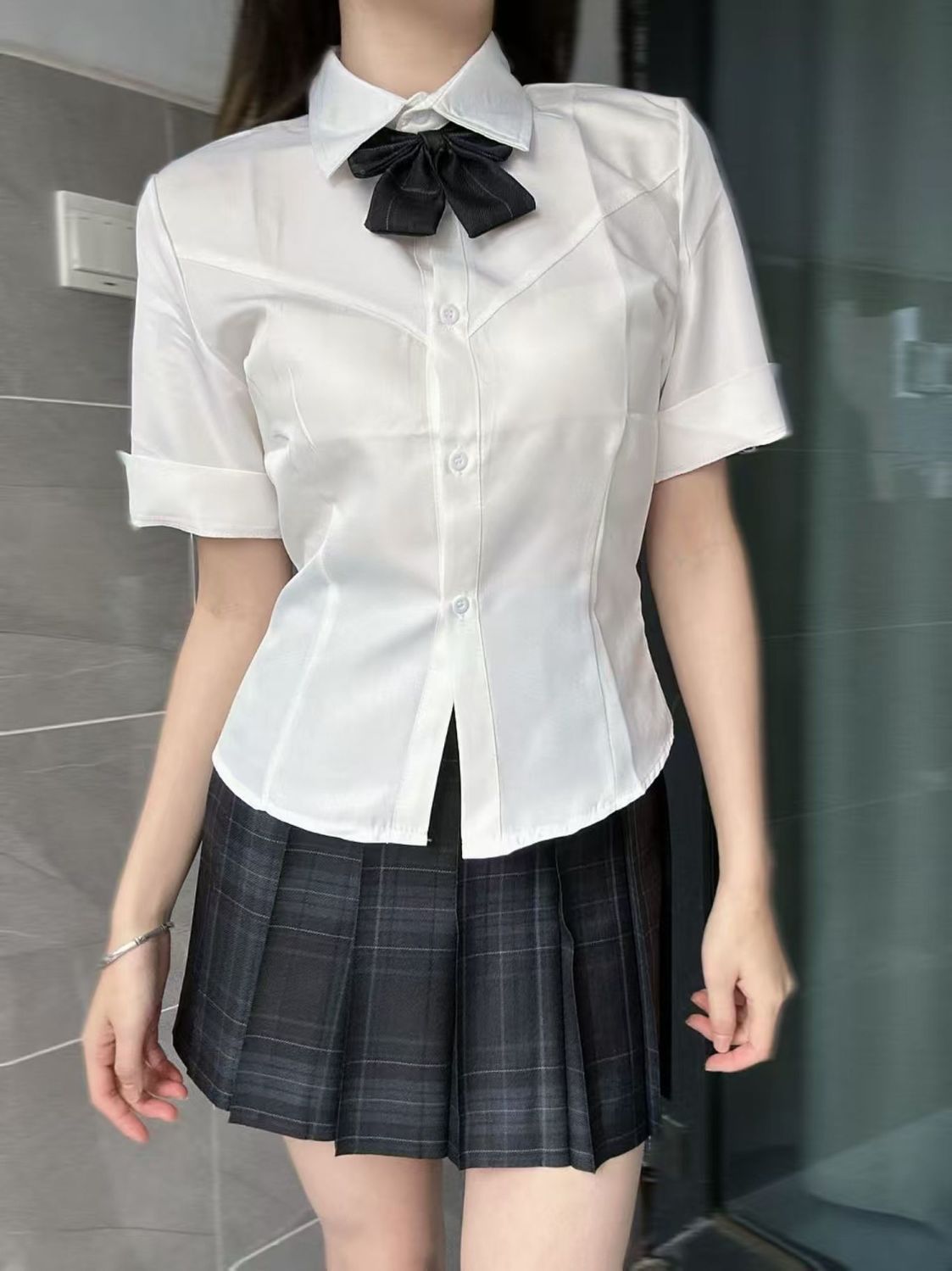 Белые короткие рукава [цена за единицу коротких рукавов]; Белые длинные рукава [один длинный рукав]; Белые короткие рукава + темно-серая юбка [костюм]; Белые длинные рукава + темно-серая юбка [костюм]; Белые короткие рукава + черная плиссированная юбка [костюм]; Черно-белая клетчатая юбка [одинарная короткая юбка]