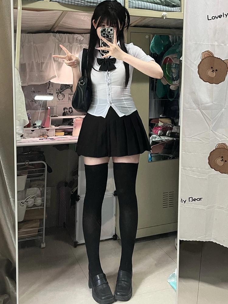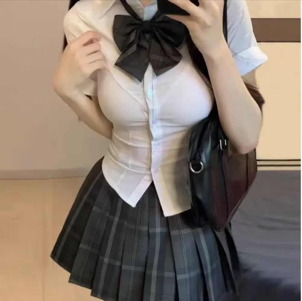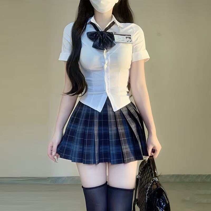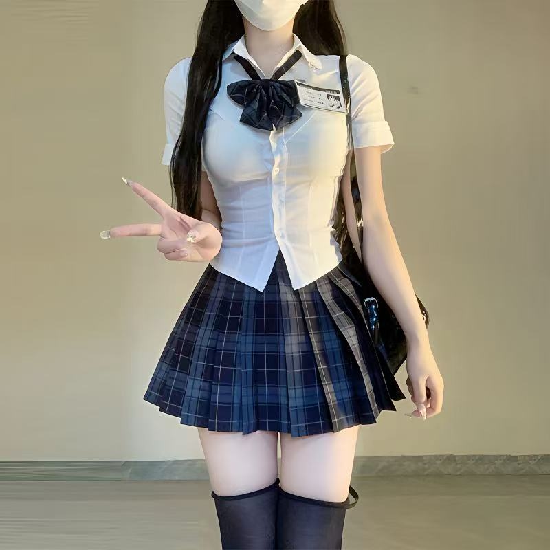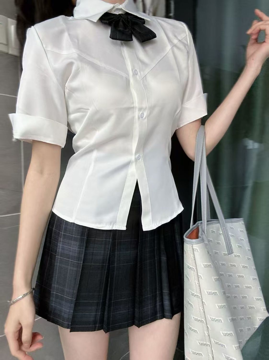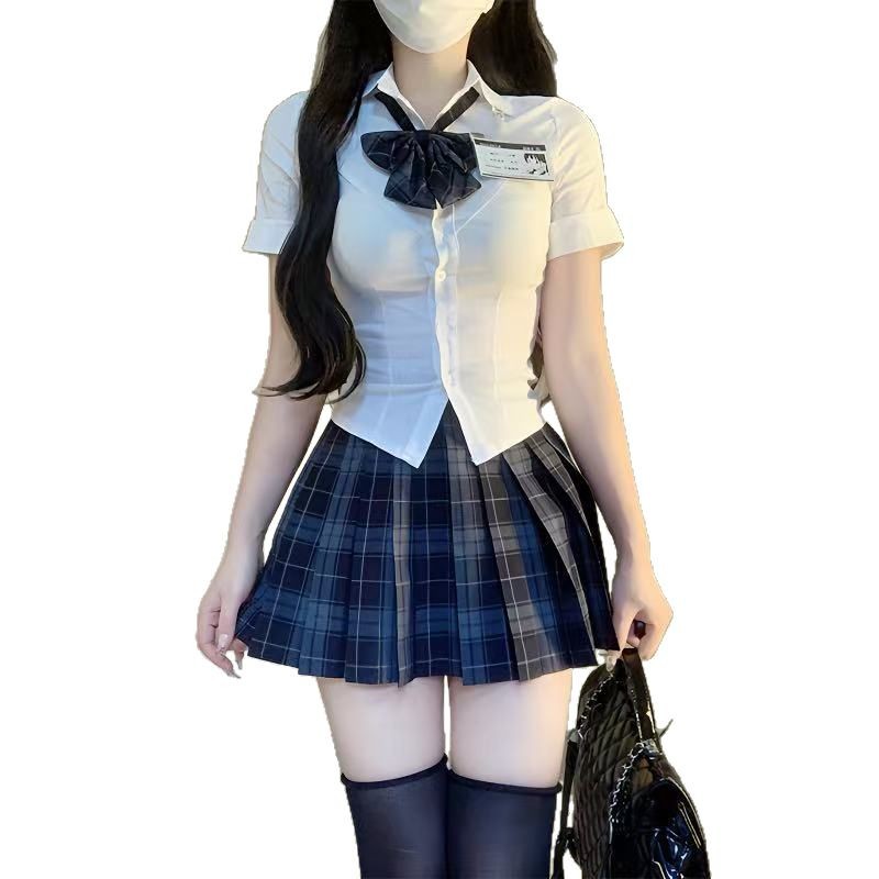 Белые короткие рукава [цена за единицу коротких рукавов]; Белые длинные рукава [один длинный рукав]; Белые короткие рукава + темно-серая юбка [костюм]; Белые длинные рукава + темно-серая юбка [костюм]; Белые короткие рукава + черная плиссированная юбка [костюм]; Черно-белая клетчатая юбка [одинарная короткая юбка]