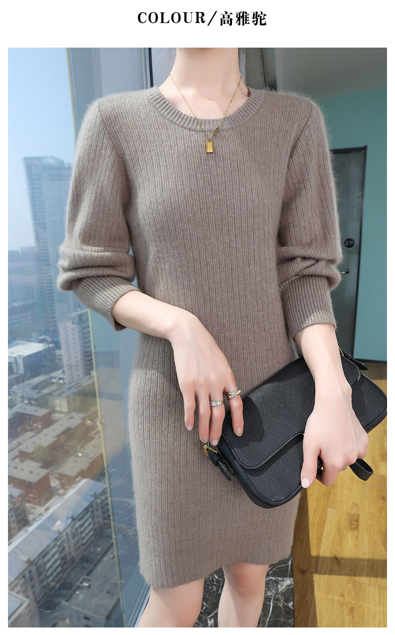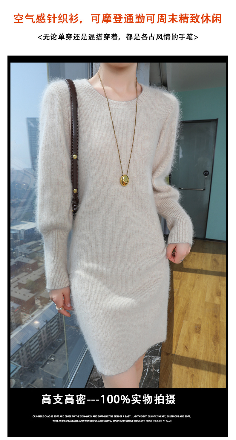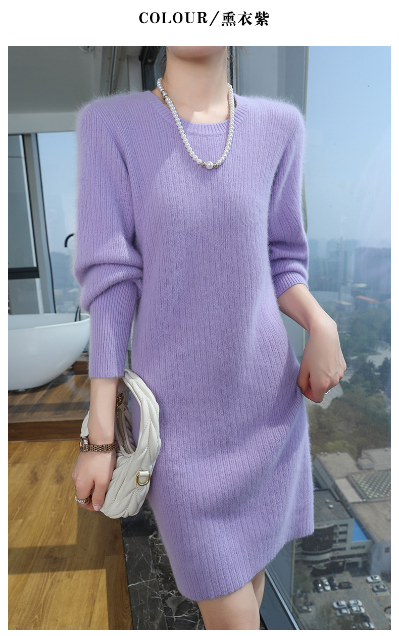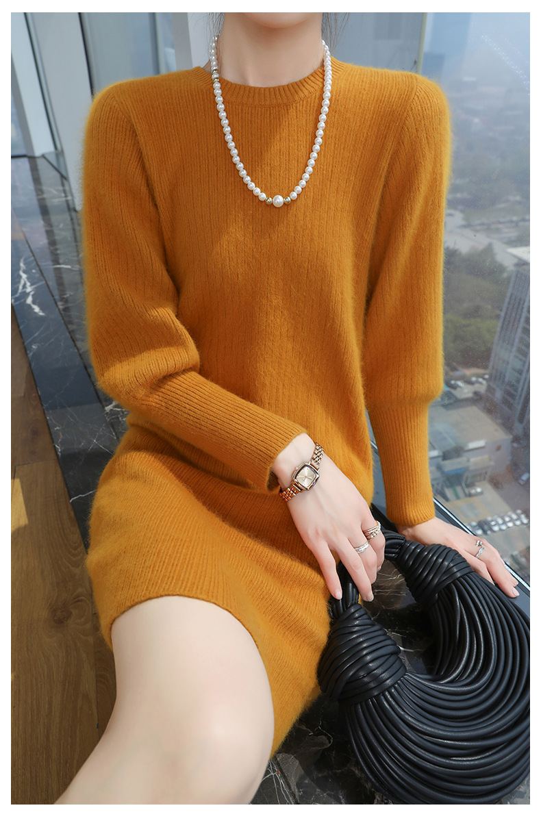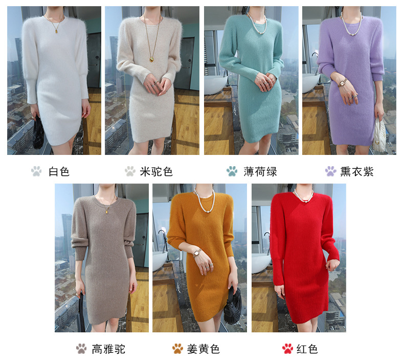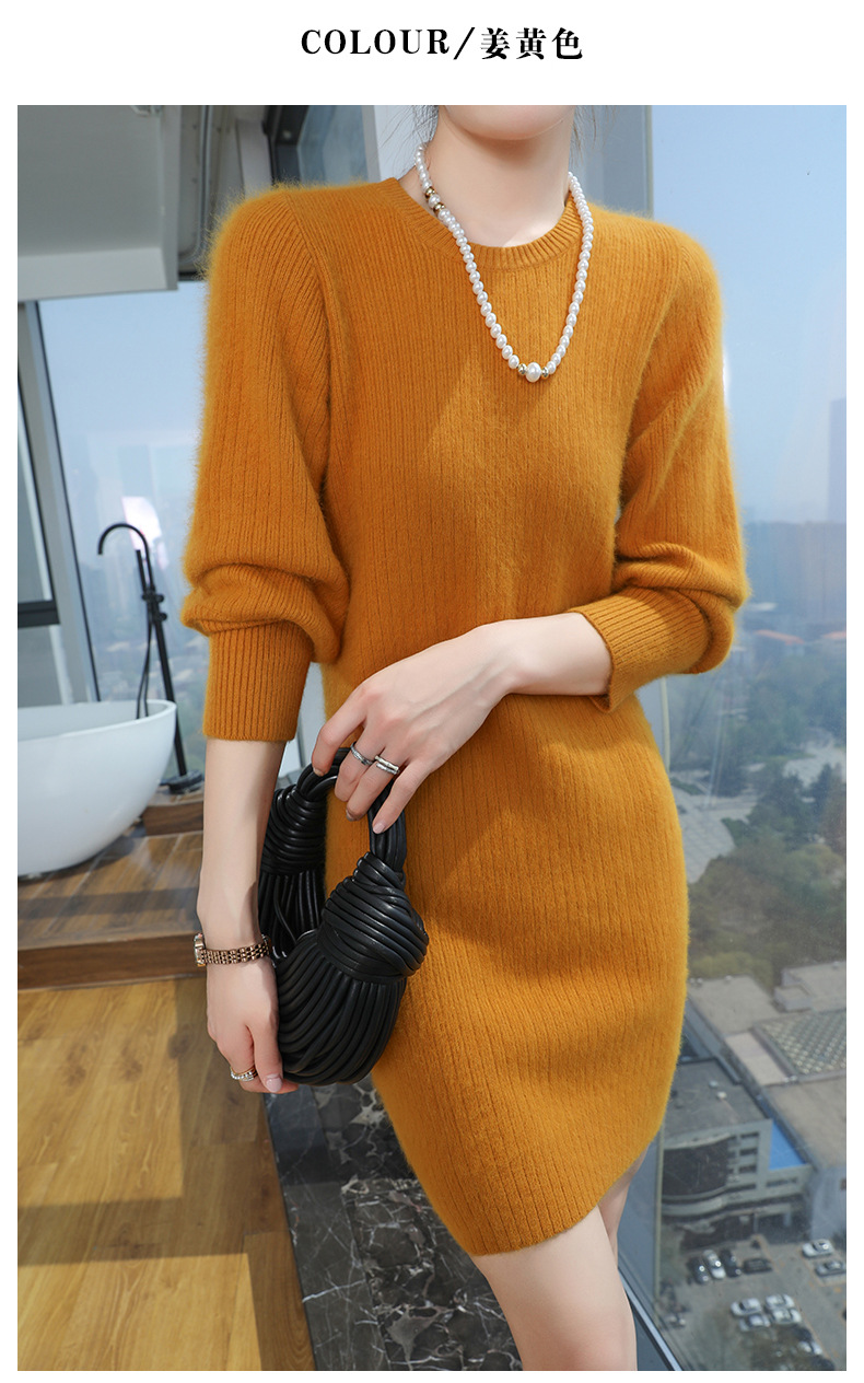 2025 весна и осень новый норковый бархат с круглым вырезом трикотажное платье сплошной цвет свободный теплый длинный рукав юбка-свитер средней и длинной