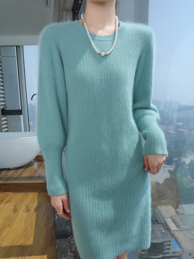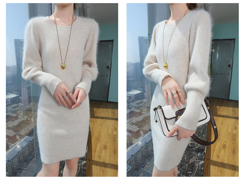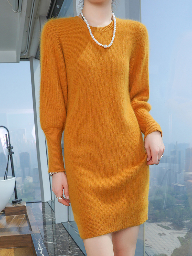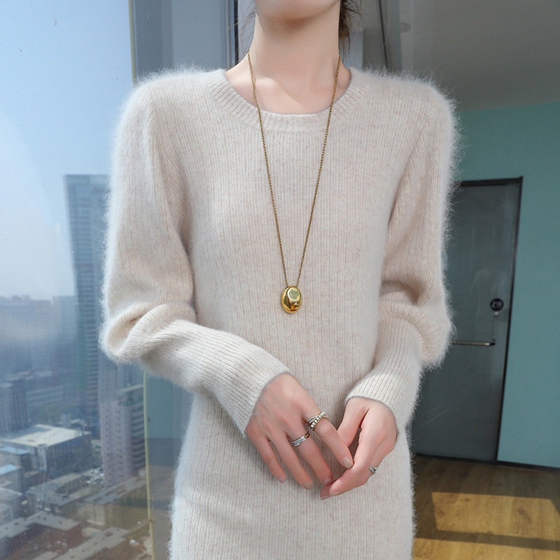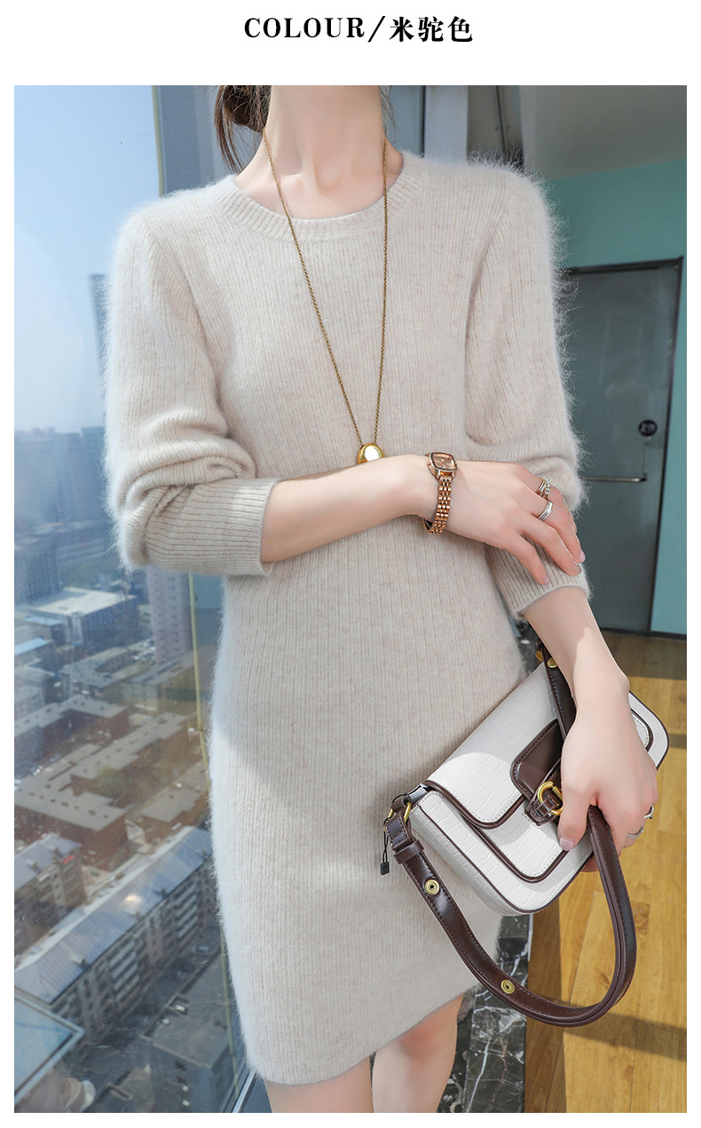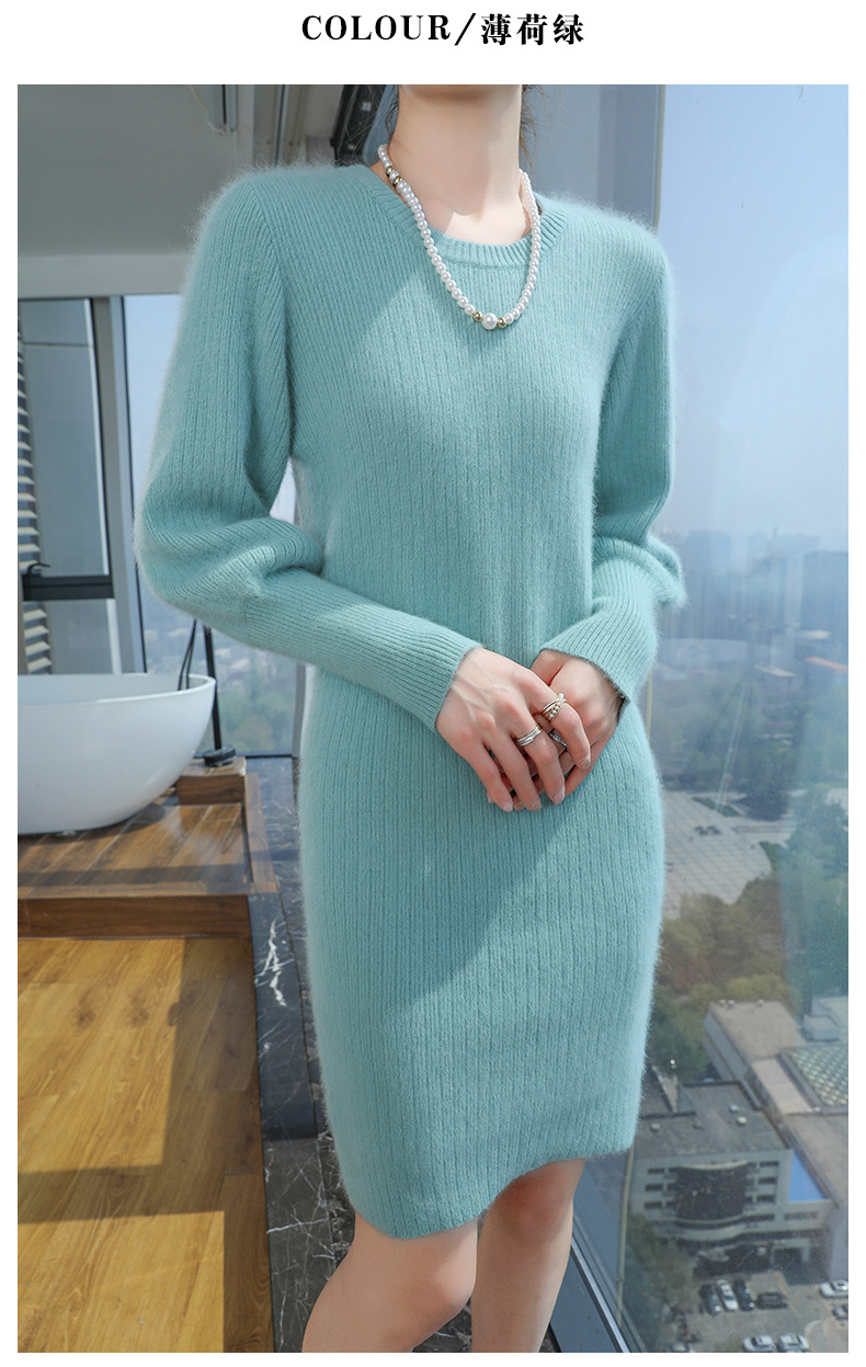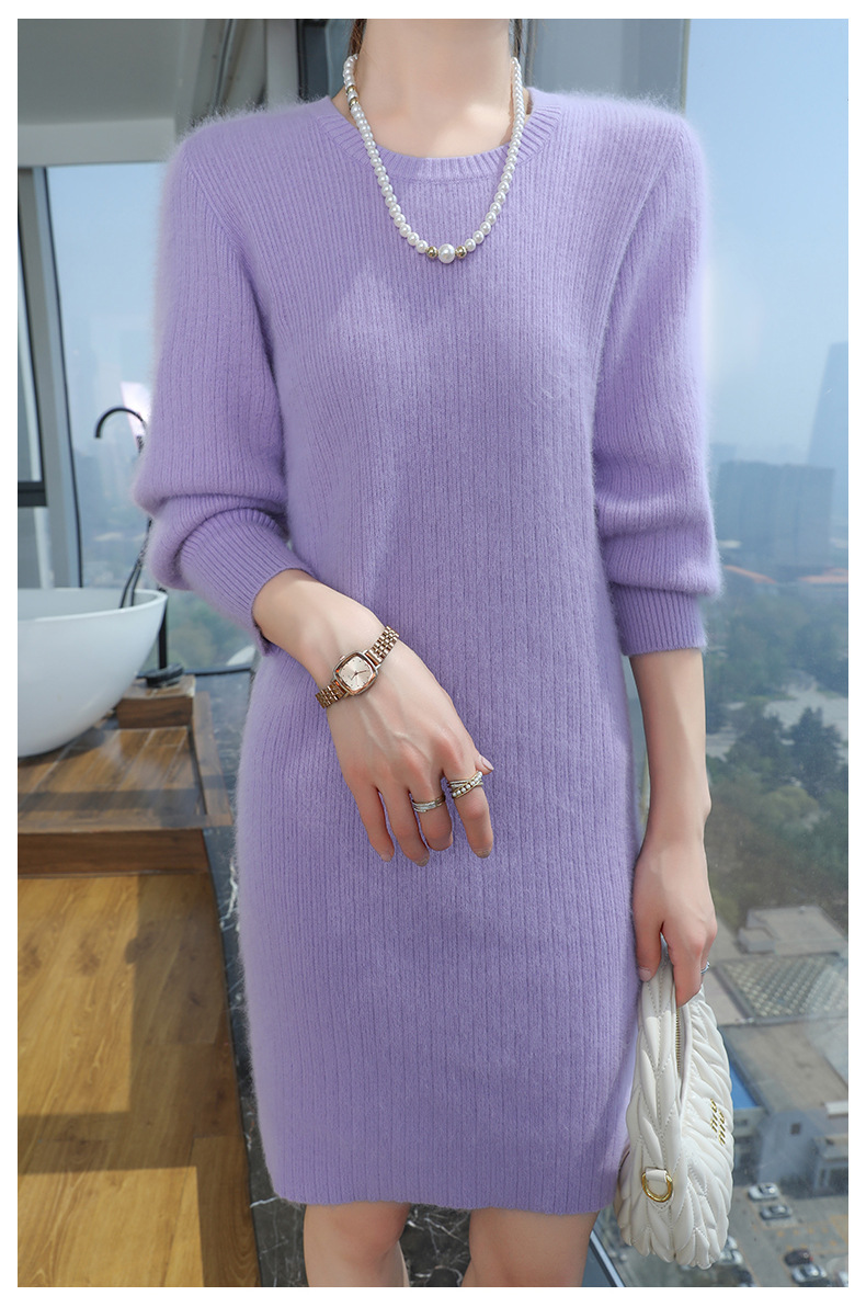 2025 весна и осень новый норковый бархат с круглым вырезом трикотажное платье сплошной цвет свободный теплый длинный рукав юбка-свитер средней и длинной