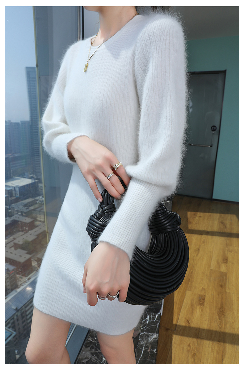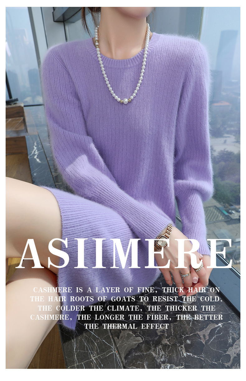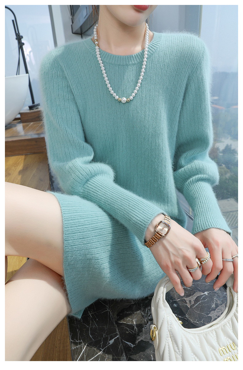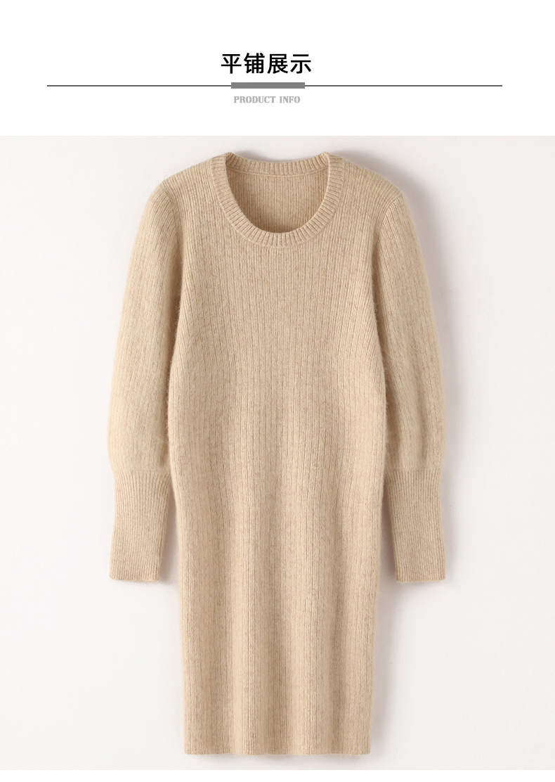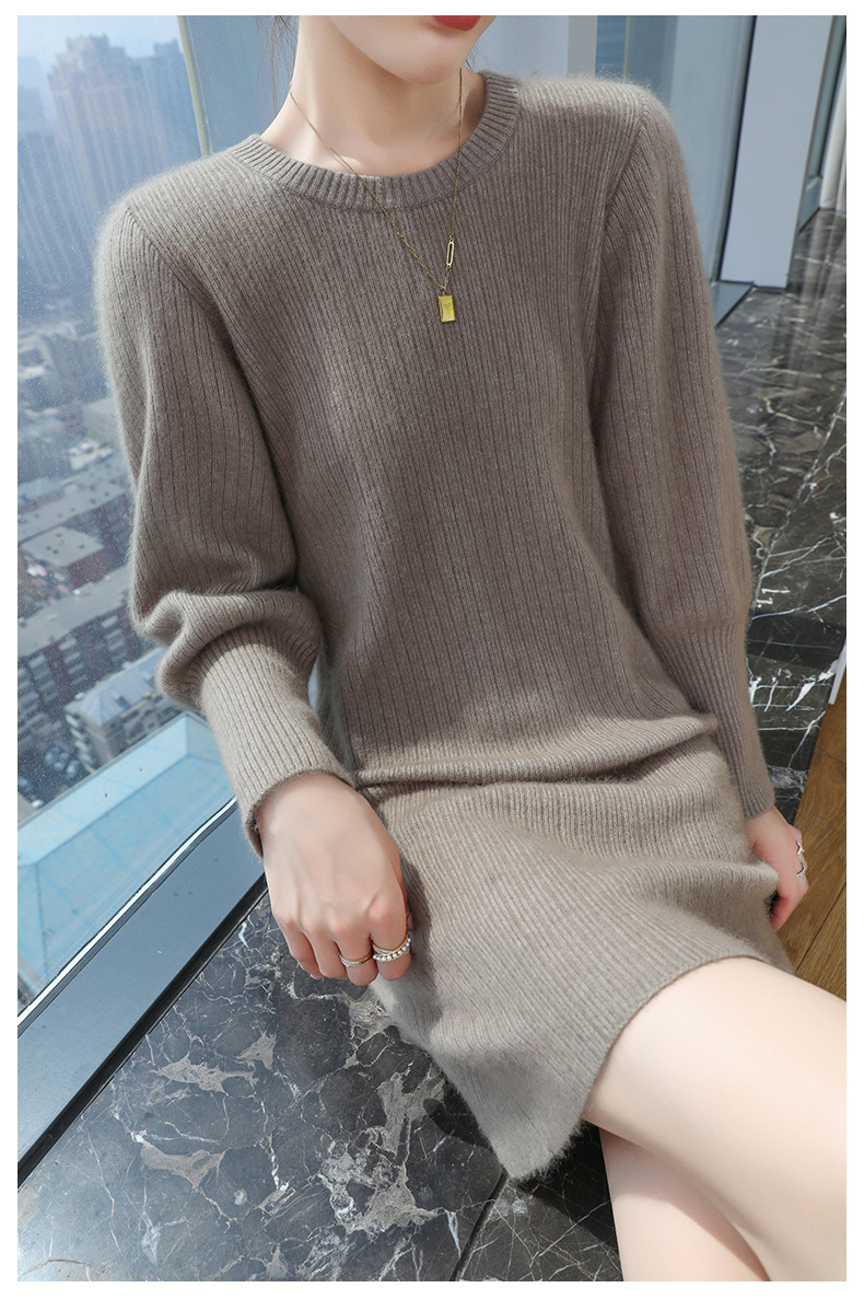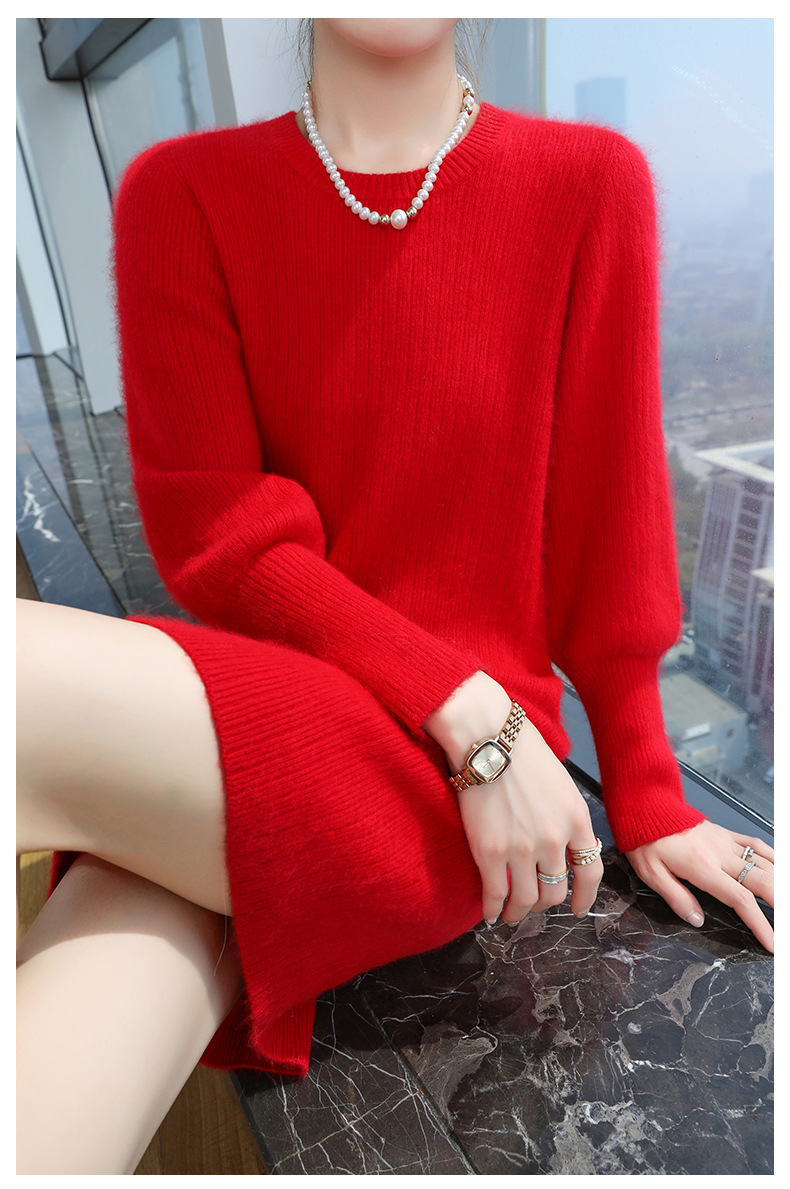 2025 весна и осень новый норковый бархат с круглым вырезом трикотажное платье сплошной цвет свободный теплый длинный рукав юбка-свитер средней и длинной