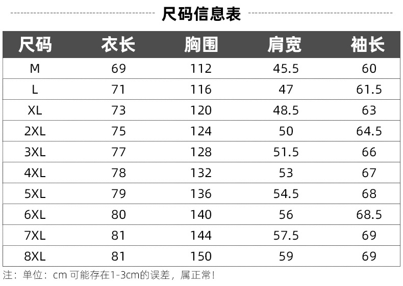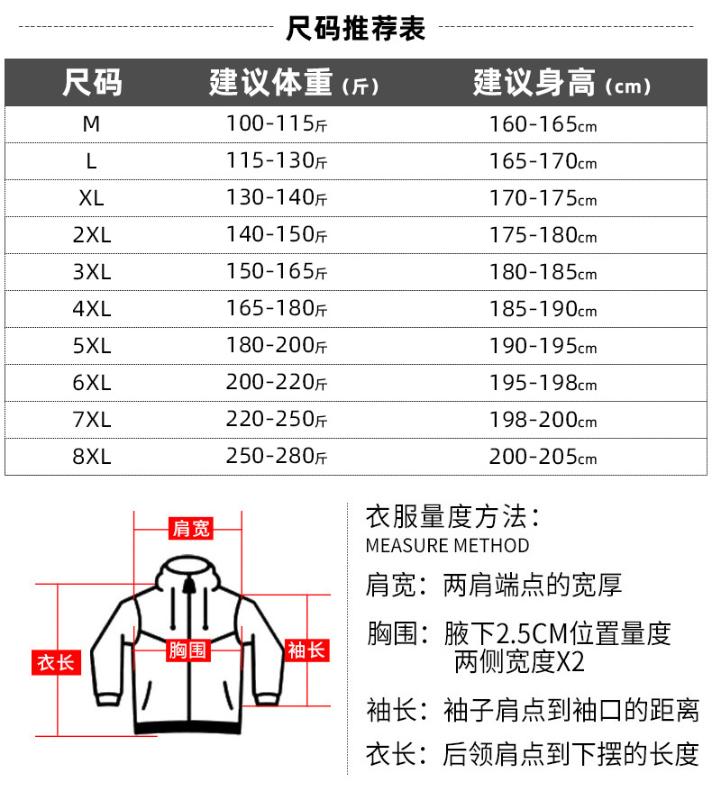M; L; XL; XXL; XXXL; XXXXL; 5XL; 6XL; 7XL; 8XL