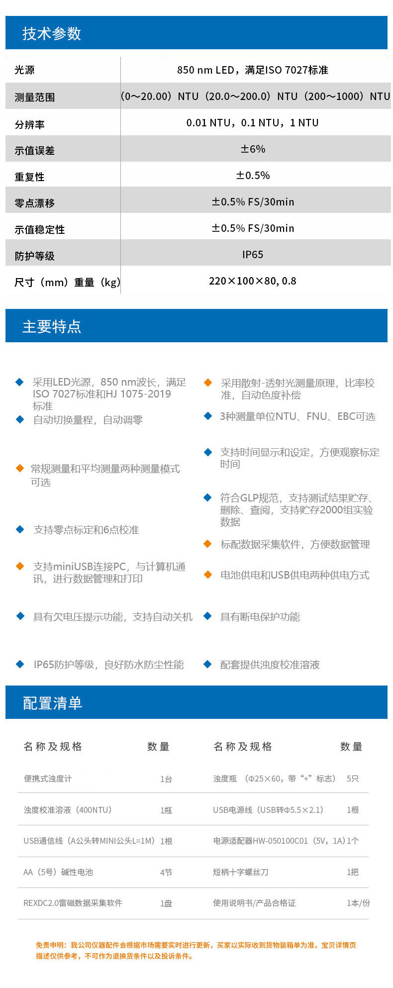 (0~20.00)NTU,(20.0~200.0)NTU,(200~1000)NTU