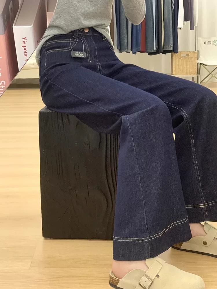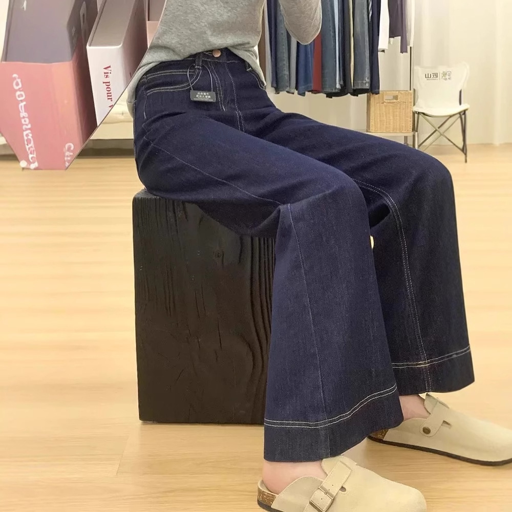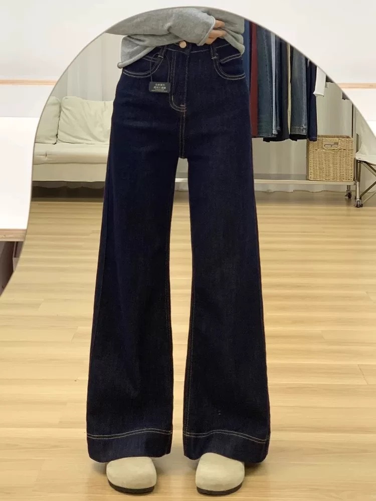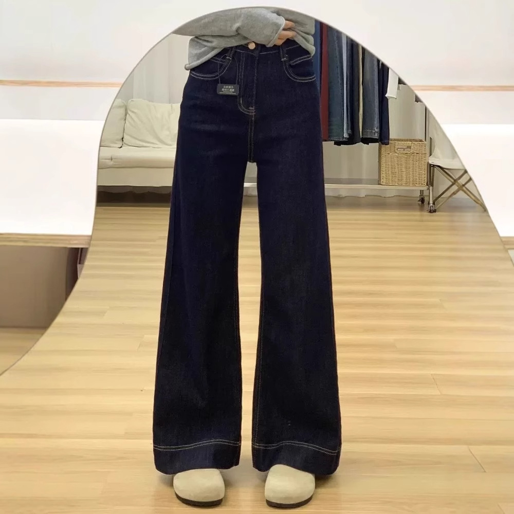 Темно-синяя версия широкие джинсы женский 2025 весна толстый мм большой размер тонкая грушевидная фигура свободные прямые брюки