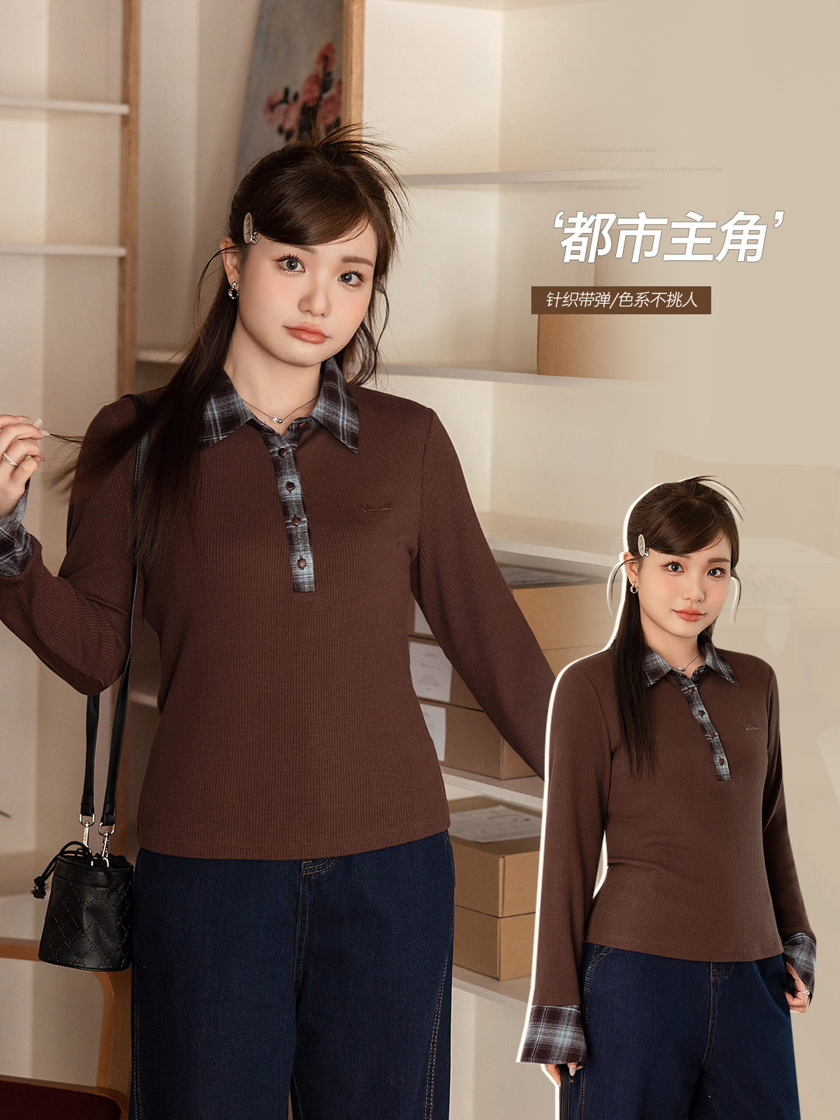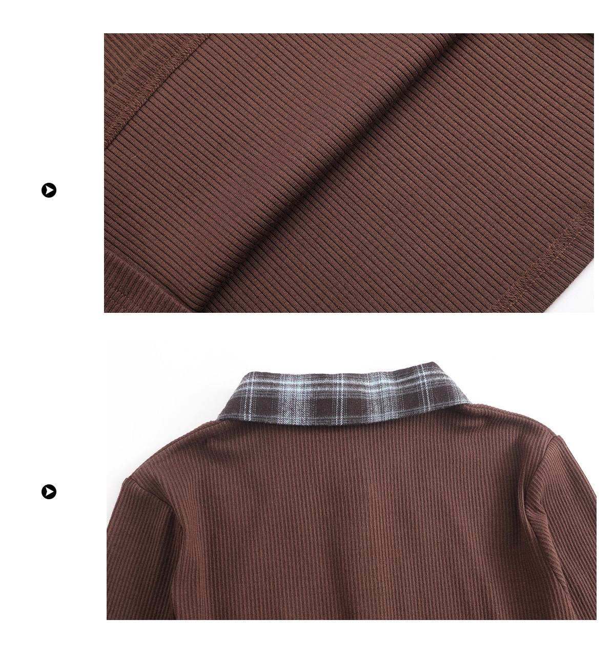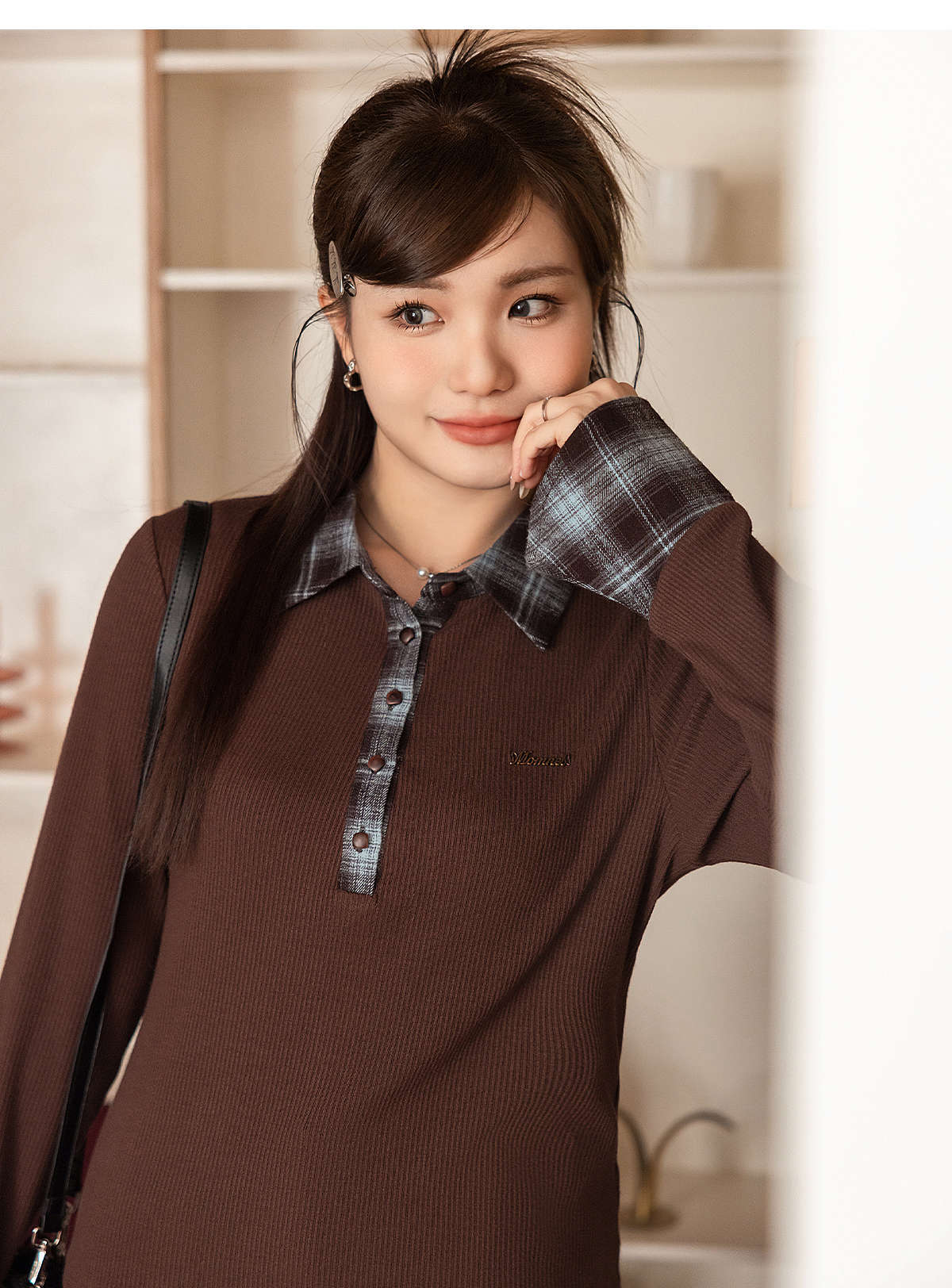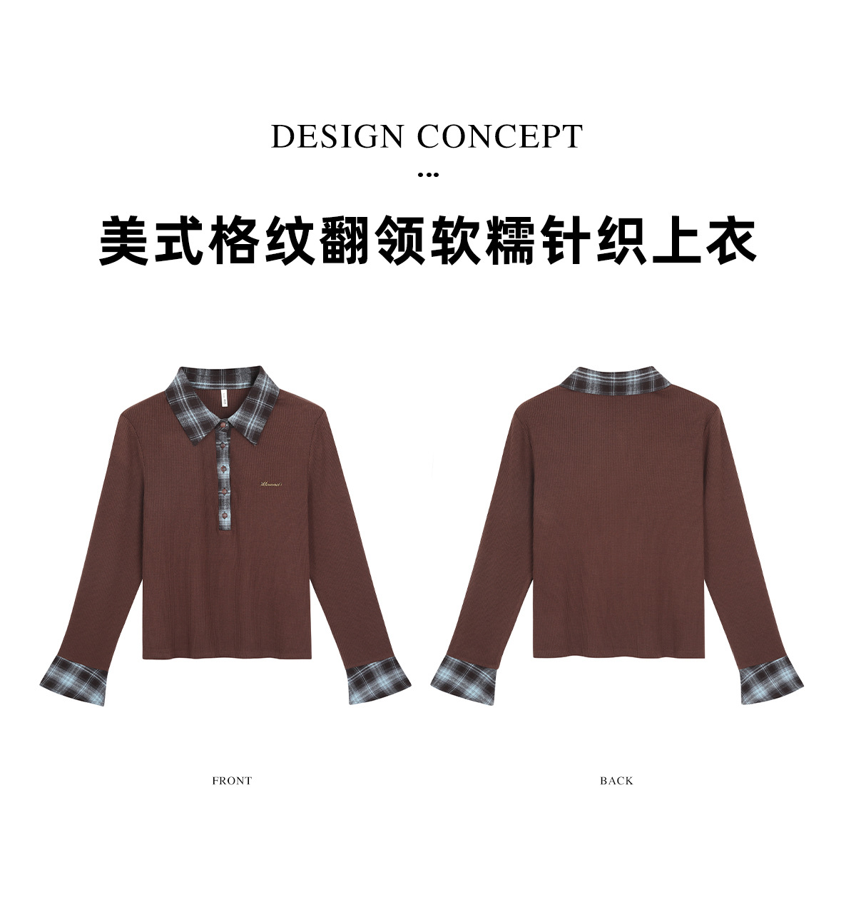 Американский ретро клетчатый свитер с лацканой толстый мм плюс размер дизайн тонкий, тонкий нижняя часть 65214
