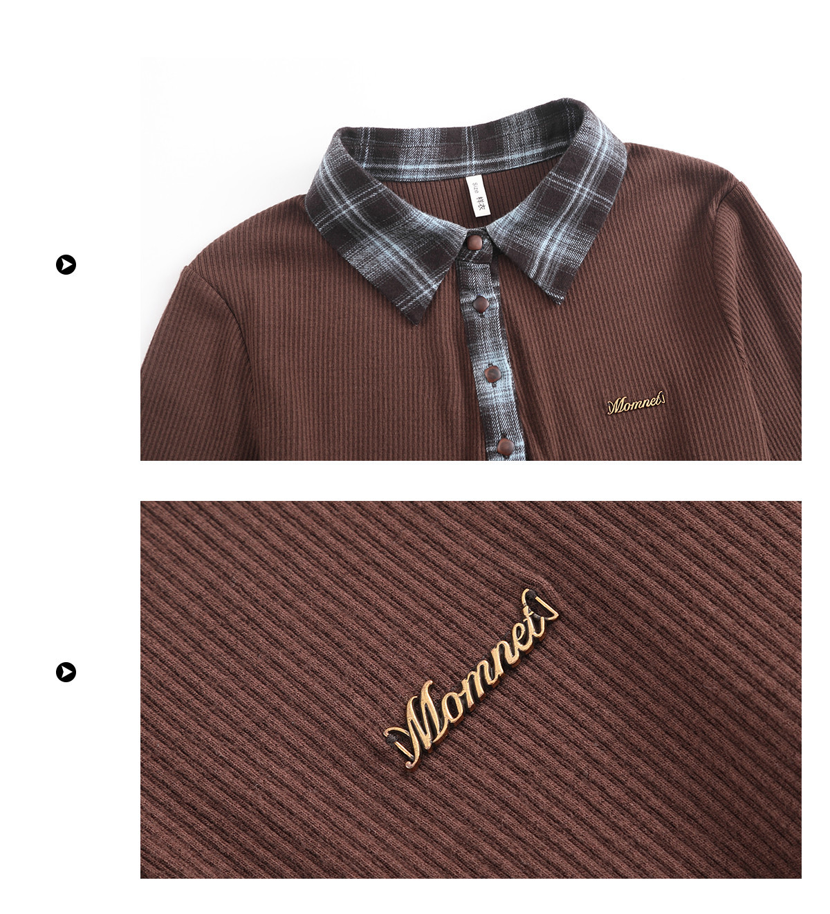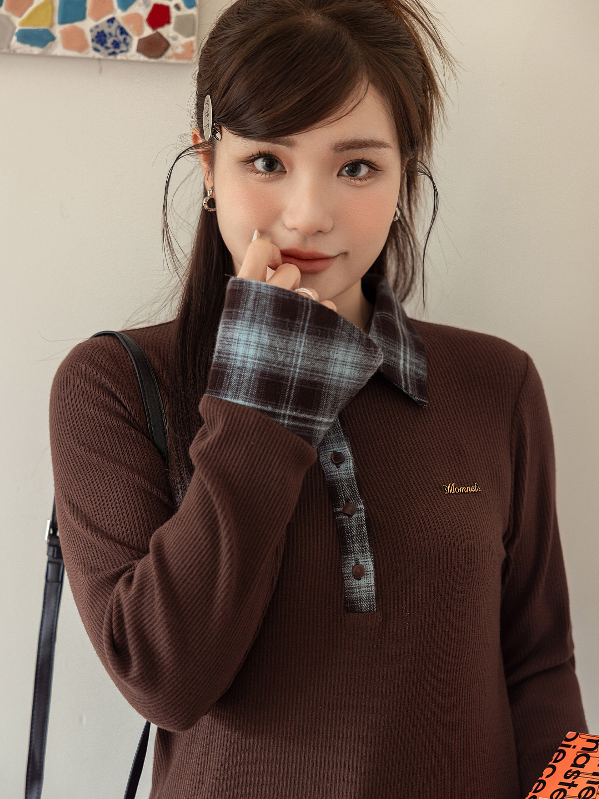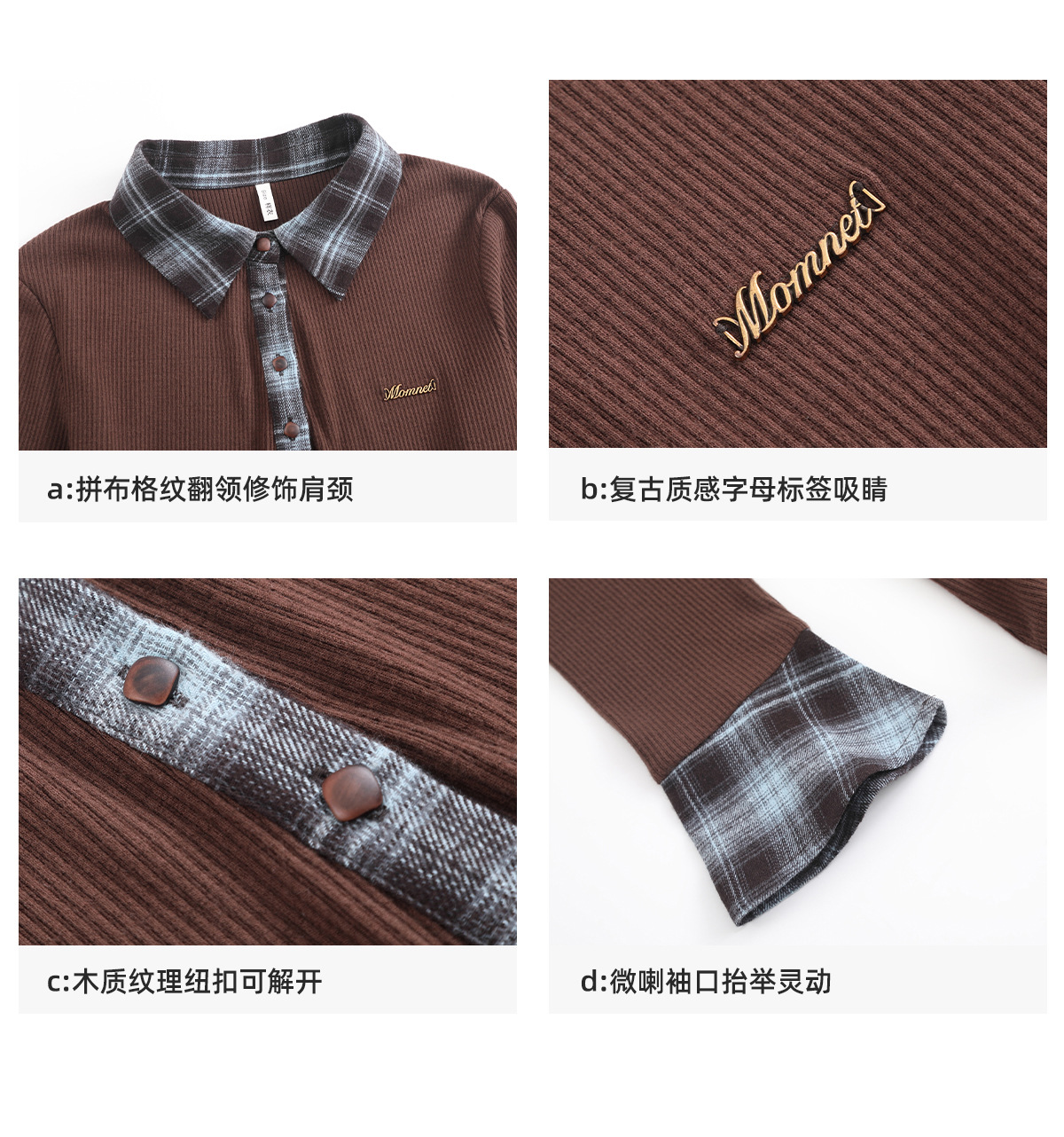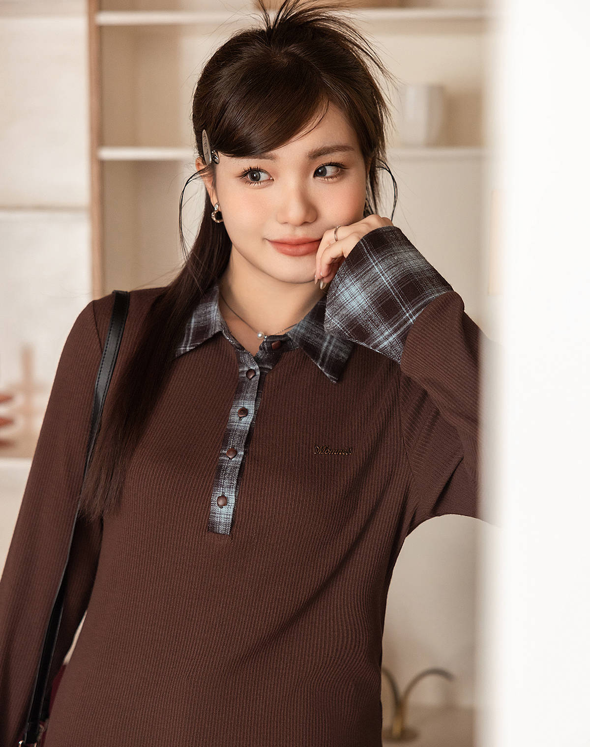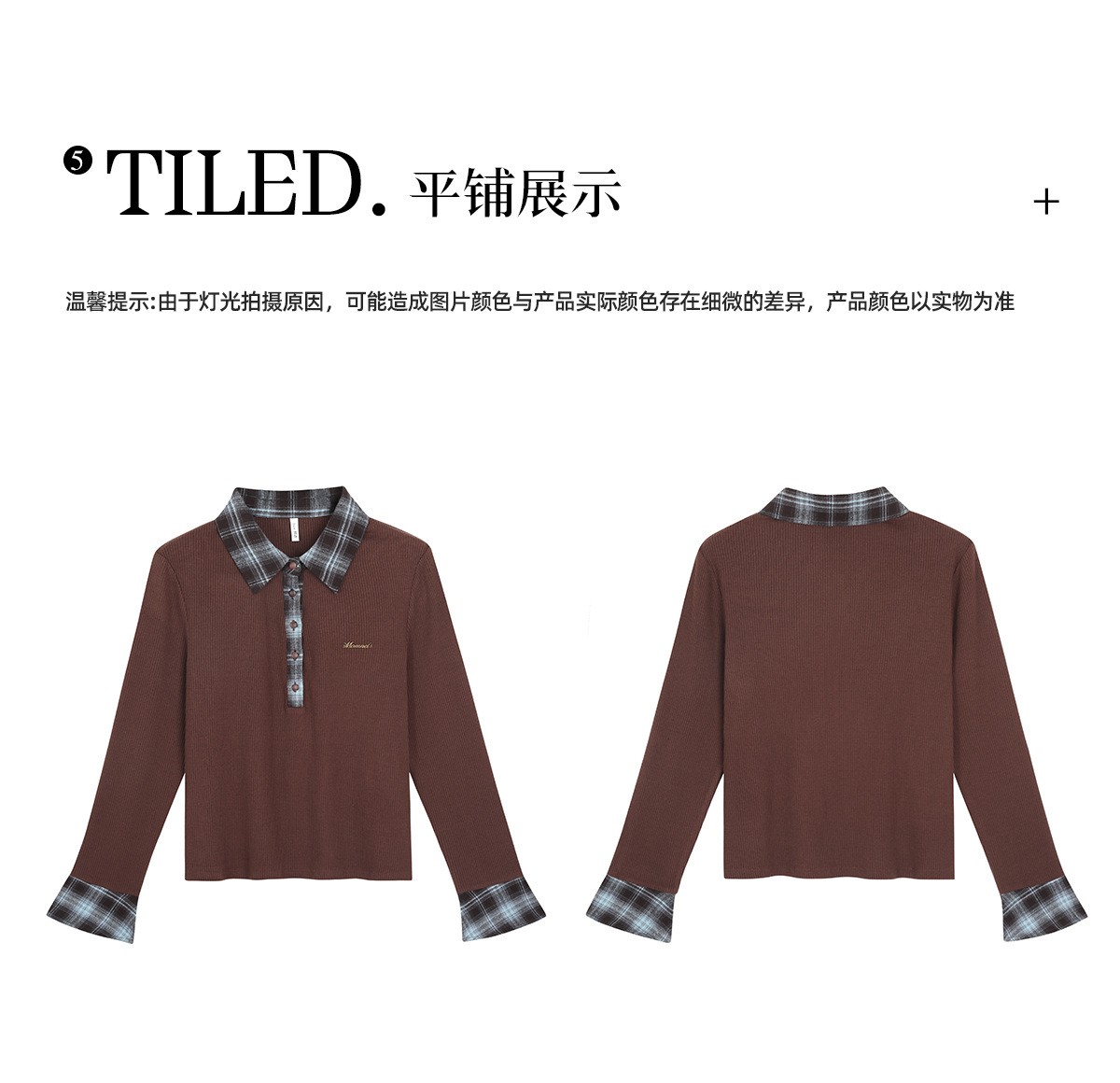 Американский ретро клетчатый свитер с лацканой толстый мм плюс размер дизайн тонкий, тонкий нижняя часть 65214