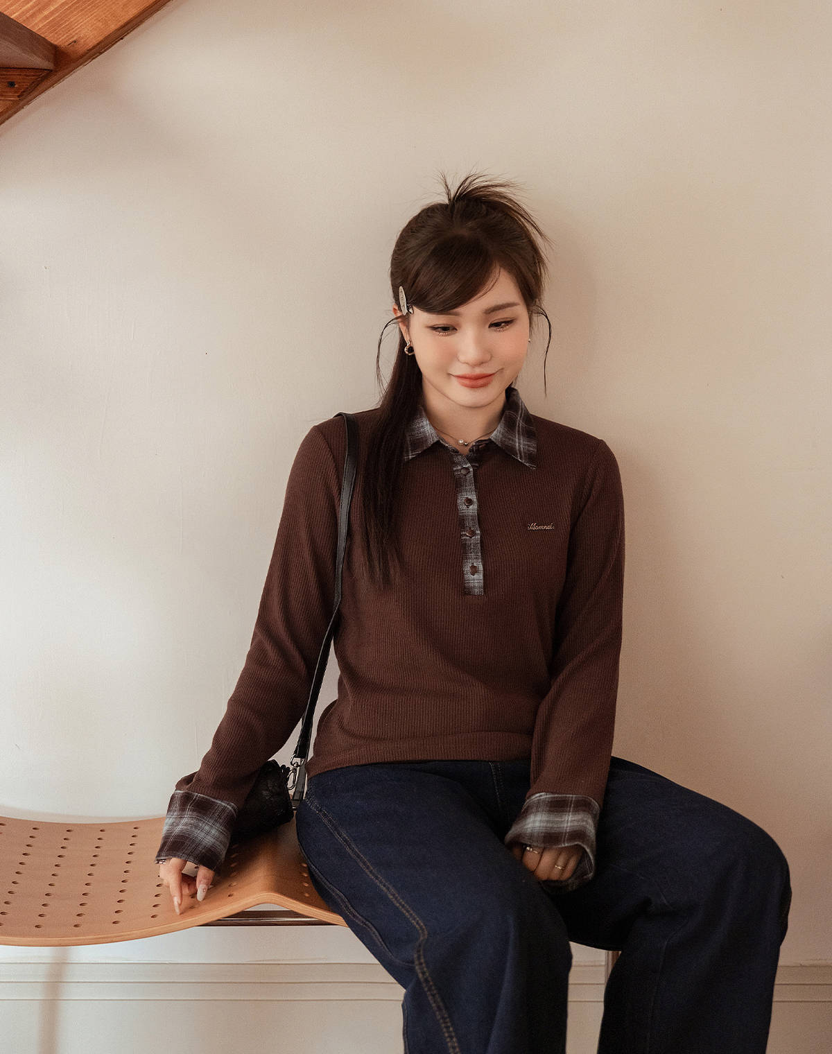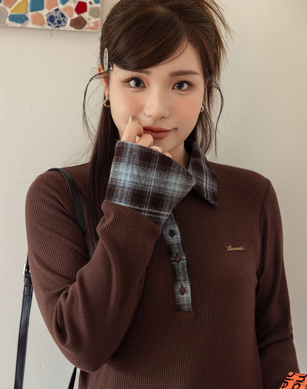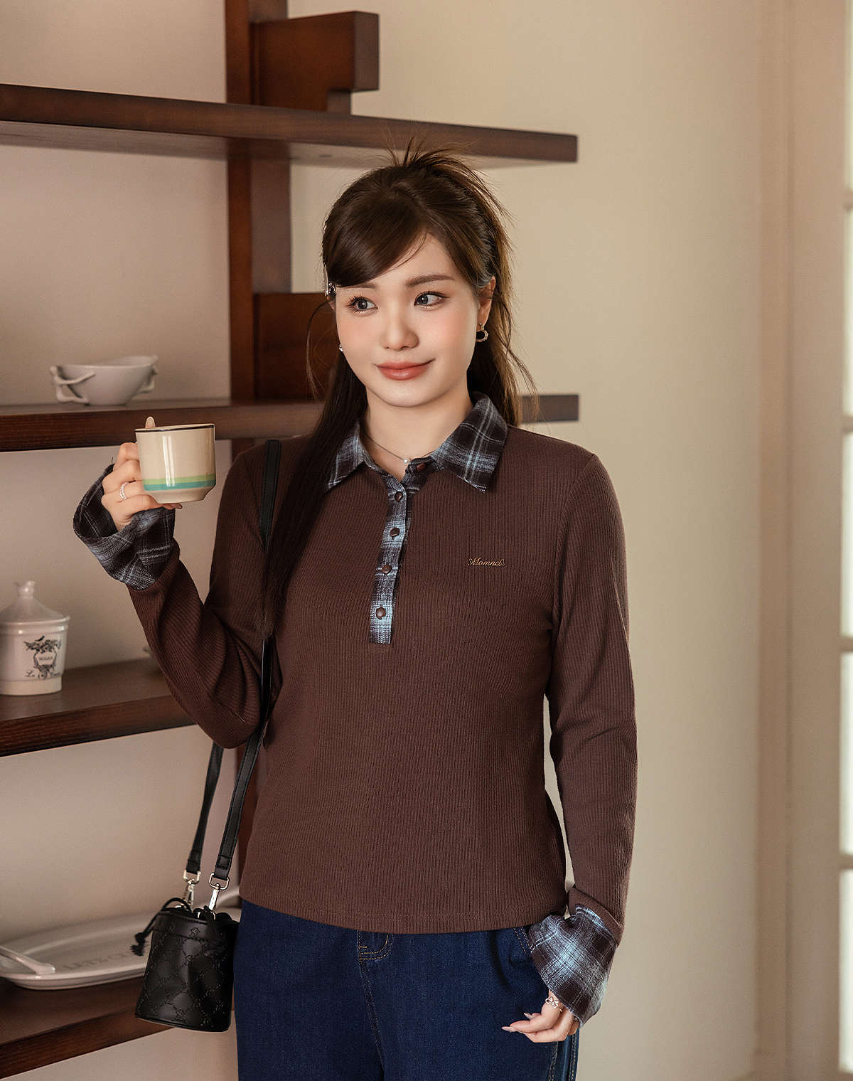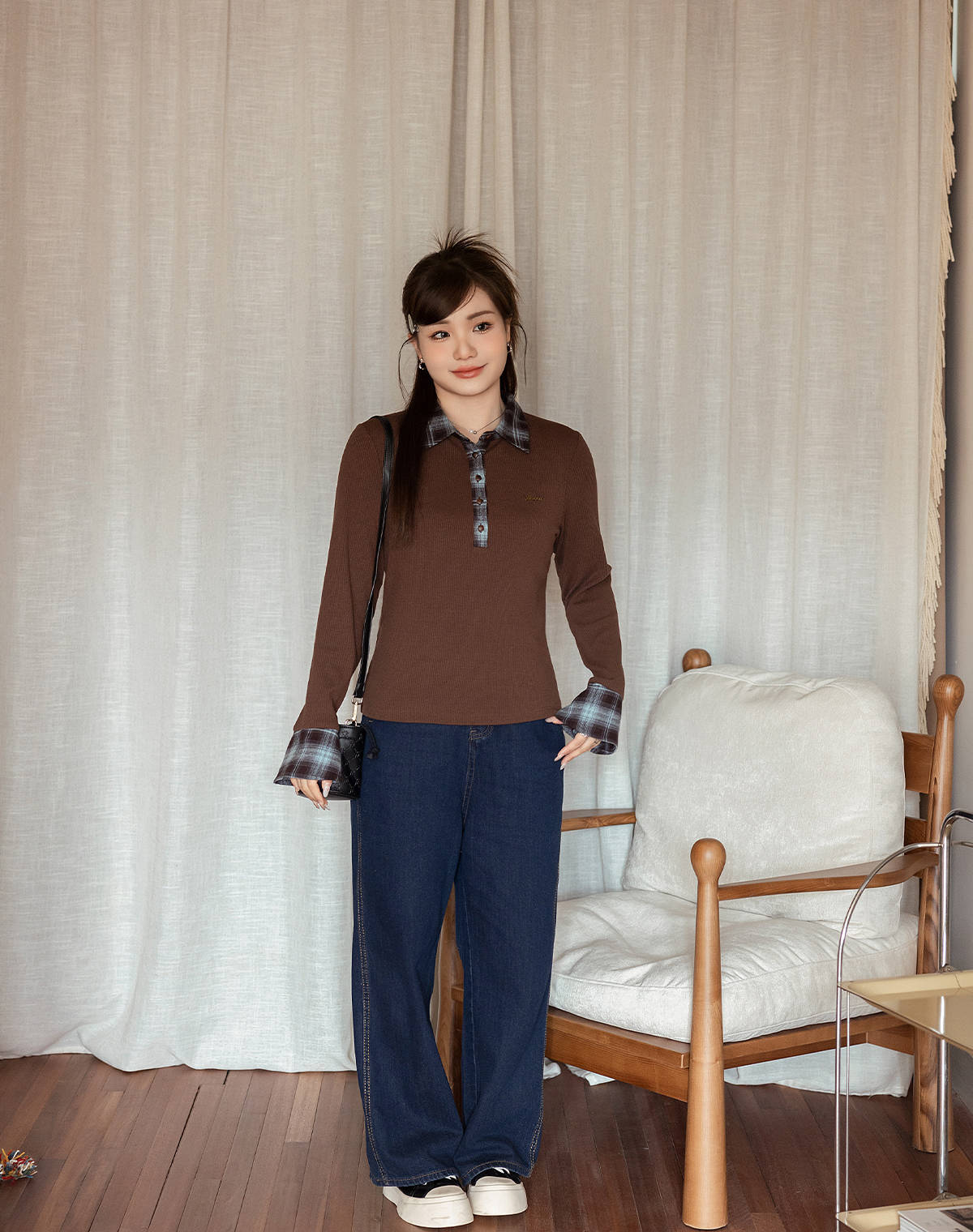 Американский ретро клетчатый свитер с лацканой толстый мм плюс размер дизайн тонкий, тонкий нижняя часть 65214