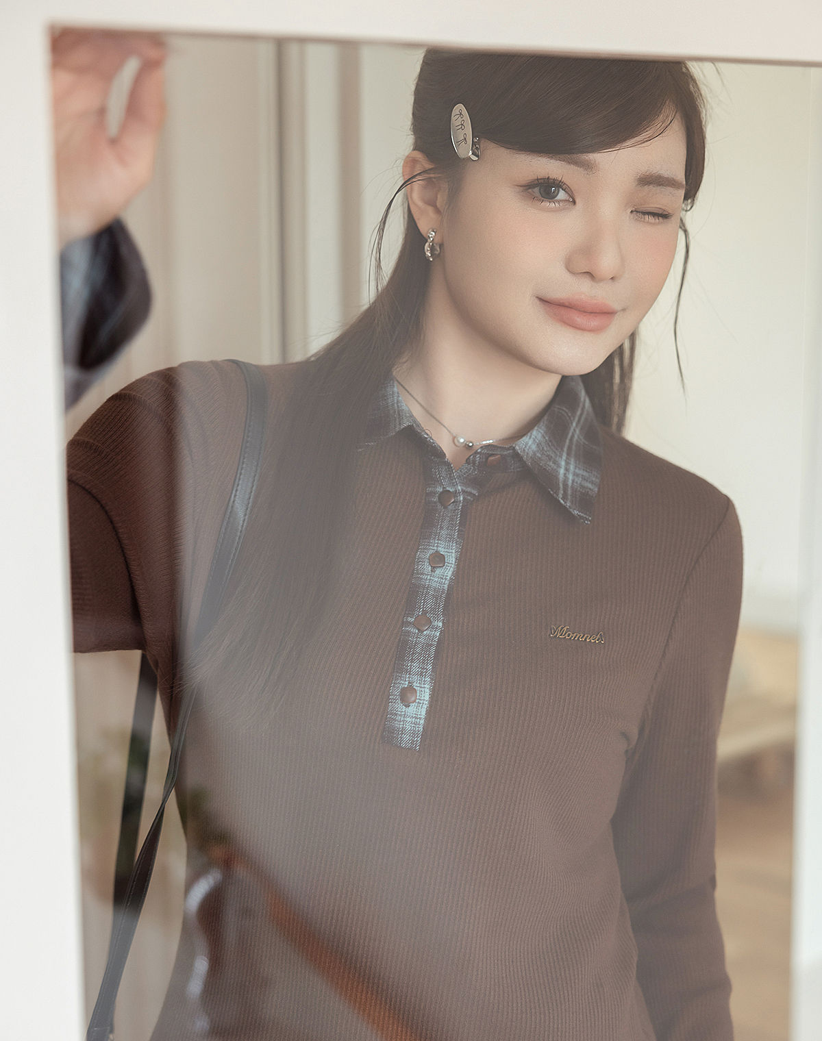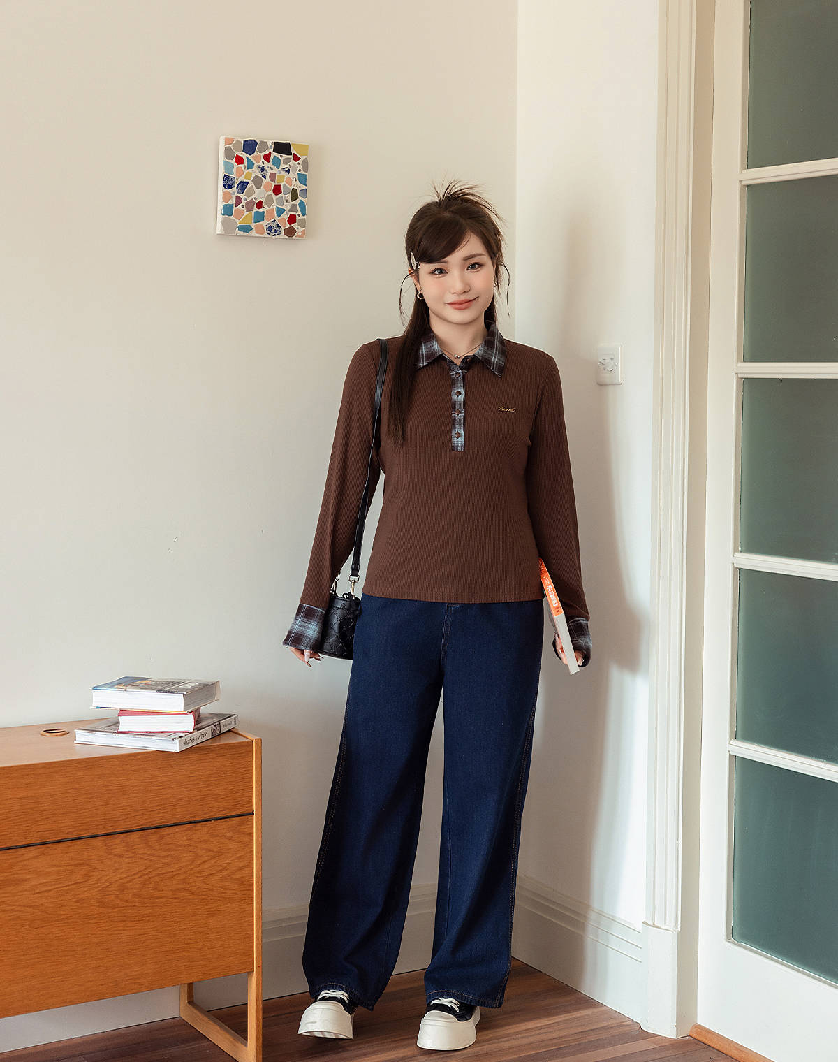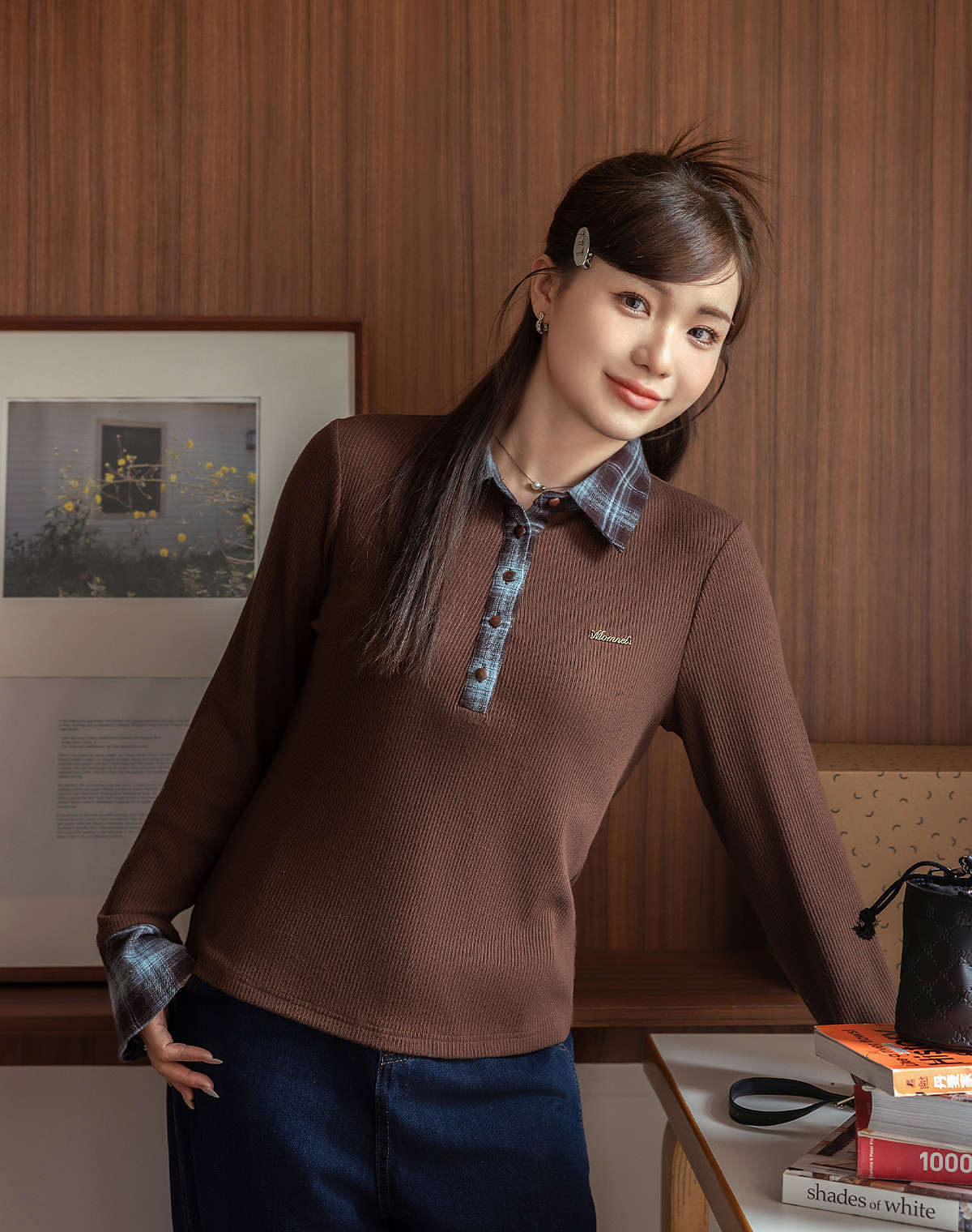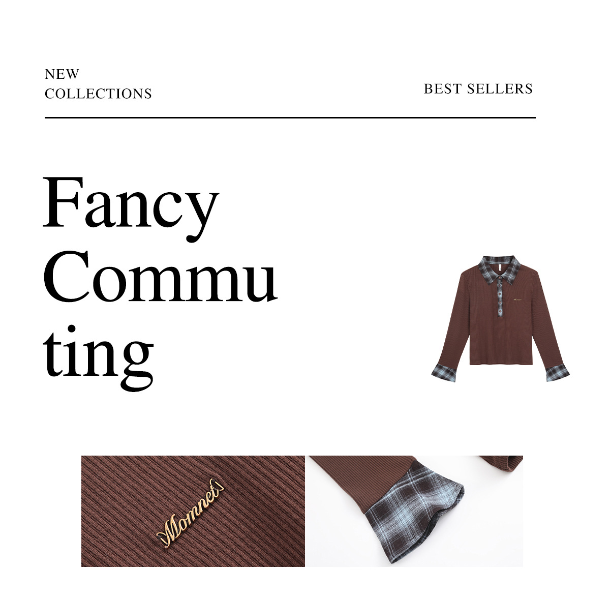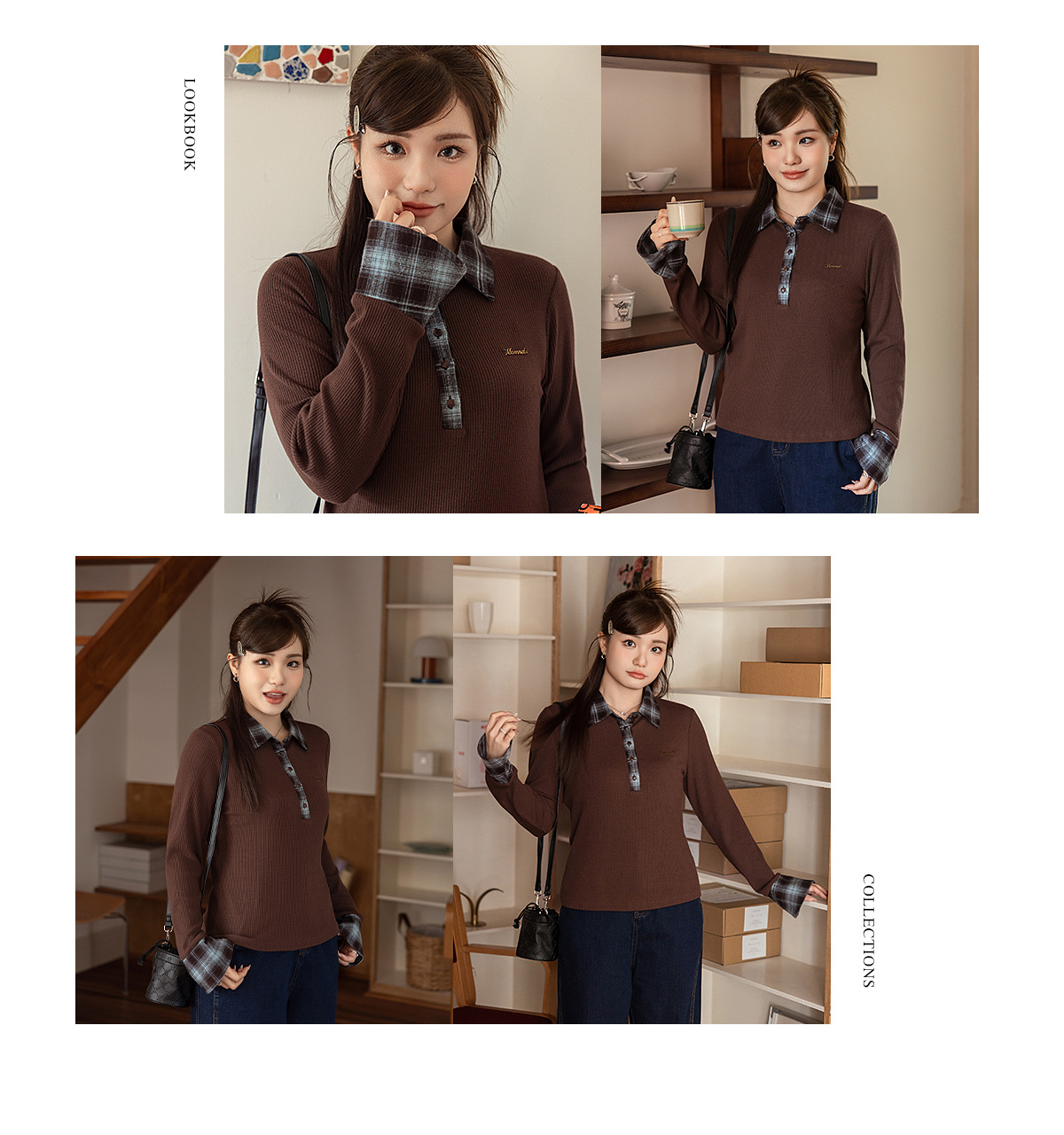 Американский ретро клетчатый свитер с лацканой толстый мм плюс размер дизайн тонкий, тонкий нижняя часть 65214
