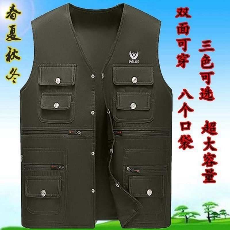 Средний и пожилой весенний и осенний мужской мульти-карманный жилет мужской папа большой размер свободный