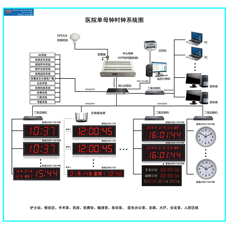 Система синхронизации часов по всей больнице Руйчэн стабильна и надёжна, обладая высокой устойчивостью к помехам.