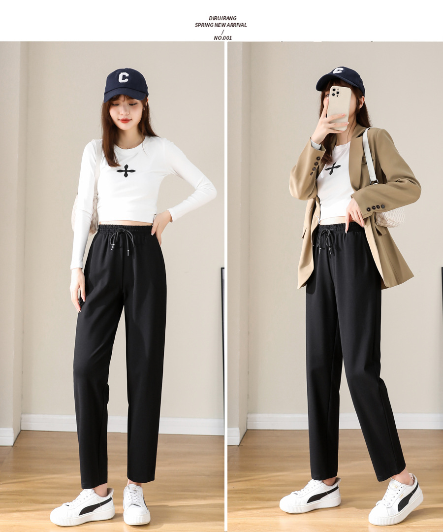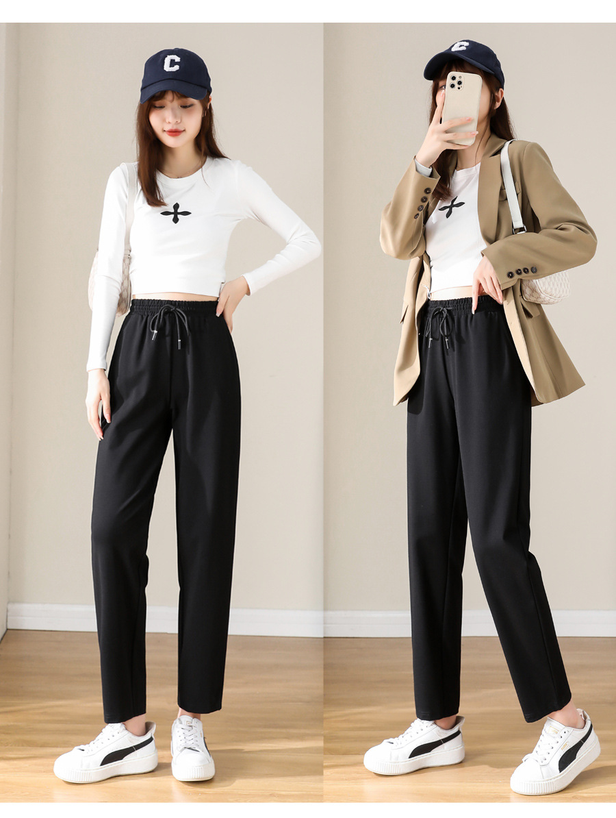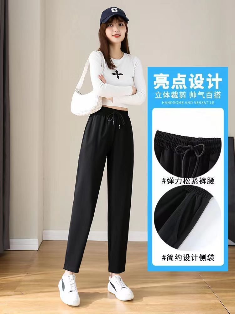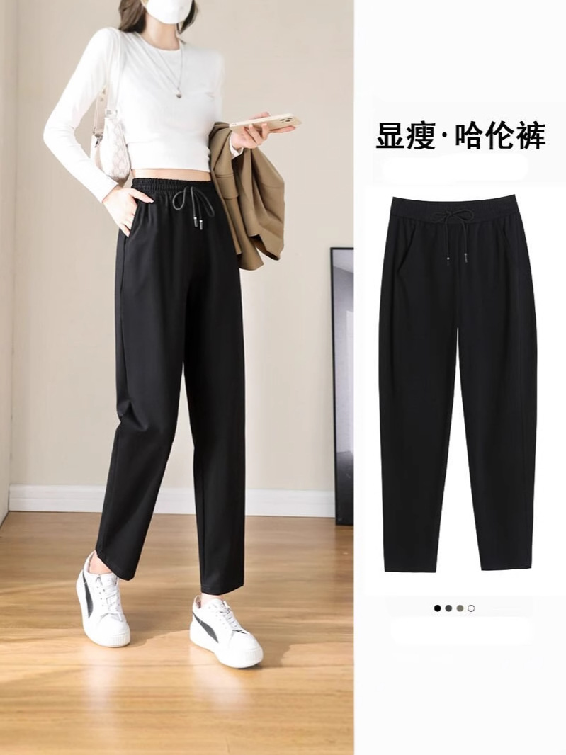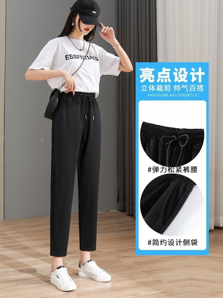 Новые брюки женские весенние летние свободные тонкие большие размеры девять очков толстый мм черная редька повседневные шаровары длинные брюки
