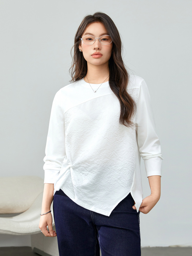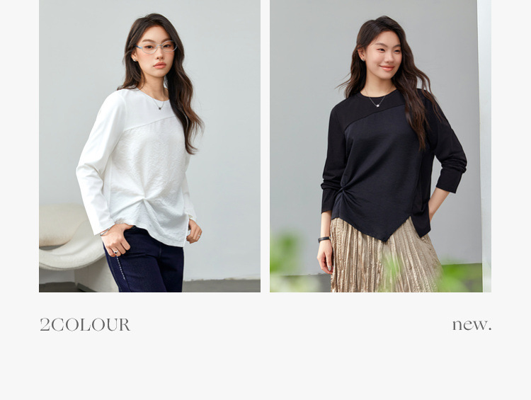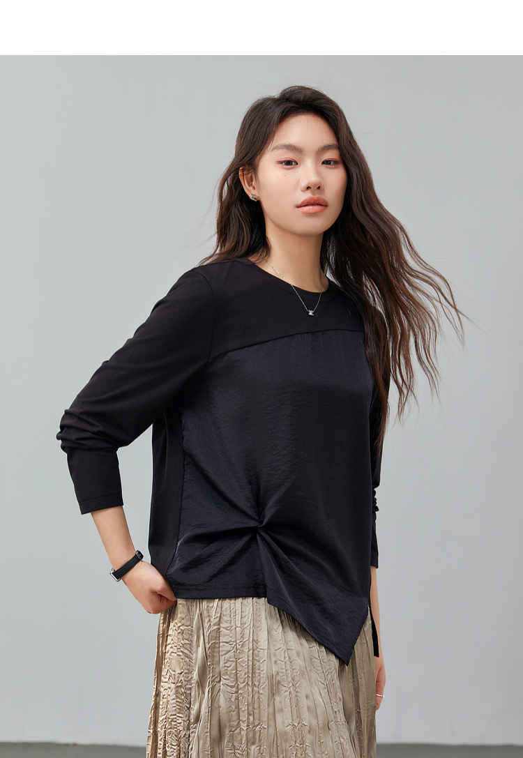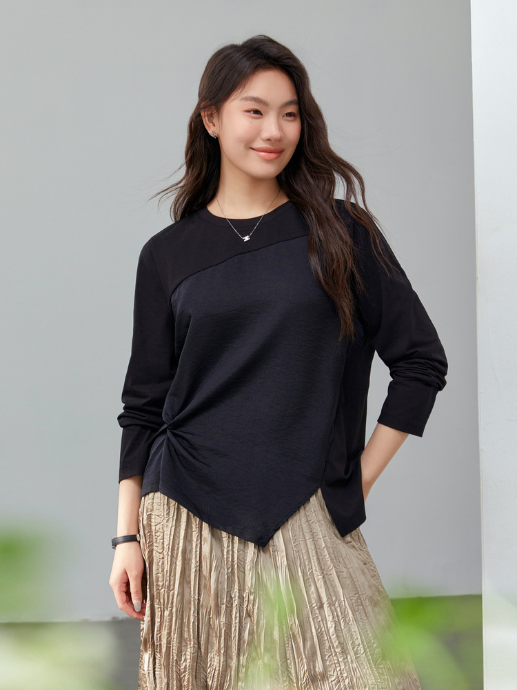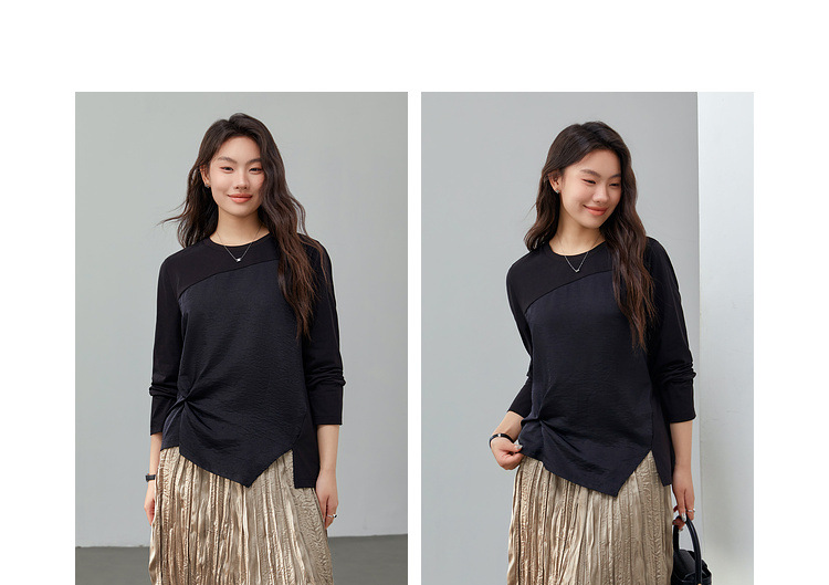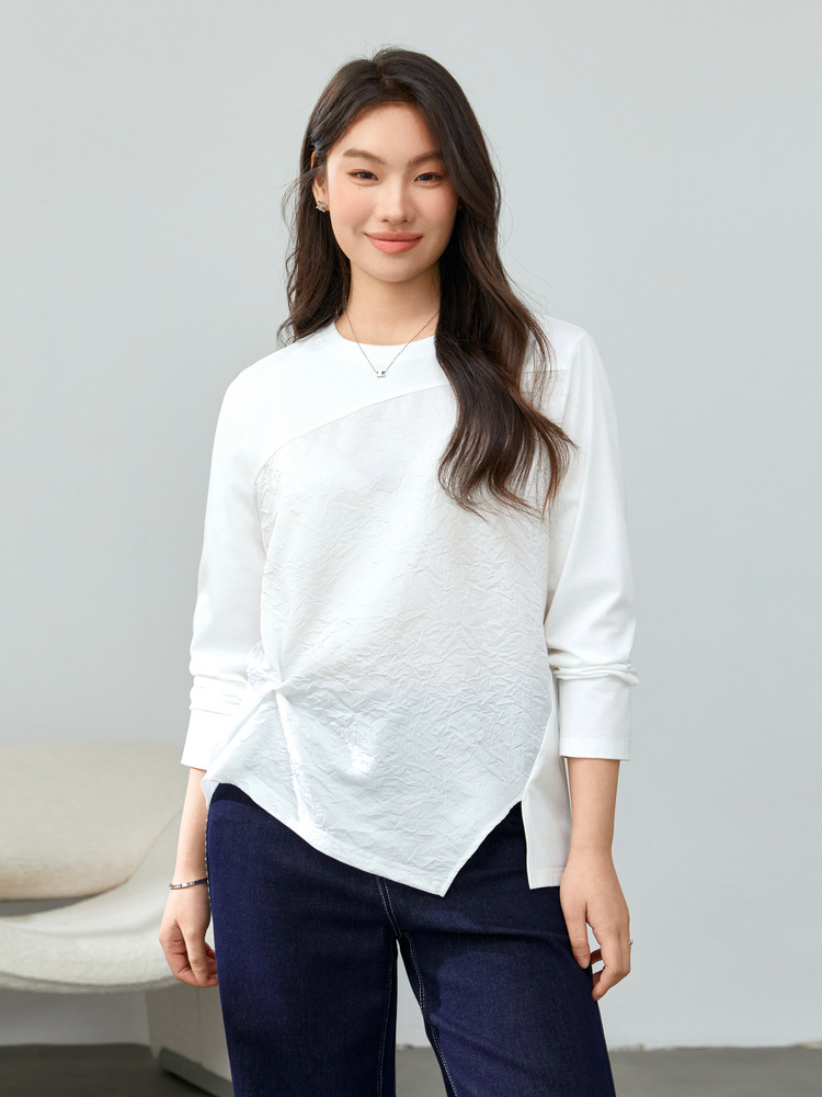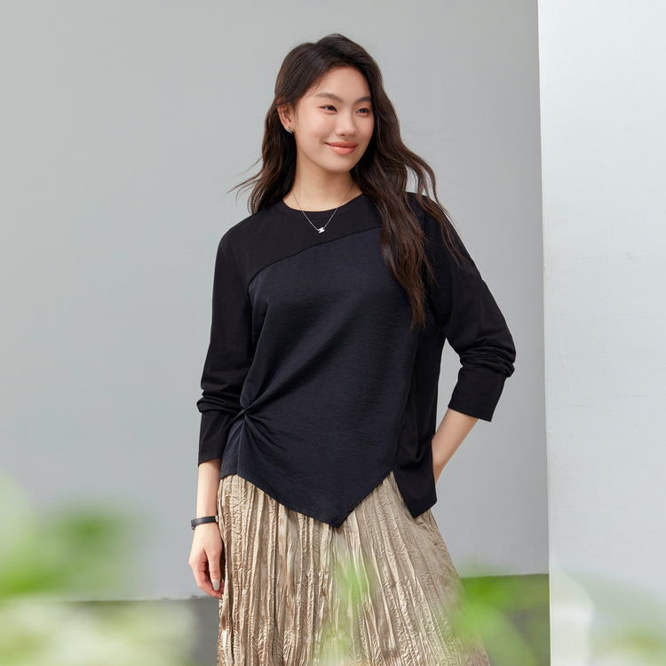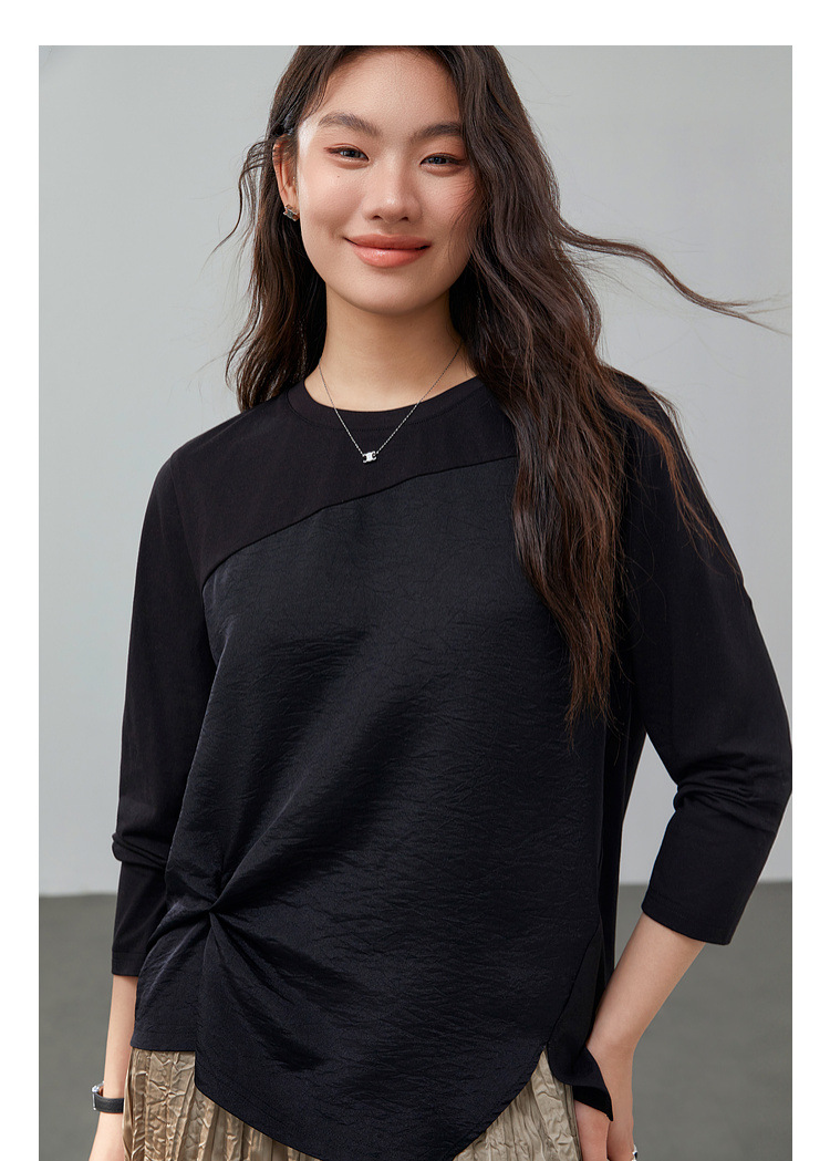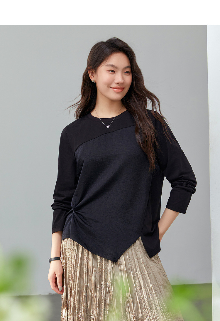 [Модный сшитый дизайн чувствует себя с открытым подолом, дикая футболка] Funny Show большой размер женский толстый мм весенний новый