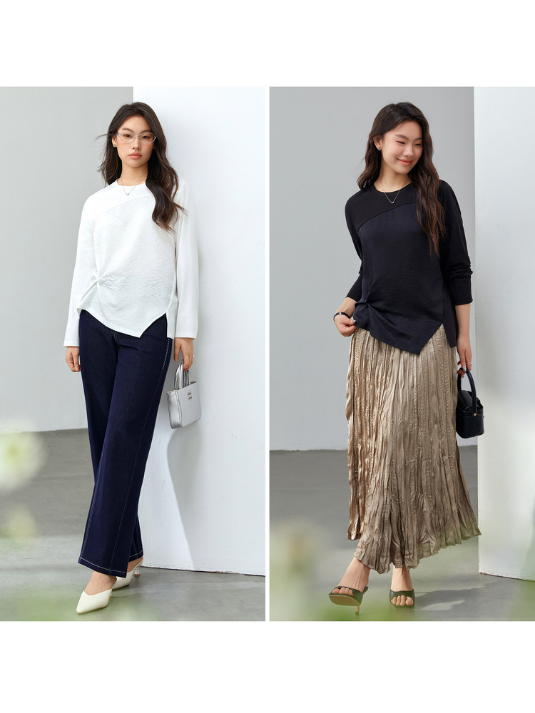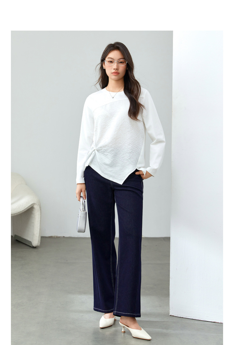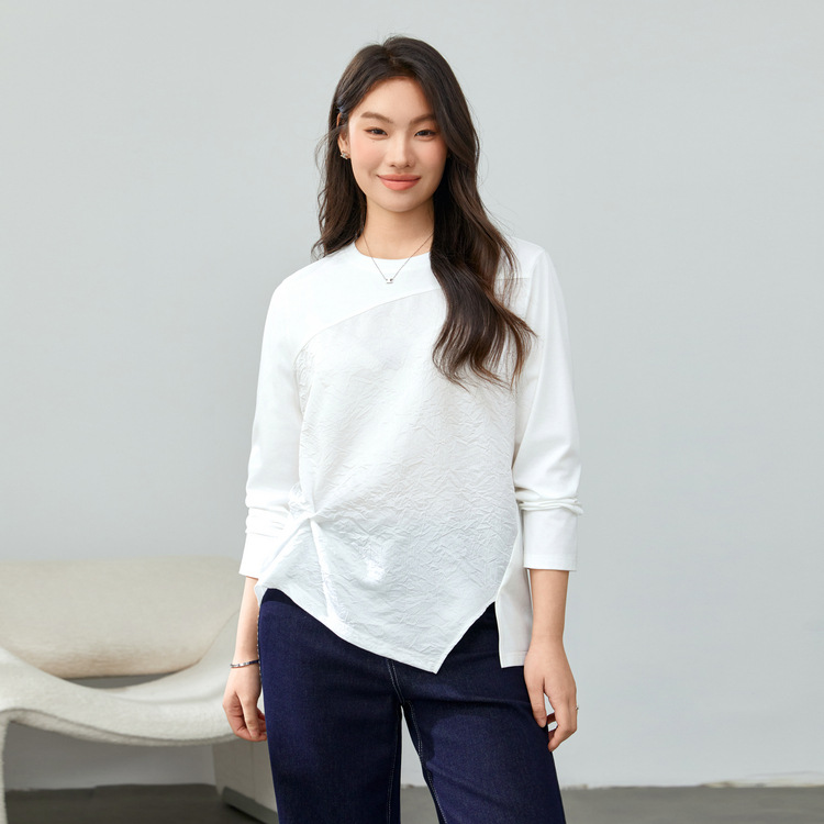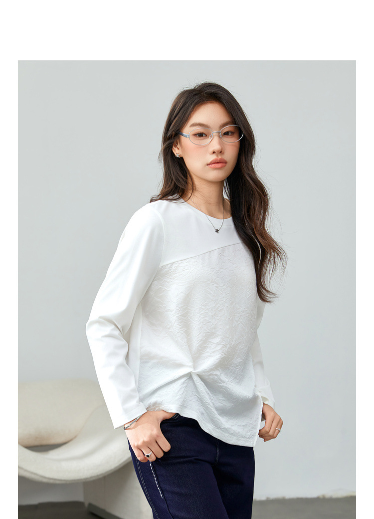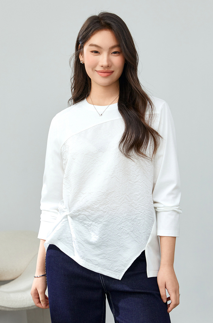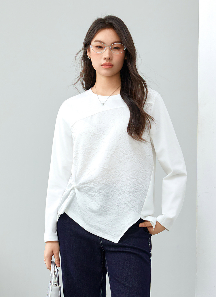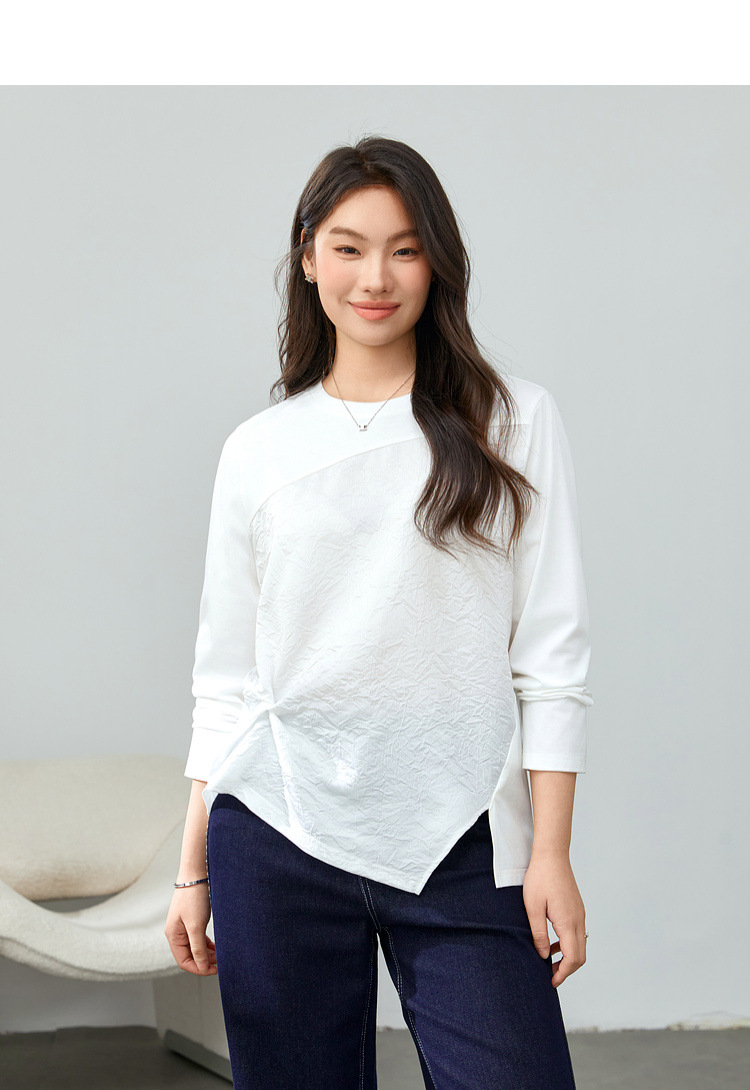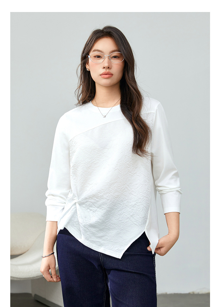 [Модный сшитый дизайн чувствует себя с открытым подолом, дикая футболка] Funny Show большой размер женский толстый мм весенний новый