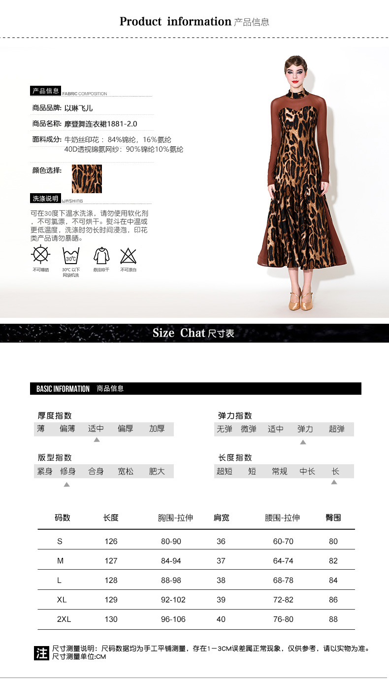 Перри Мокко! Дикий большой леопардовый рисунок Современное танцевальное платье 1881-2.0 Национальный танцевальный костюм вальс платье