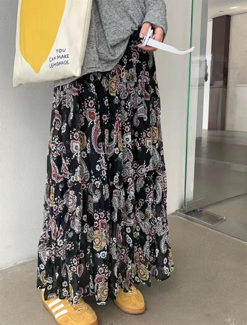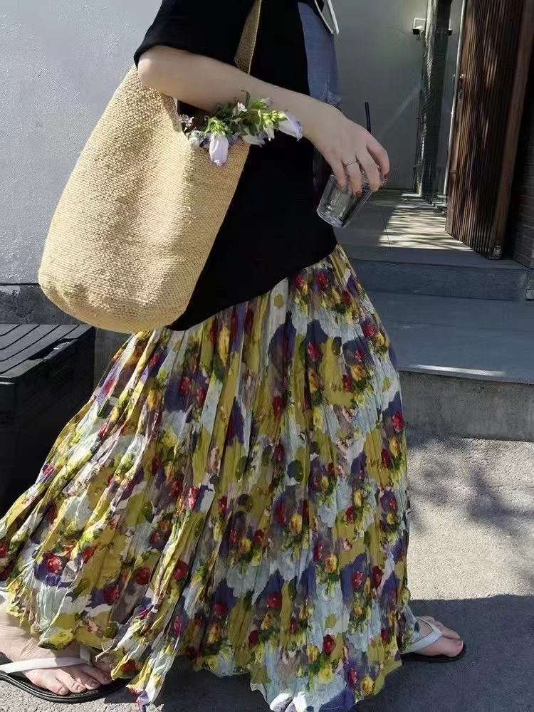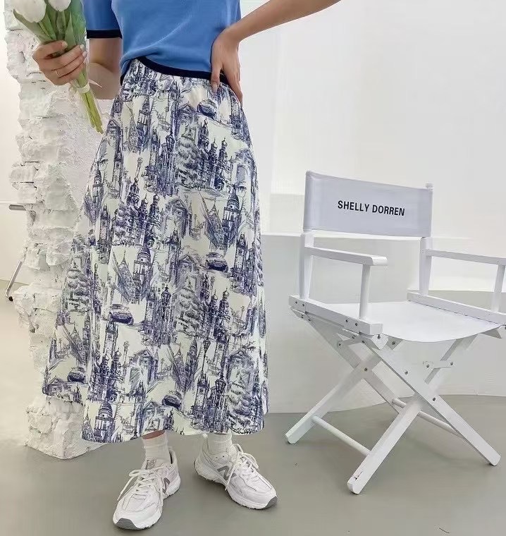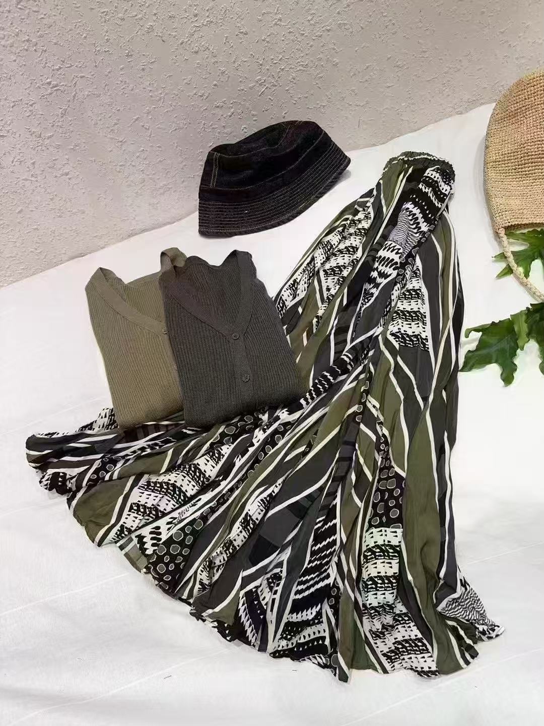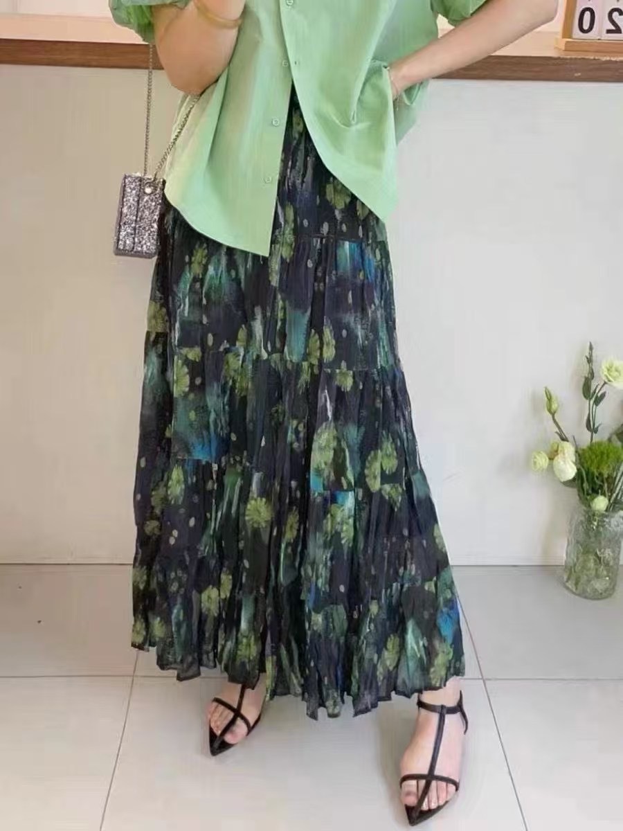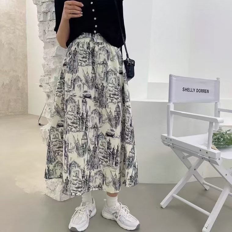 Спотовые модели ~ Многоцветная весенняя и летняя новая юбка с принтом