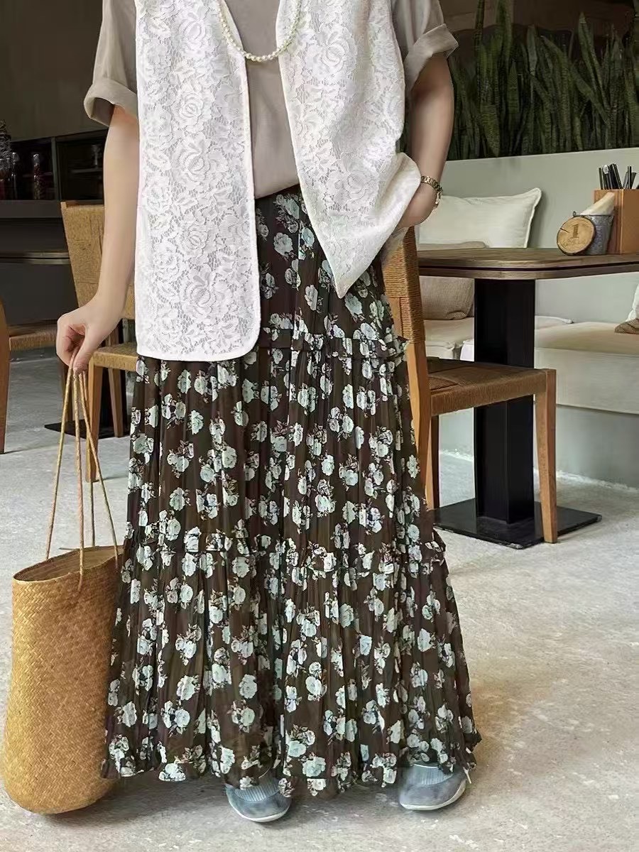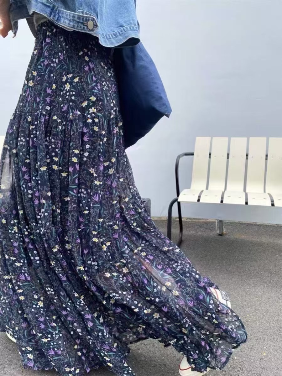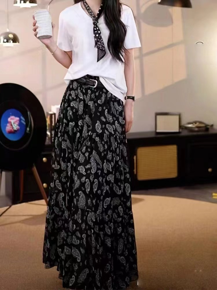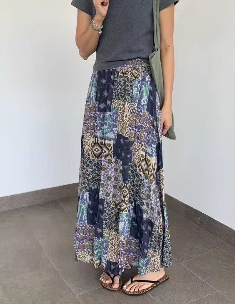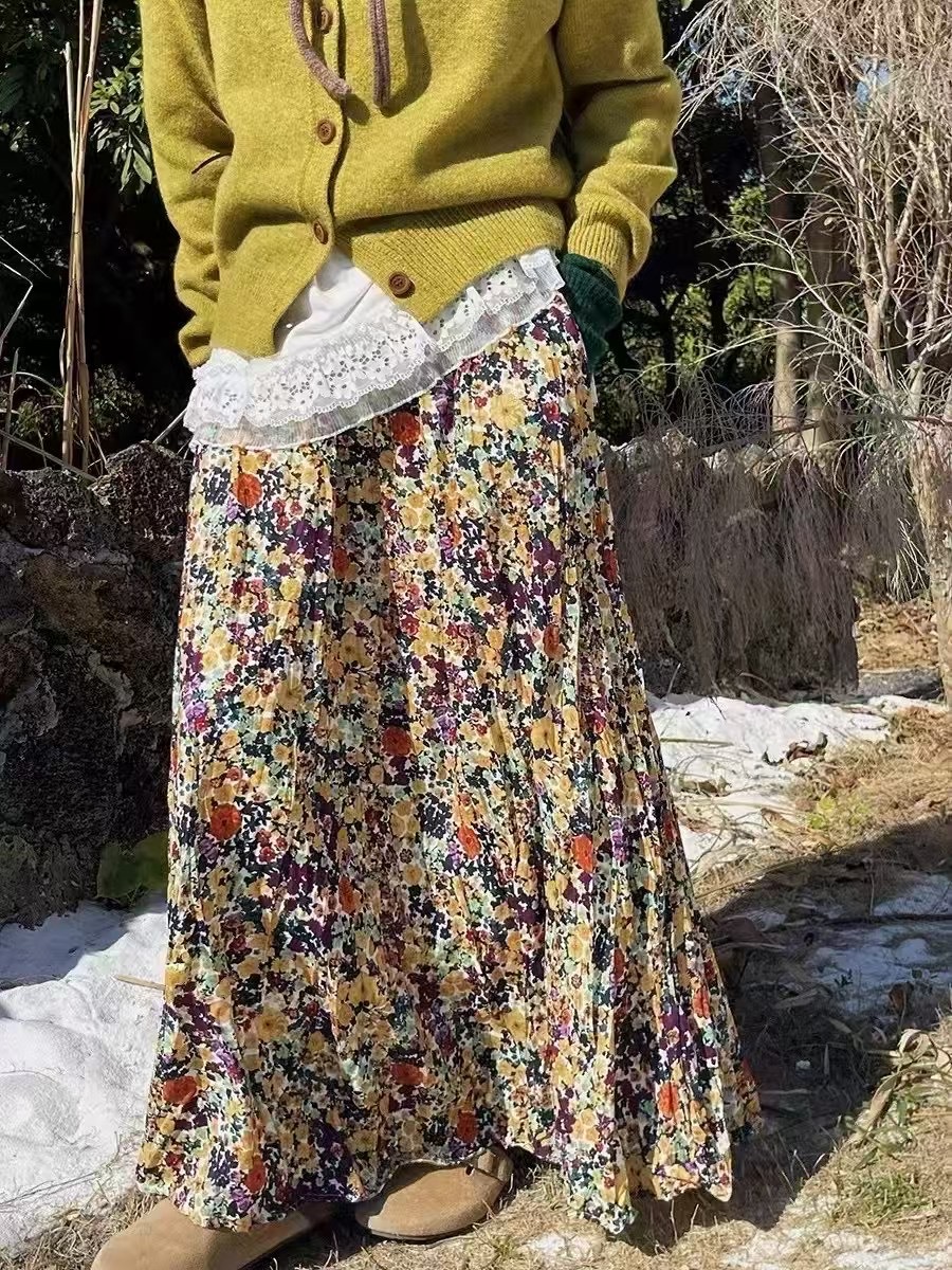 Спотовые модели ~ Многоцветная весенняя и летняя новая юбка с принтом