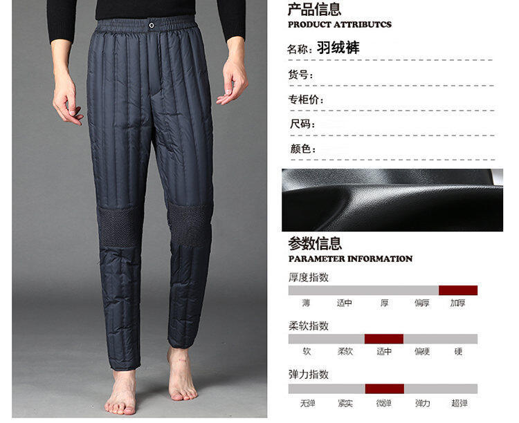 Мужские пуховые брюки среднего и пожилого возраста теплые зимой