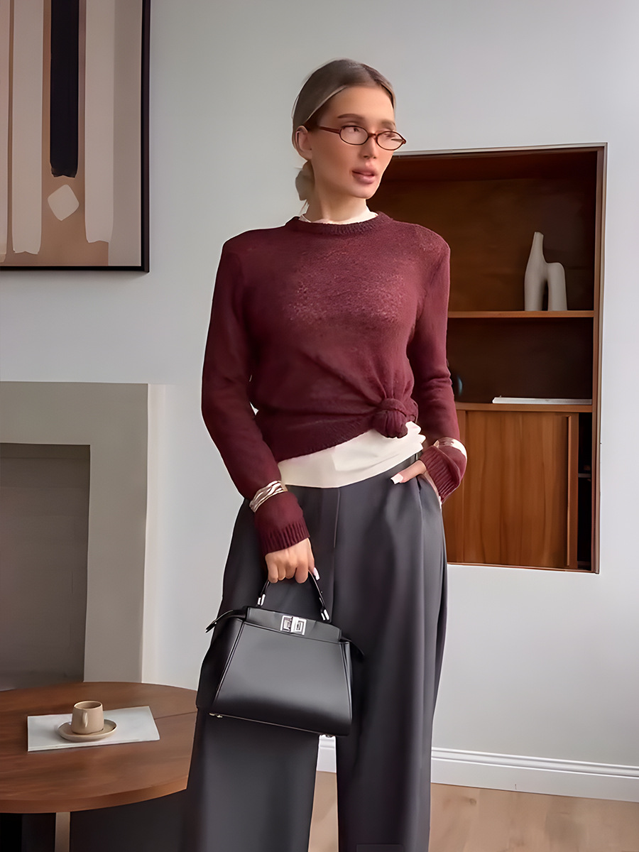 2025 весна и лето новый тонкий свитер блузка женский с круглым вырезом
