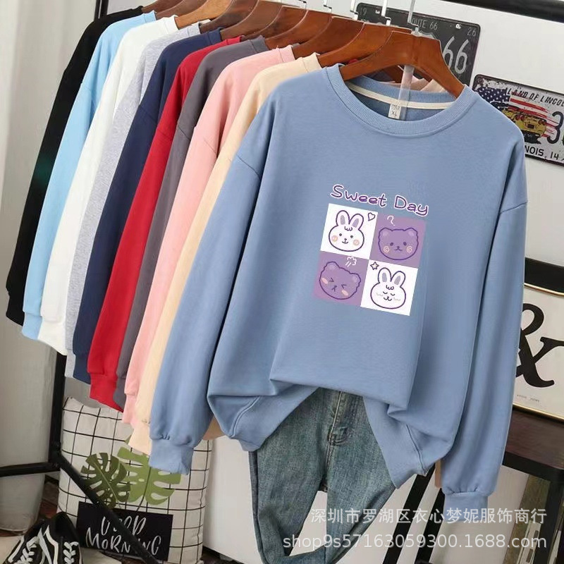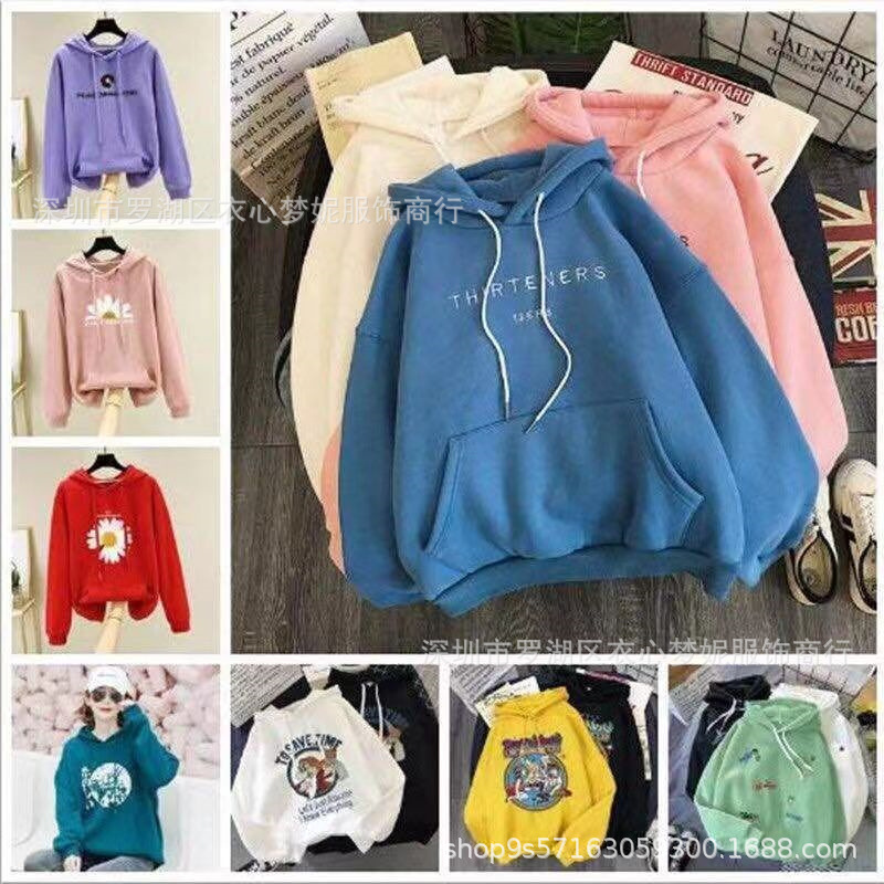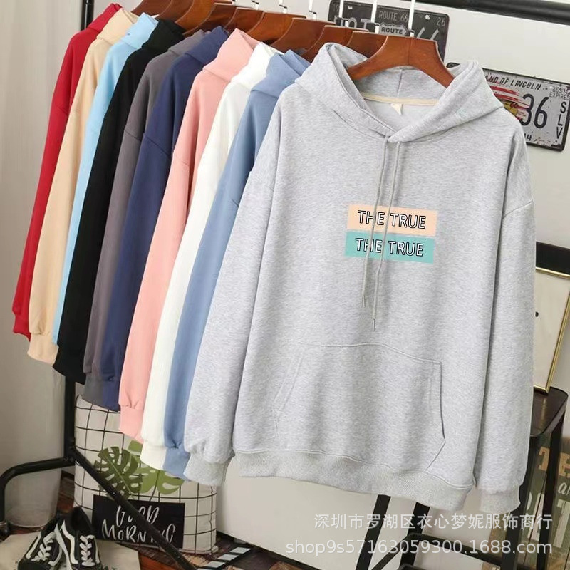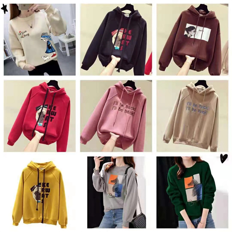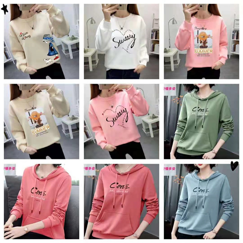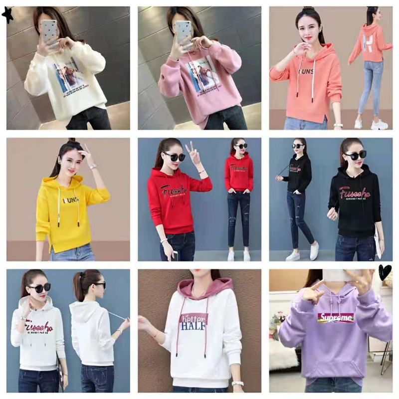Женская толстовка с капюшоном свободного размера 50-75kg; Женская толстовка с круглым вырезом, свободный размер 50-75kg; Осенние женские большие размеры с длинными рукавами 60-75kg; Женские длинные рукава обычной обработки, свободный размер 40-55kg