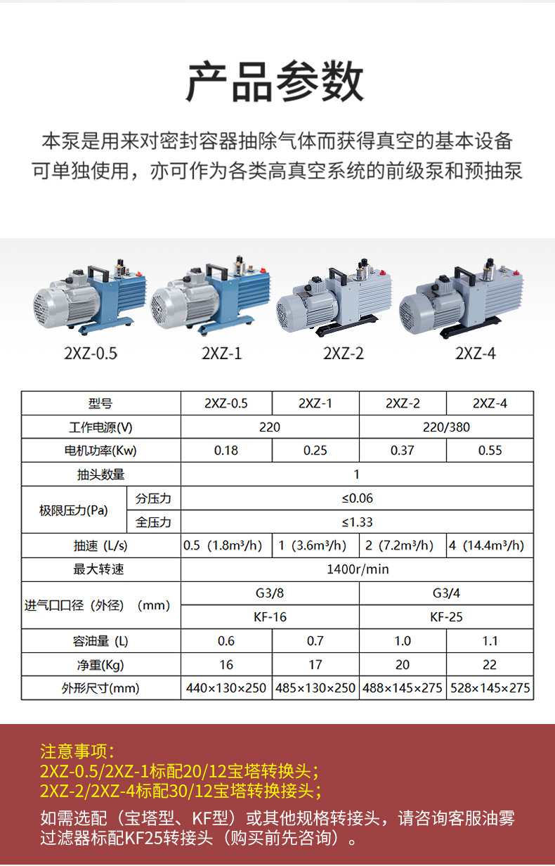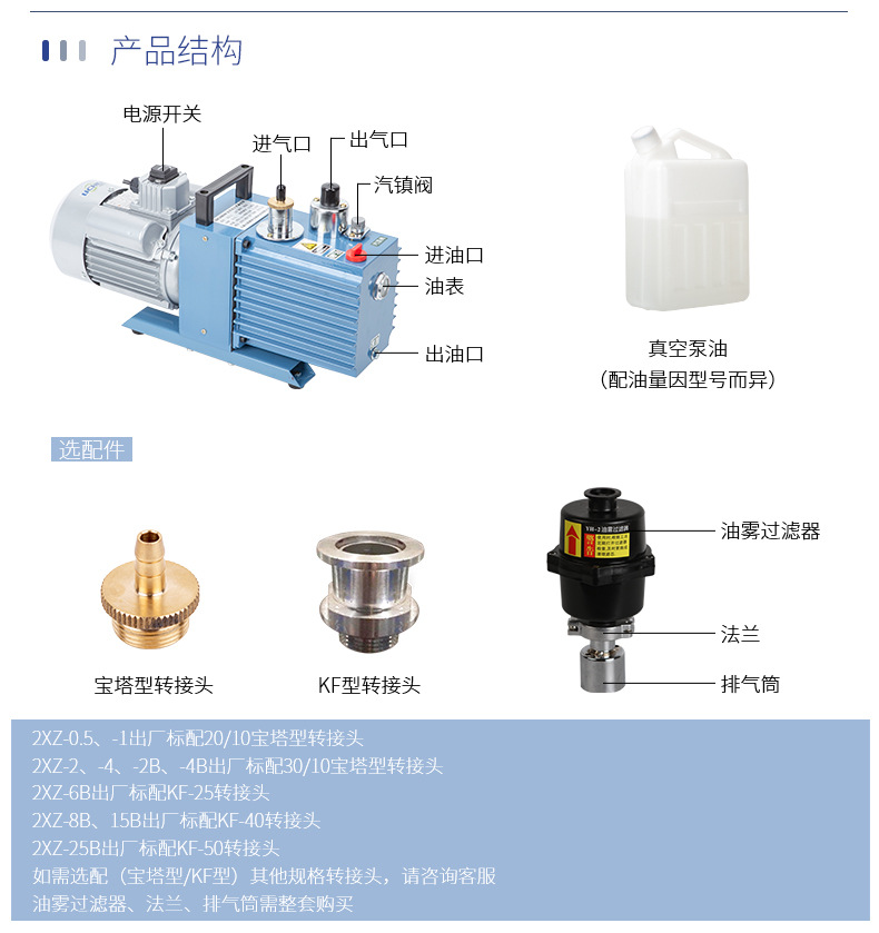 Базовая модель 2XZ-0,5 Скорость насоса: 0,5 л/с.; Базовая модель типа 2XZ-1, скорость откачки: 1 л/с.; Базовая скорость откачки типа 2XZ-2: 2 л/с.; Базовая модель 2XZ-4, скорость насоса: горячая продажа модели 4 л/с.; Скорость насоса с защитой от возврата масла 2XZ-2B: рекомендуемая модель 2л/с.; Скорость насоса типа 2XZ-4B с защитой от возврата масла: рекомендуемая модель 4 л/с.; Антимасляный возврат типа 2XZ-6B Скорость перекачки: 6 л/с; Защита от возврата масла 2XZ-8B Скорость насоса: 8 л/с; Скорость насоса с защитой от возврата масла 2XZ-15B: 15 л/с; Скорость насоса с защитой от возврата масла 2XZ-25B: 25 л/с.; Высокоскоростной насос типа LC-VRD-H4, скорость насоса: 4 м3/ч.; Высокоскоростной насос типа LC-VRD-H6, скорость насоса: 6 м3/ч.; Высокоскоростной насос типа LC-VRD-H12, скорость насоса: 12 м3/ч.; Высокоскоростной насос типа LC-VRD-H24 (220 В) Скорость насоса: 24 м3/ч.; Высокоскоростной насос LC-VRD-H24 (380 В): скорость перекачки: 24 м3/ч.; Мультифильтр LC-MFS-4 (без бутылочного насоса), используемый с соответствующим роторным лопастным вакуумным насосом.; Фильтр масляного тумана YH-2 принадлежности для подключения необходимо приобретать отдельно.; Фильтр масляного тумана YH-6 принадлежности для подключения необходимо приобретать отдельно.; Принадлежности для подключения пылевого фильтра необходимо приобретать отдельно.; Принадлежности для подключения масляного фильтра необходимо приобретать отдельно.; Прямой винтовой насос * адсорбционная колодка + зажим + колено + общий набор аксессуаров для верхних соединений; Масляный фильтр + колено + зажим + верхнее соединение, полный комплект широко используемых аксессуаров; Фильтр масляного тумана (YH-02) + зажим + общий набор аксессуаров выпускного цилиндра; Масло вакуумного насоса 68. # 1л (обычный); Масло вакуумного насоса 68.#1л (высококачественный); Масло вакуумного насоса 68.#4л (обычный); Масло вакуумного насоса 68.#4л (высококачественный); Горячая/коррозионностойкая модель. Пожалуйста, свяжитесь со службой поддержки клиентов, чтобы получить скидку (0,5 л/с ~ 15 л/с).