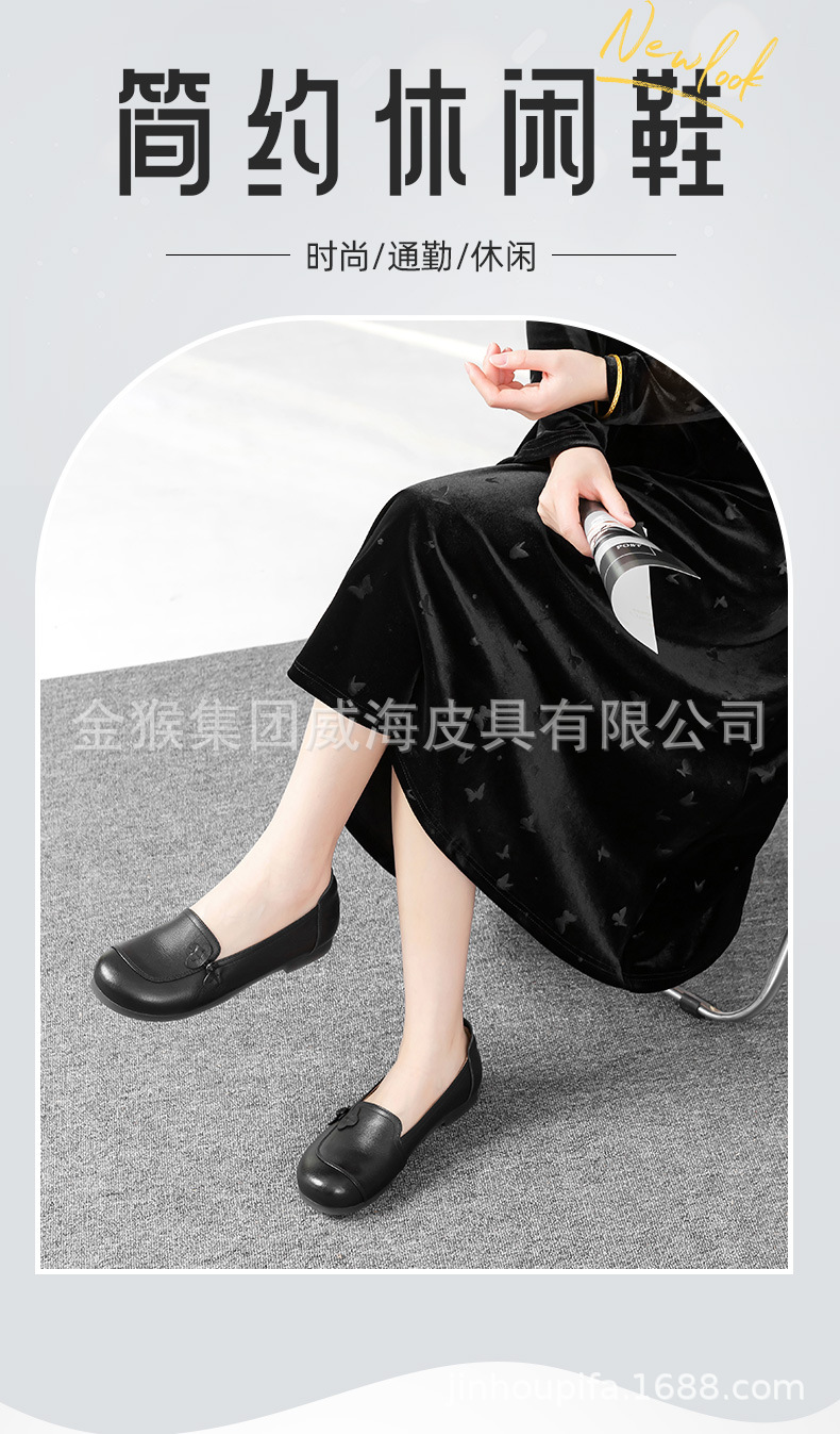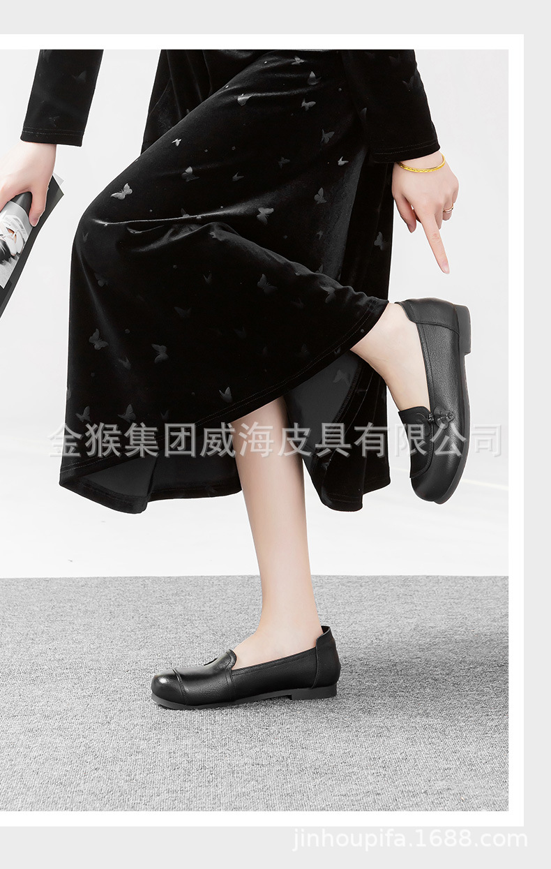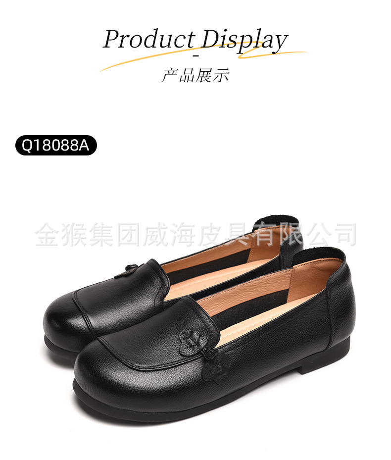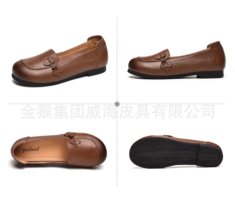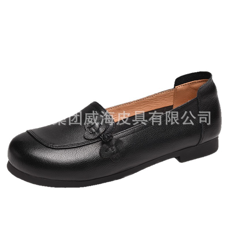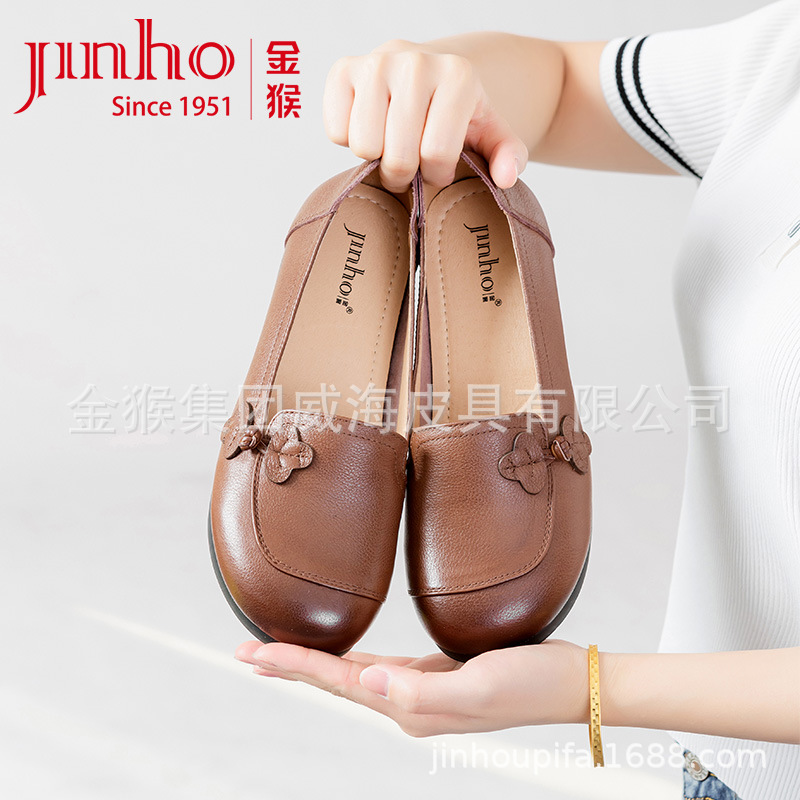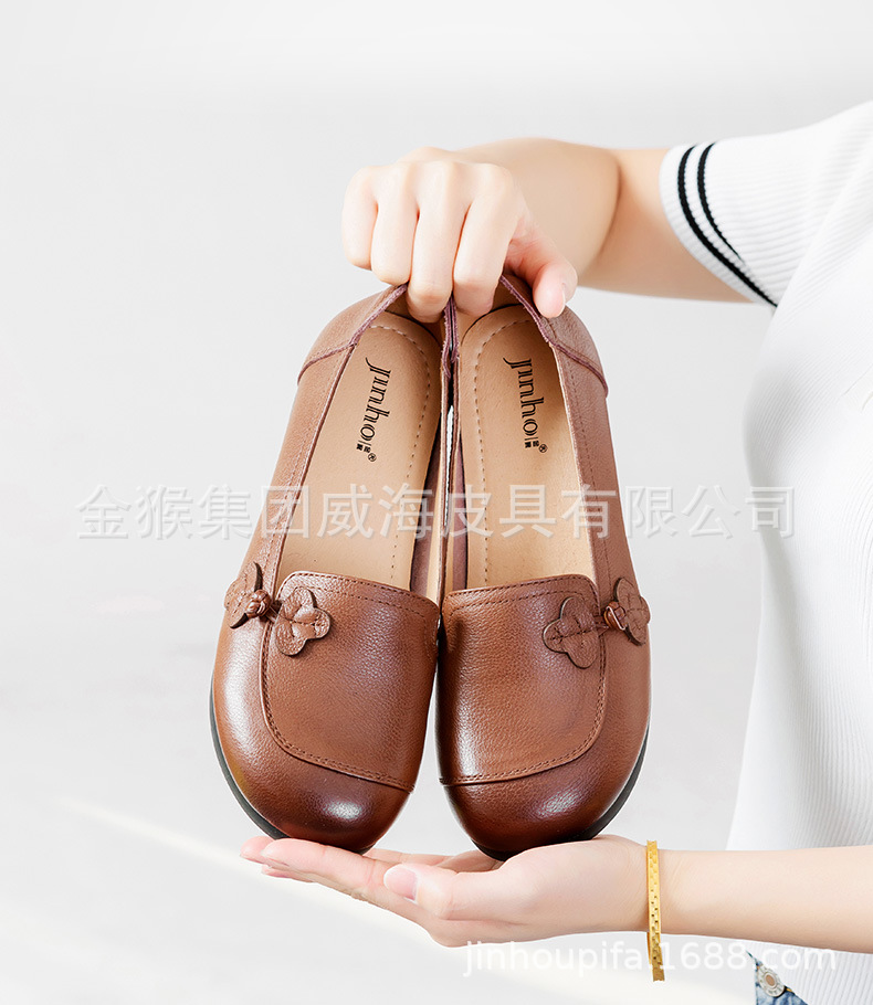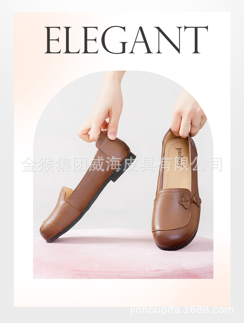 Золотая обезьяна 2025 весенняя кожаная национальная обувь в стиле матери, удобная плоская мягкая подошва повседневная кожаная обувь для пожилых людей среднего и пожилого возраста