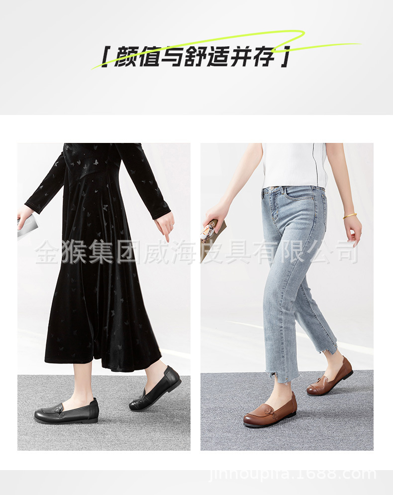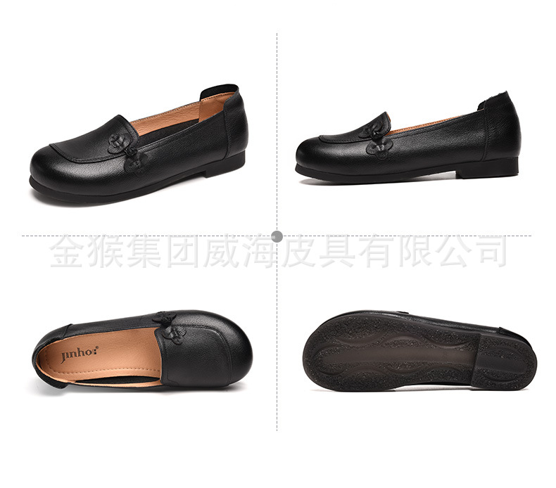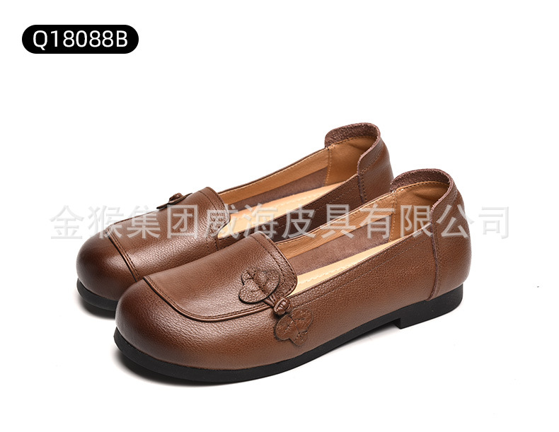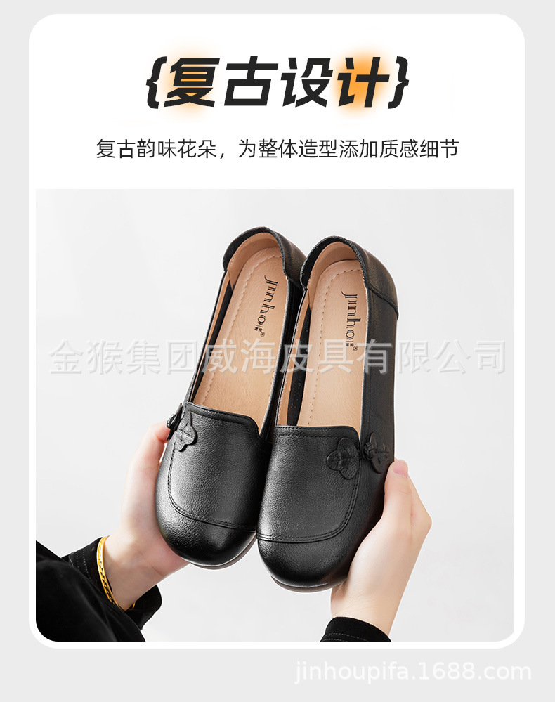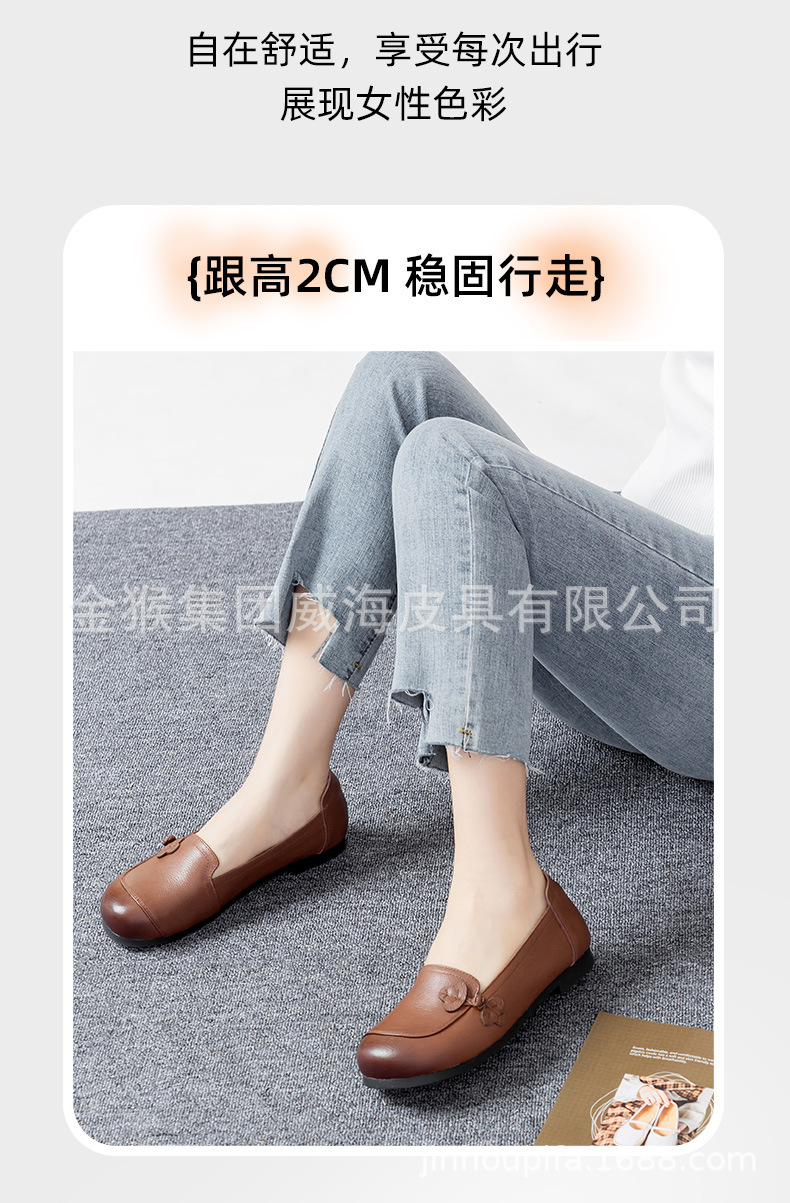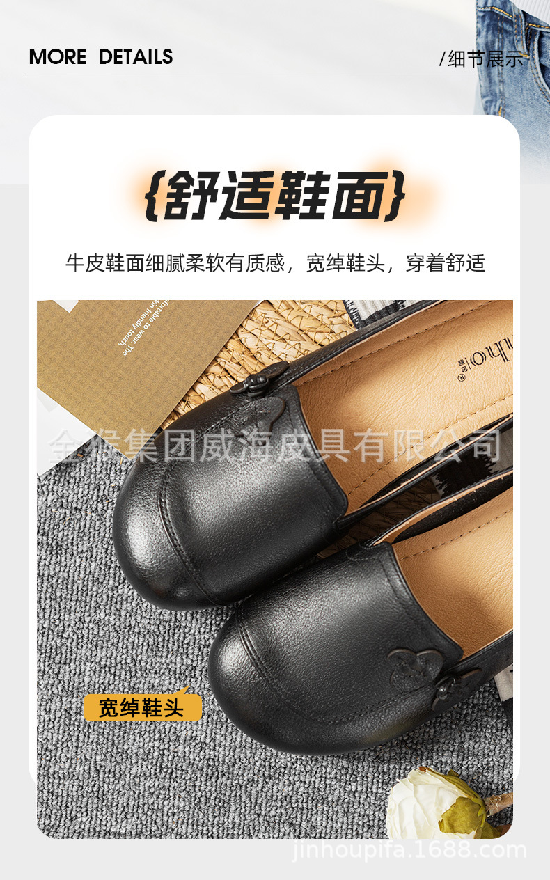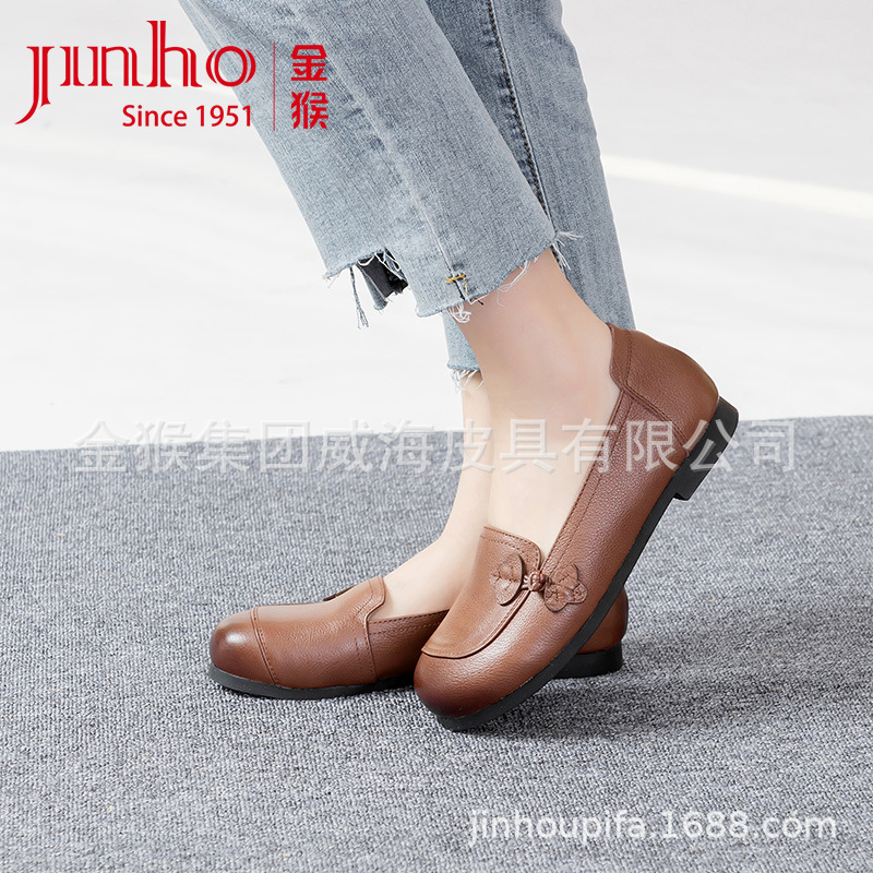 Золотая обезьяна 2025 весенняя кожаная национальная обувь в стиле матери, удобная плоская мягкая подошва повседневная кожаная обувь для пожилых людей среднего и пожилого возраста