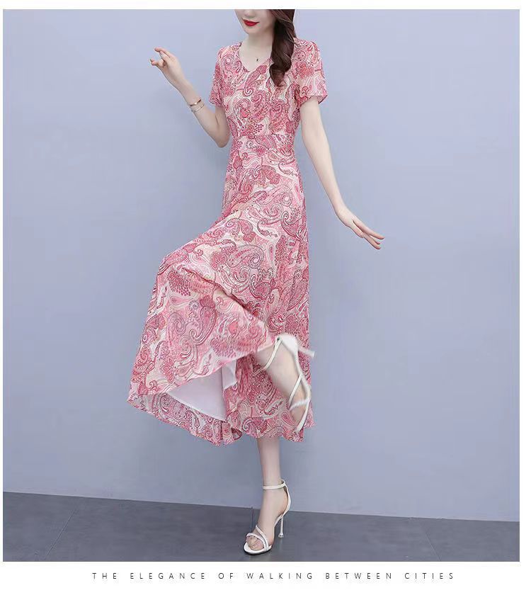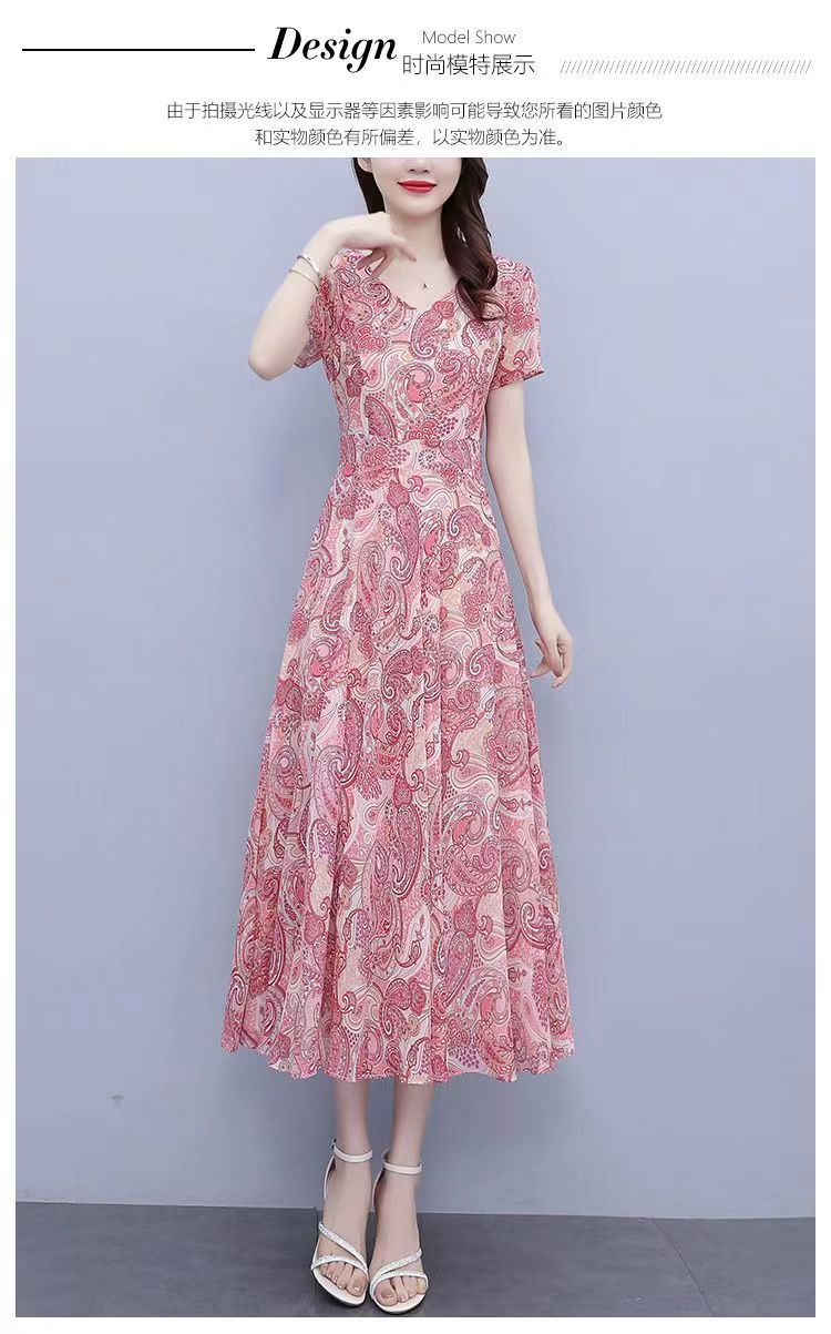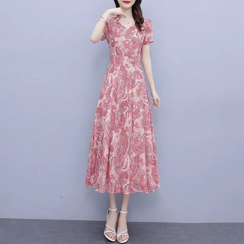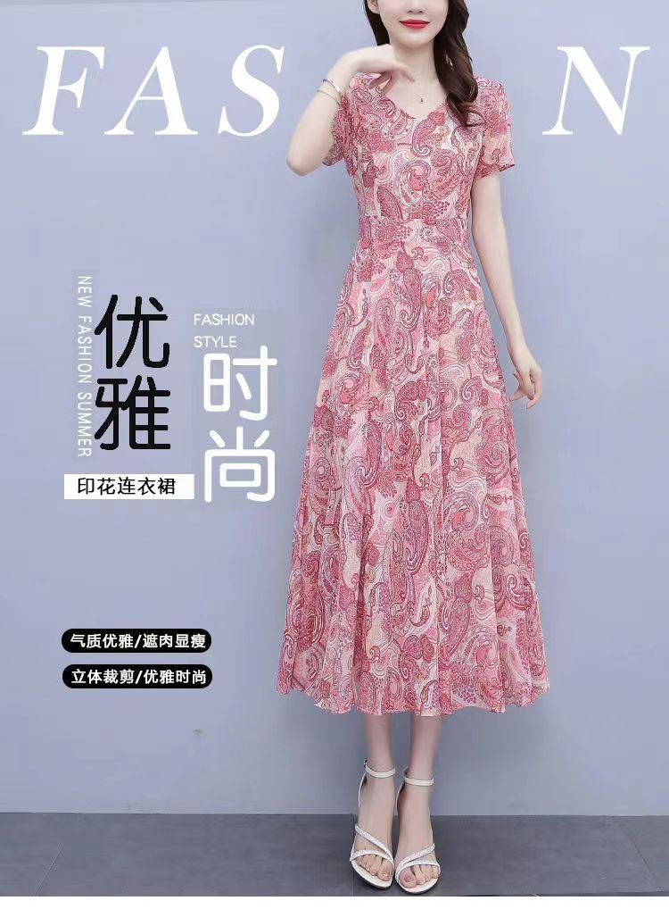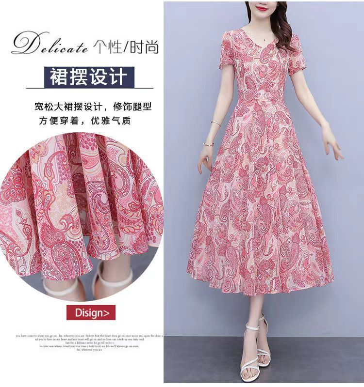180 г ледяного шелка цветочно-цветочные свободные платья женские летние новые взрывные модели высокого класса среднего и длинного темперамента юбка мамы