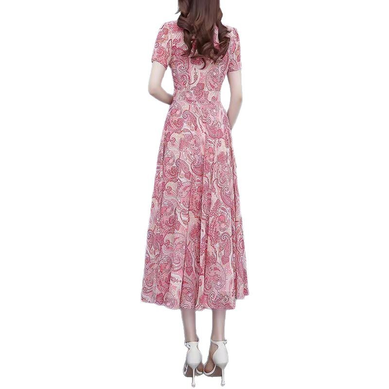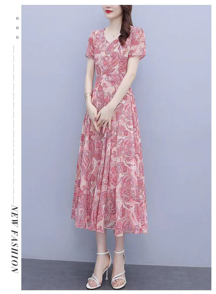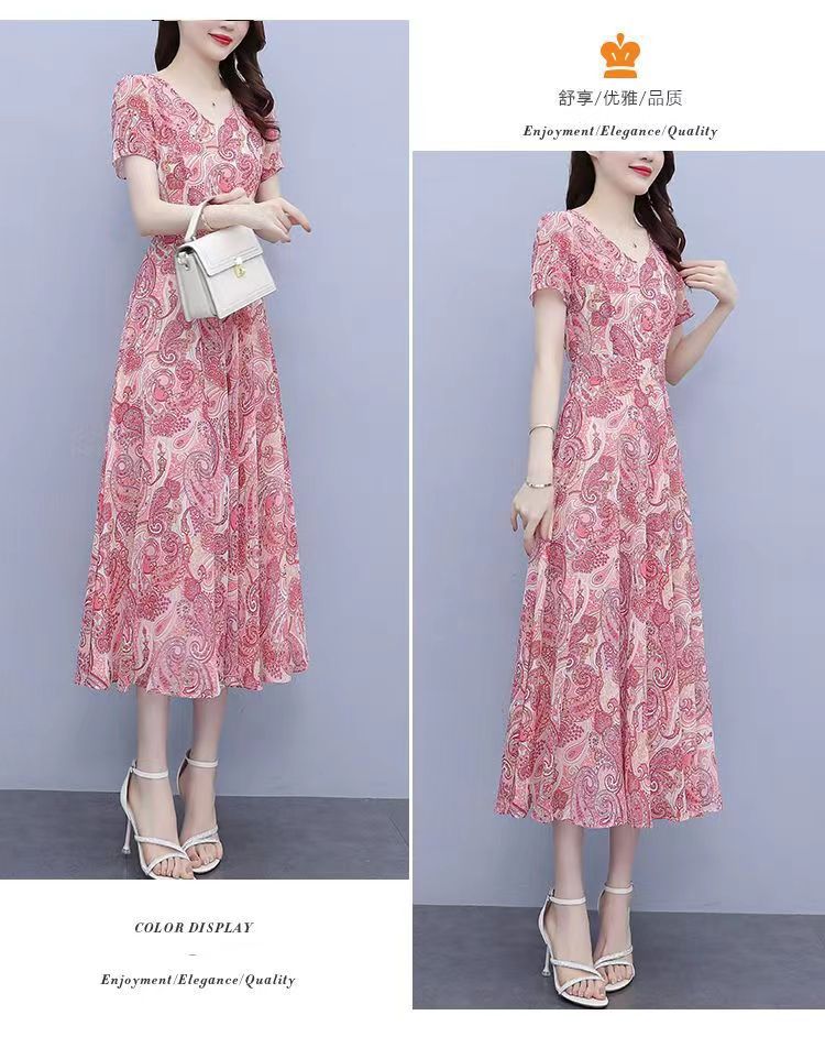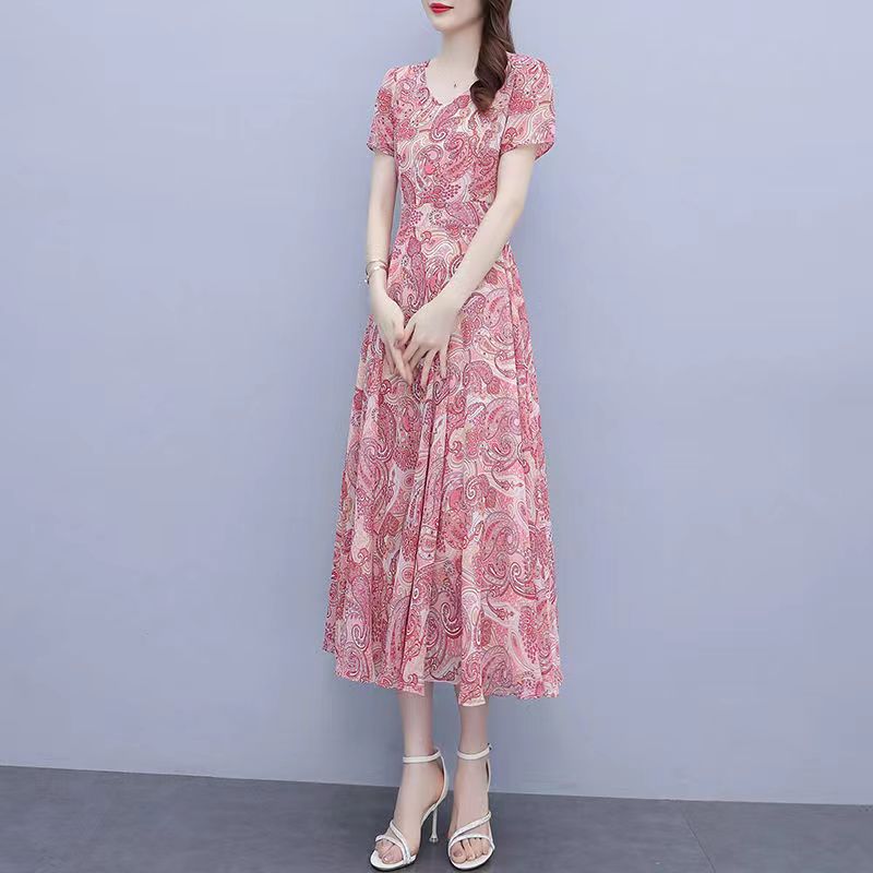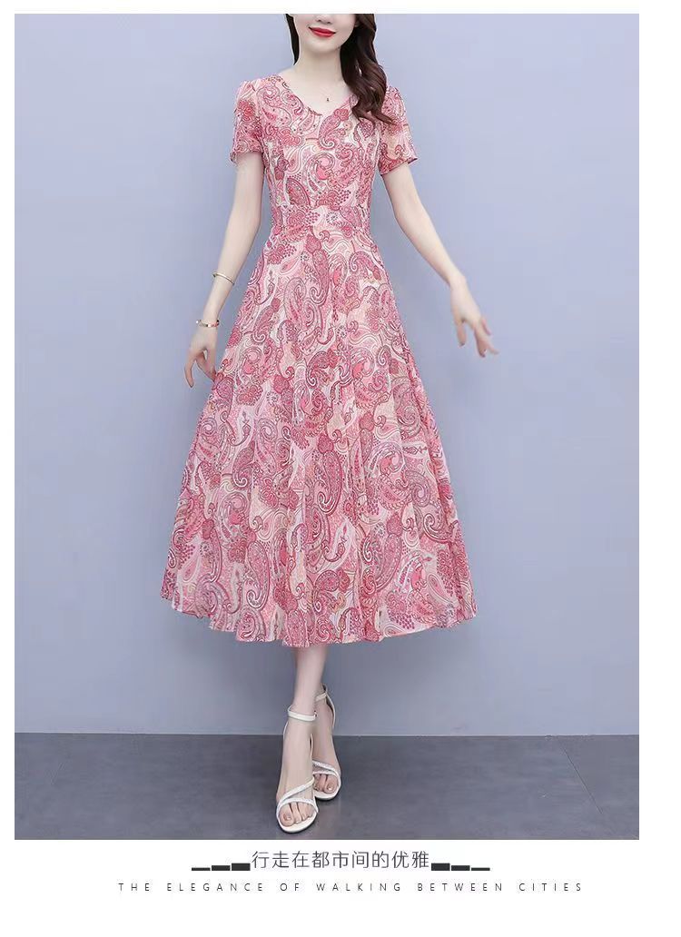 180 г ледяного шелка цветочно-цветочные свободные платья женские летние новые взрывные модели высокого класса среднего и длинного темперамента юбка мамы