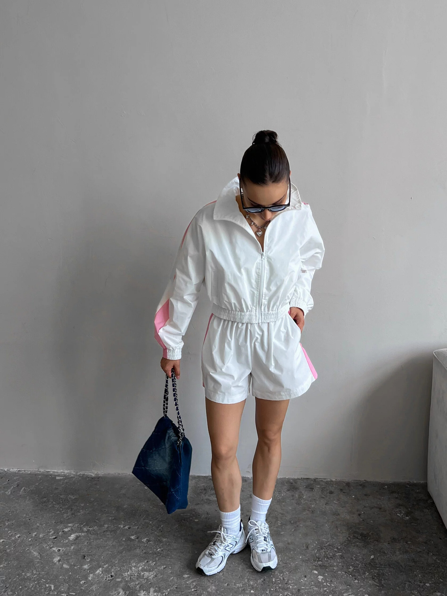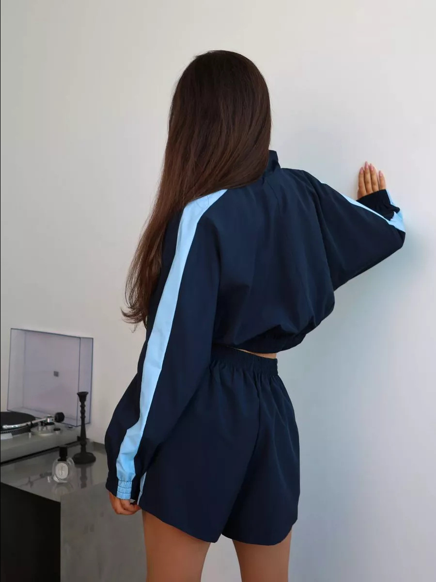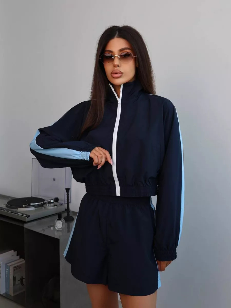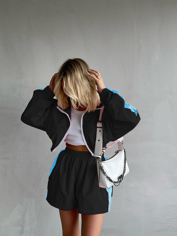 Внешняя торговля мода женская одежда с длинными рукавами на молнии спортивный кардиган шорты набор для женщин спортивная одежда повседневный набор из двух частей