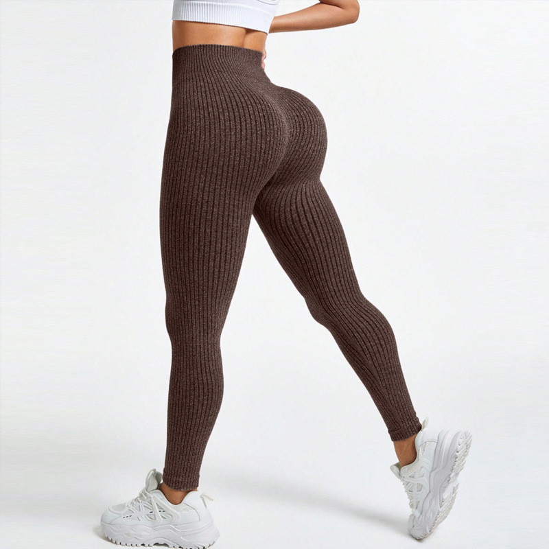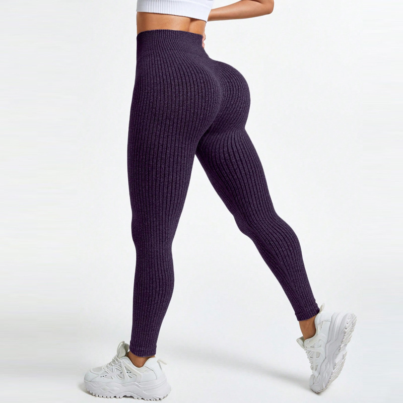 Спортивные леггинсы для йоги с ребристой текстурой для женщин, с высокой талией и эффектом утягивания живота, длинные фитнес-брюки с эффектом «персиковых ягодиц» для носки поверх одежды