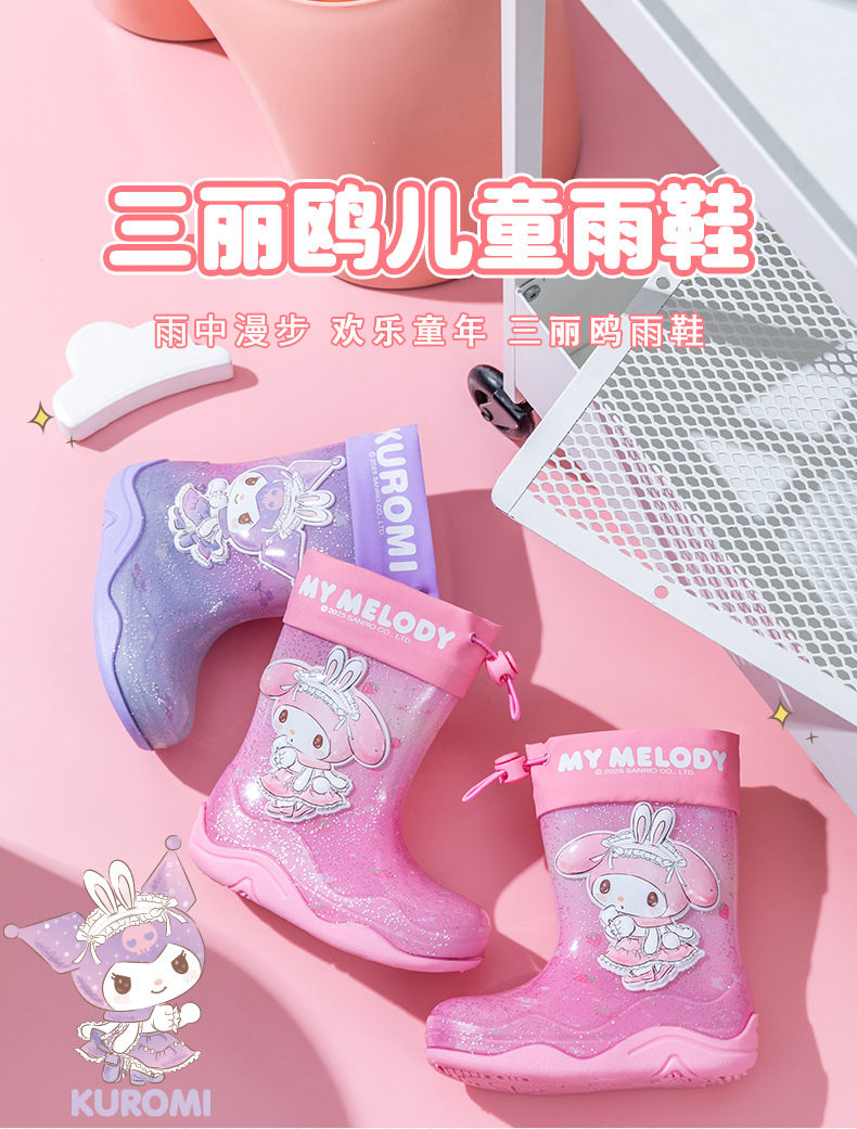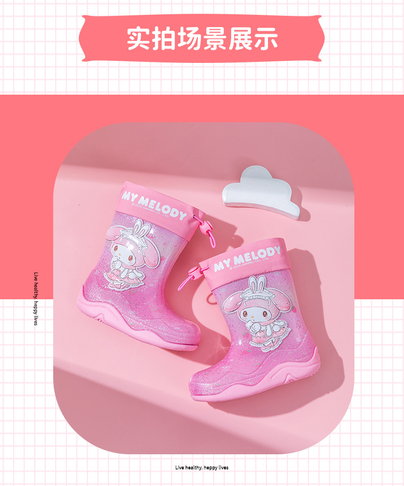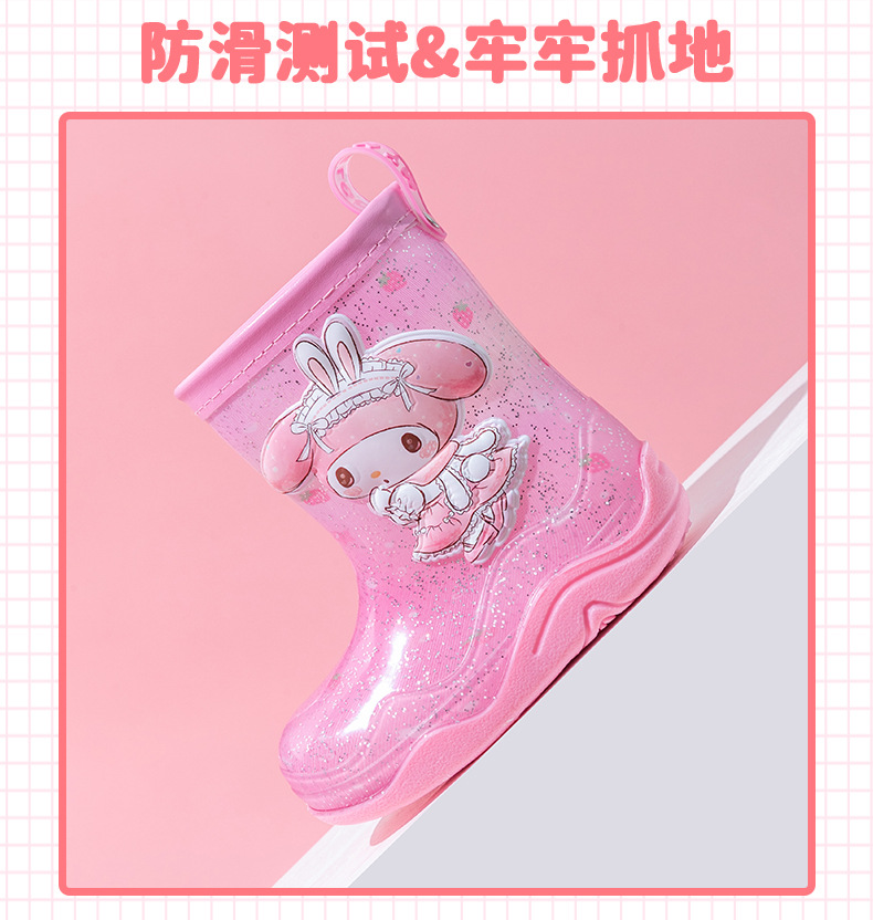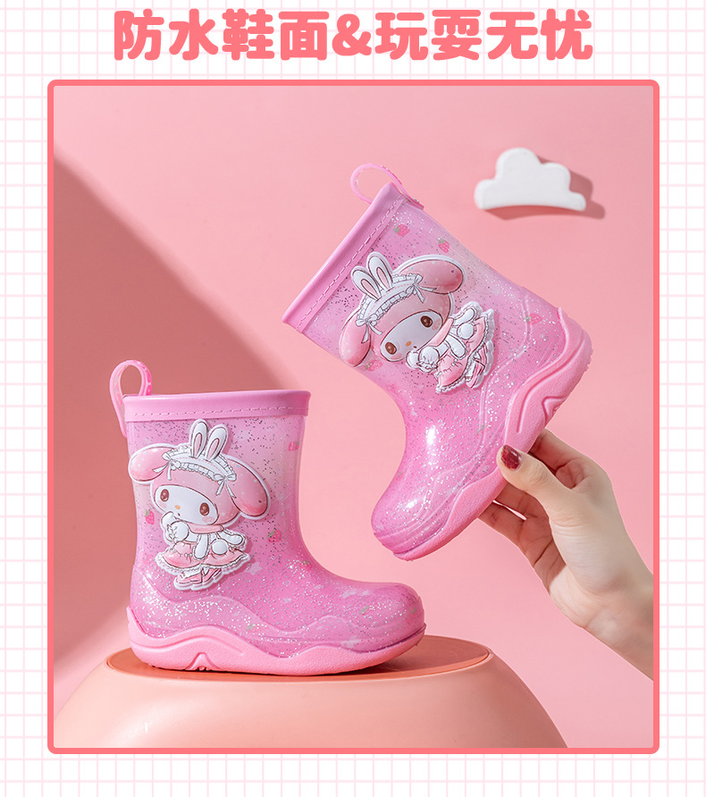 Sanrio Детские хрустальные резиновые сапоги милый мультфильм девочка детский сад водонепроницаемые нескользящие дождевые сапоги