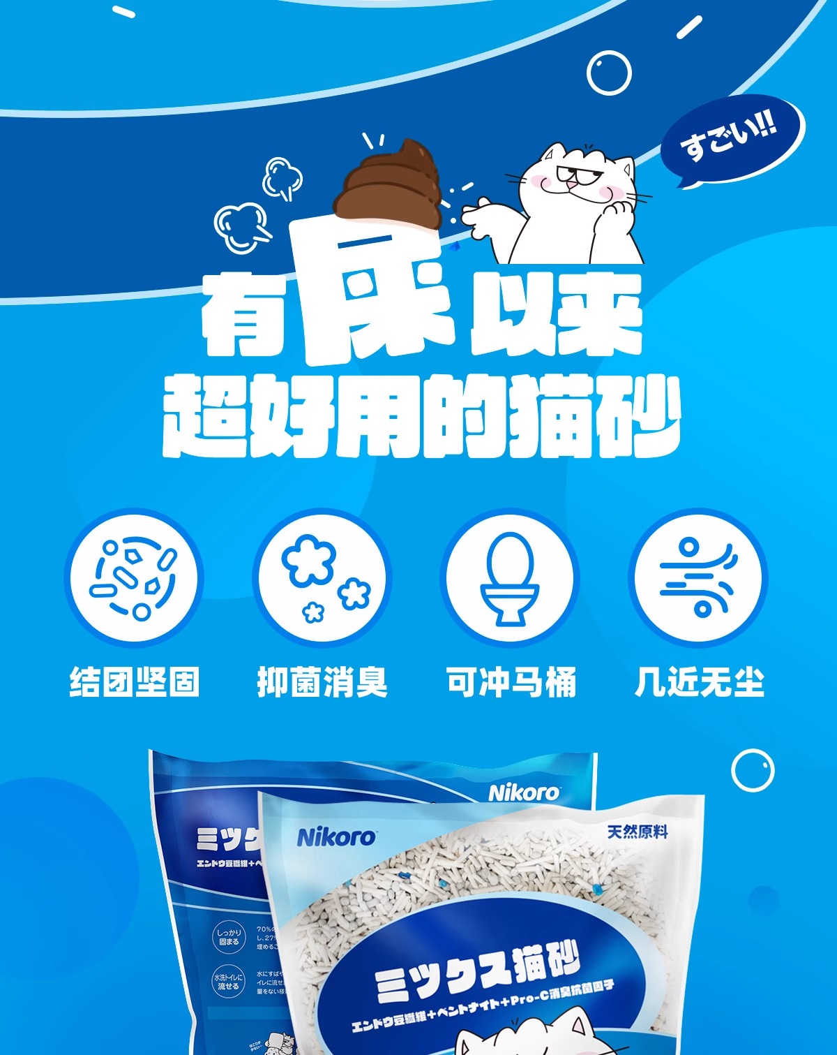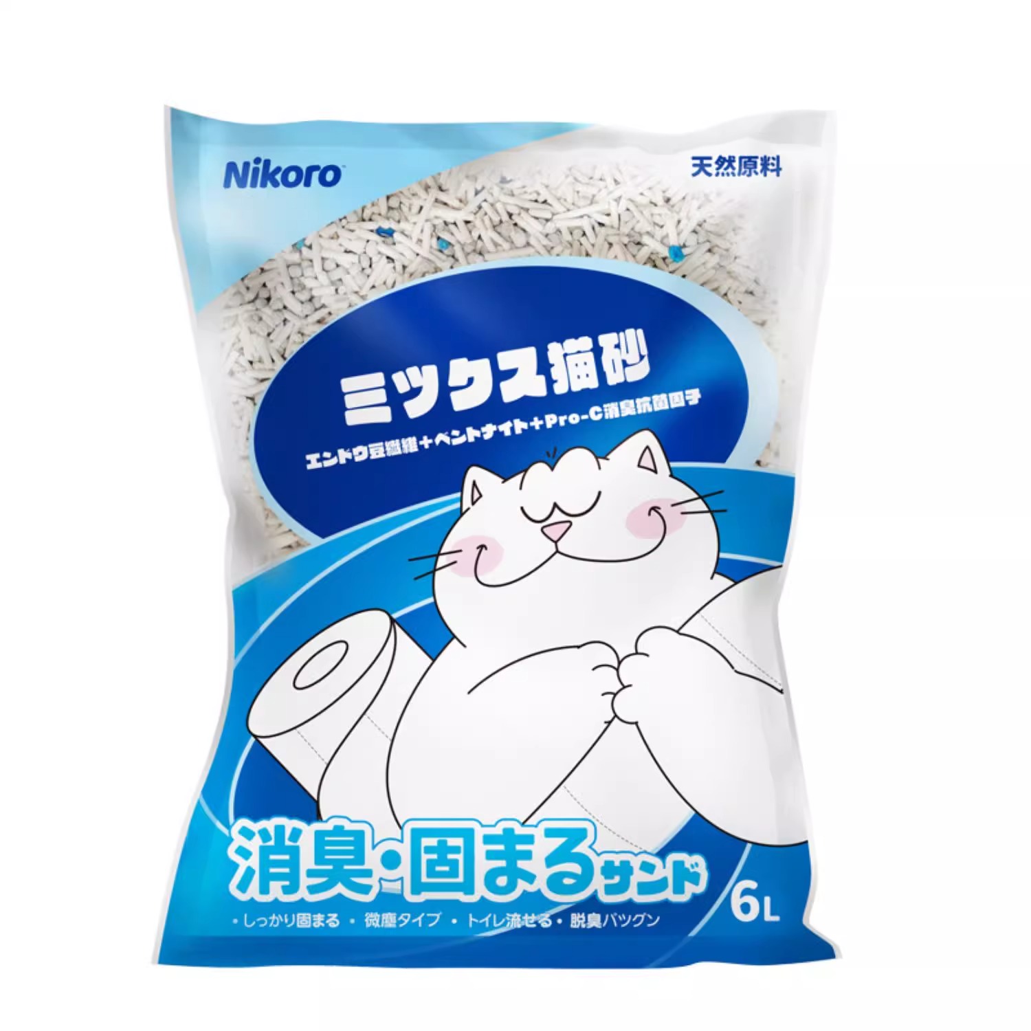 Японский Николо Николу смешанный кошачий пометок 2.5kg6L Жасмин вишневый цвет кошачий тофу бентонит