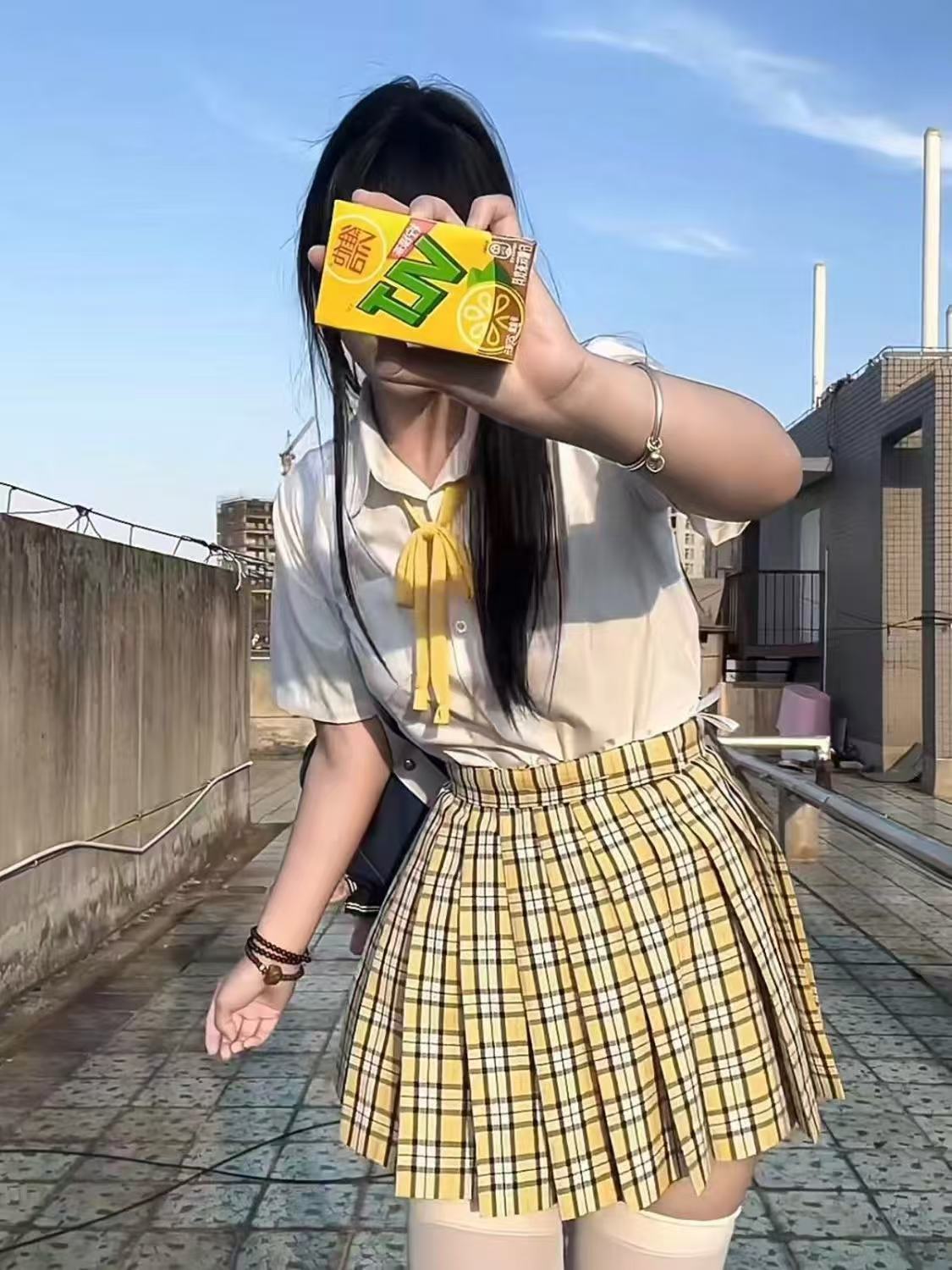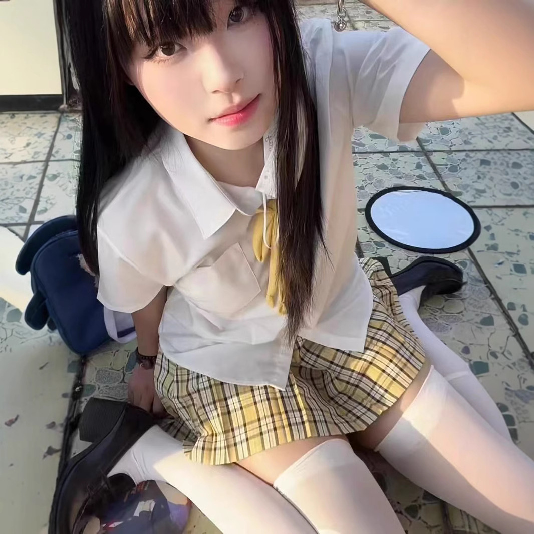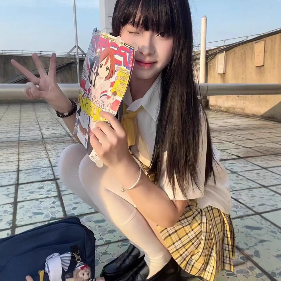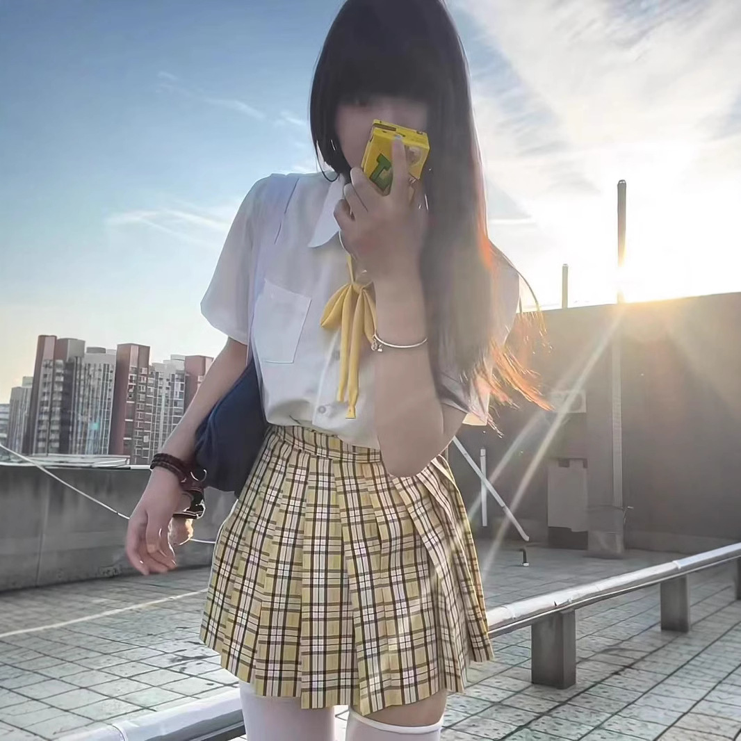 Рубашка с короткими рукавами с V-образным вырезом + юбка Xiaoxingzhong JK + веревка с желтым воротником; Юбка Xiaoxingzhong JK + веревка с желтым воротником; Свободная рубашка с короткими рукавами + желтый воротник-шнур.; Коробка для самолета 3 юаня.
