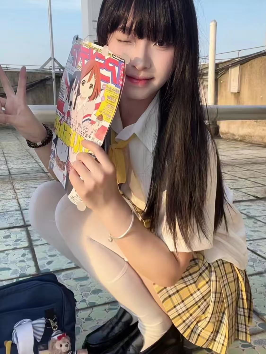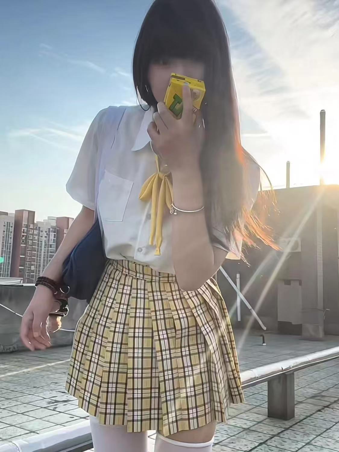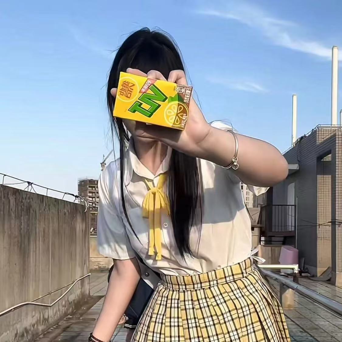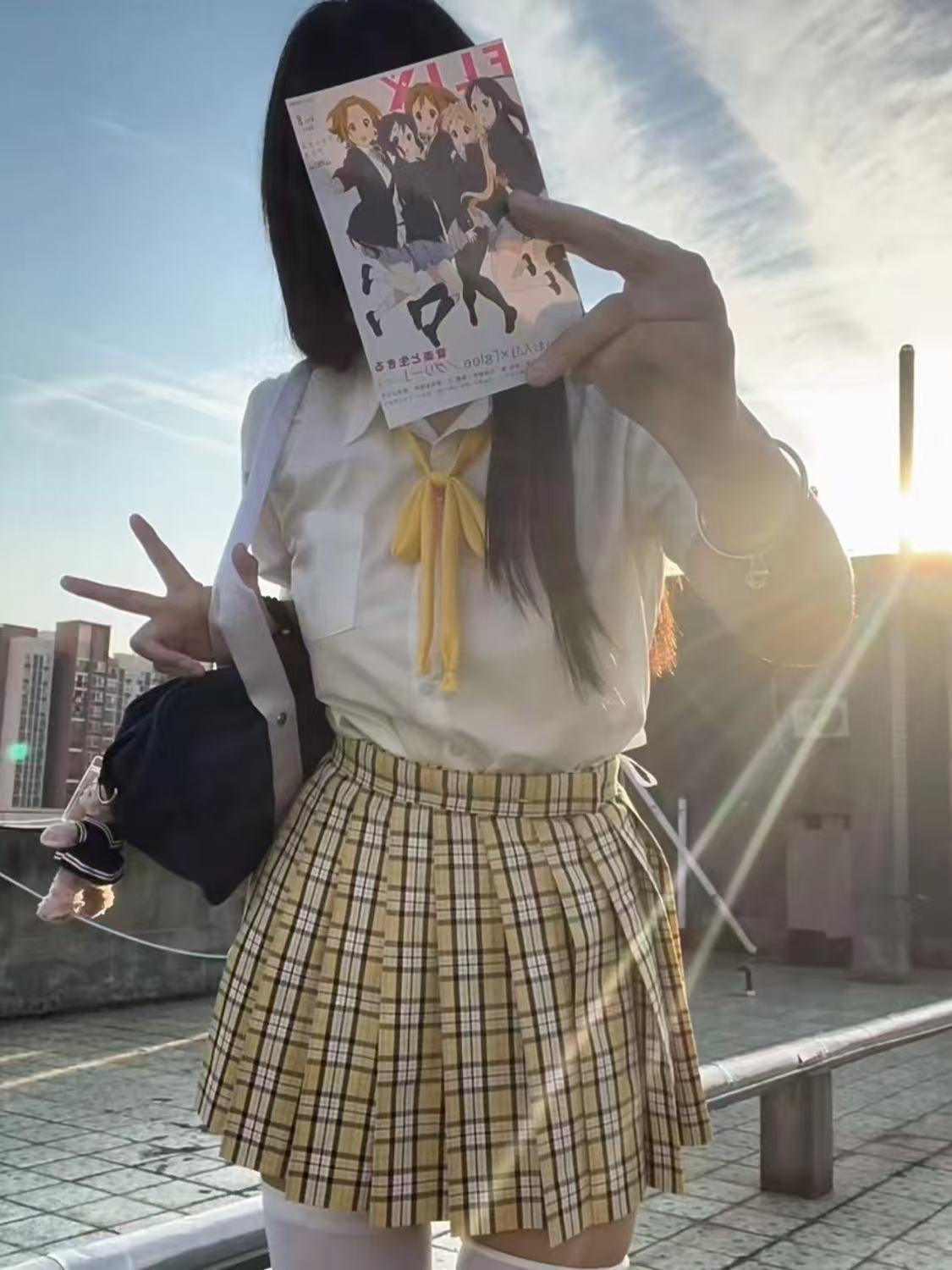 Рубашка с короткими рукавами с V-образным вырезом + юбка Xiaoxingzhong JK + веревка с желтым воротником; Юбка Xiaoxingzhong JK + веревка с желтым воротником; Свободная рубашка с короткими рукавами + желтый воротник-шнур.; Коробка для самолета 3 юаня.
