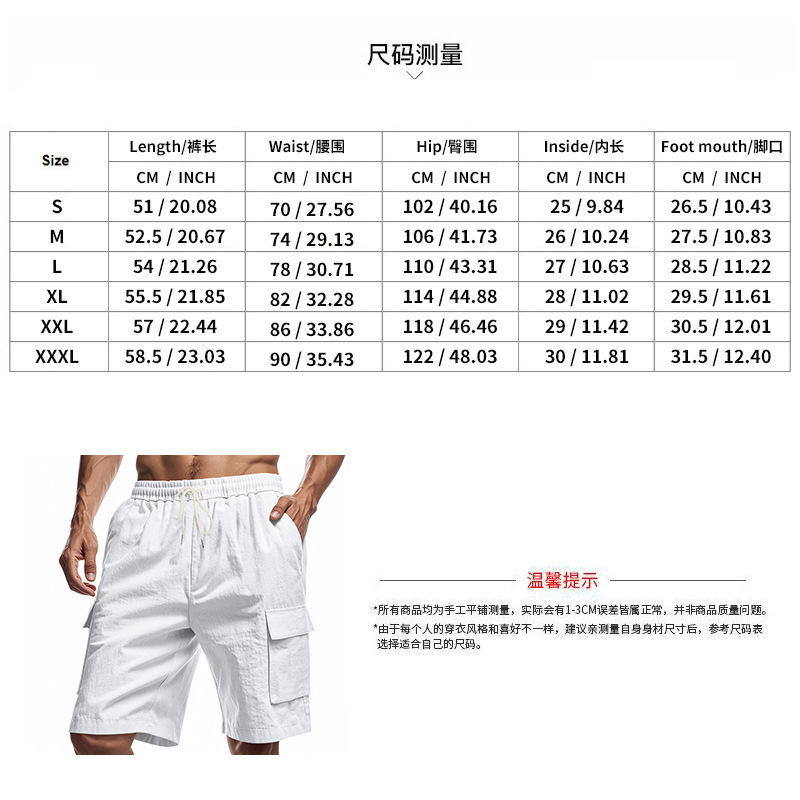 Трансграничные американские мульти-карманные шорты для мужчин Amazon Sports и отдых свободные сплошные льняные шпагаты укороченные брюки