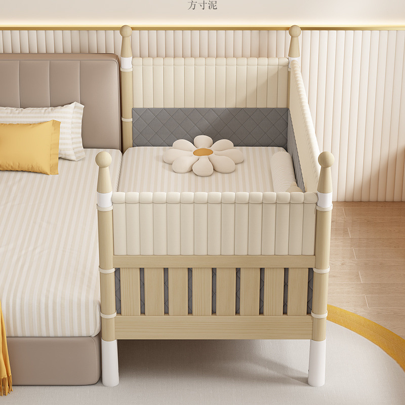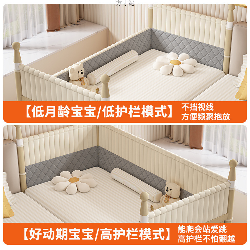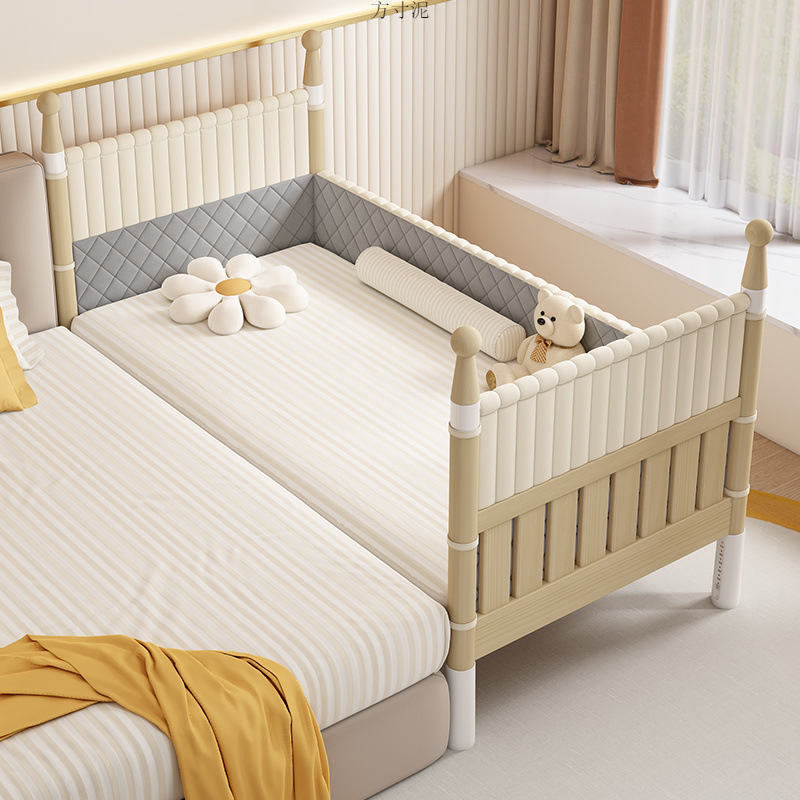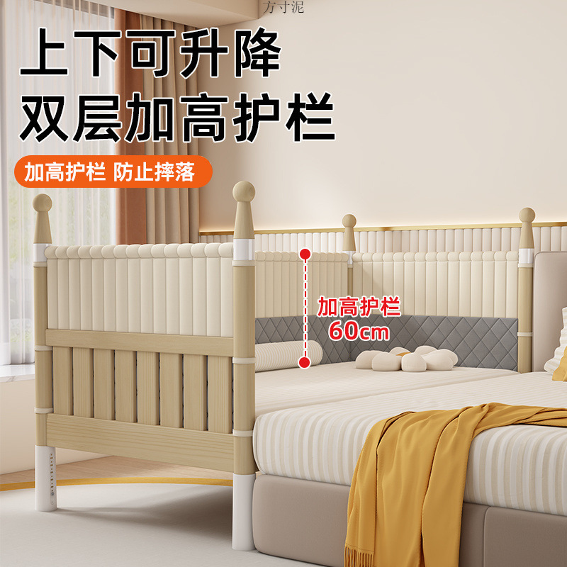 Кровать для сращивания ребенка Подъем с ограждением может быть поднит с обнесением кровати, расширена большая кровать рядом с цельной деревянной детской односпальной кроватью