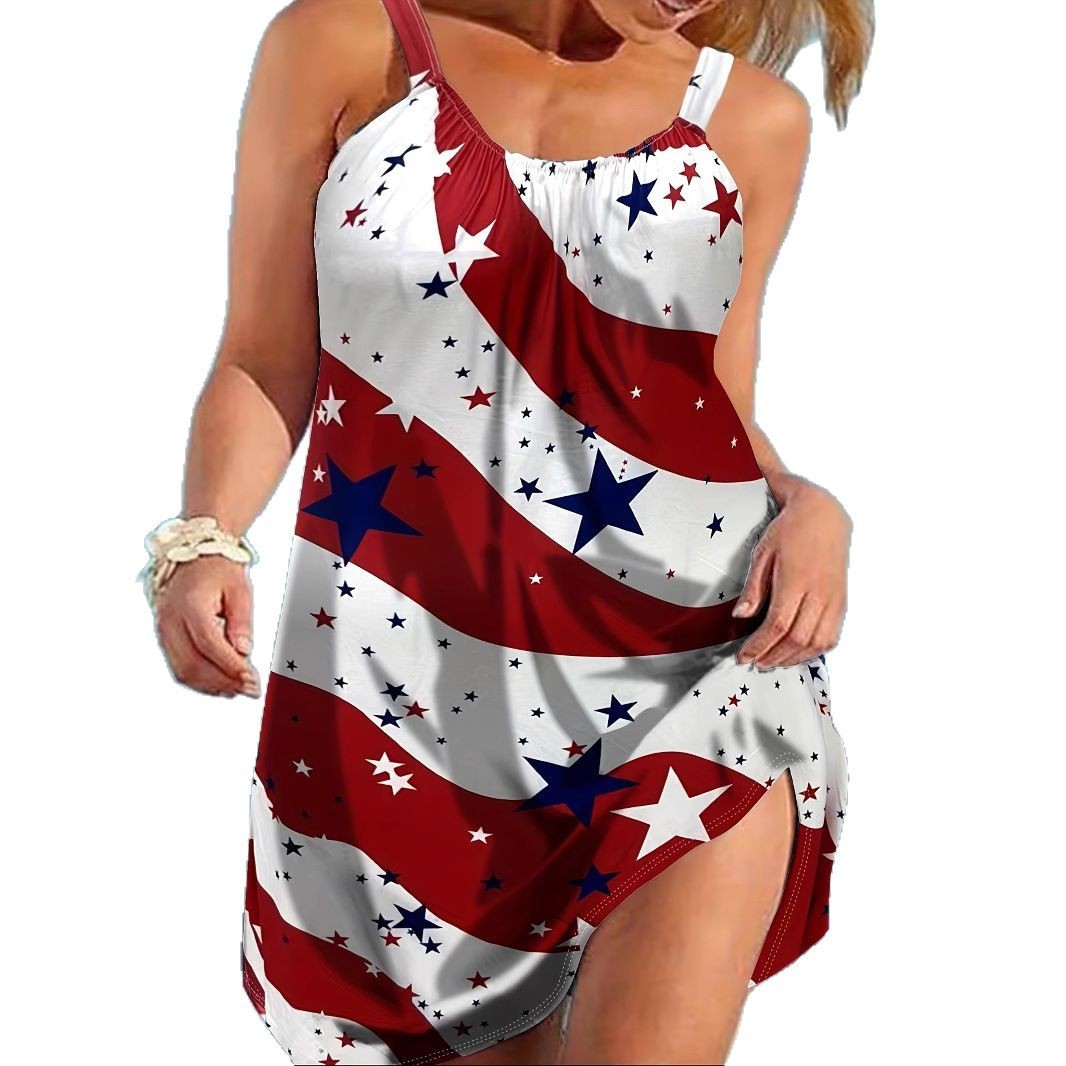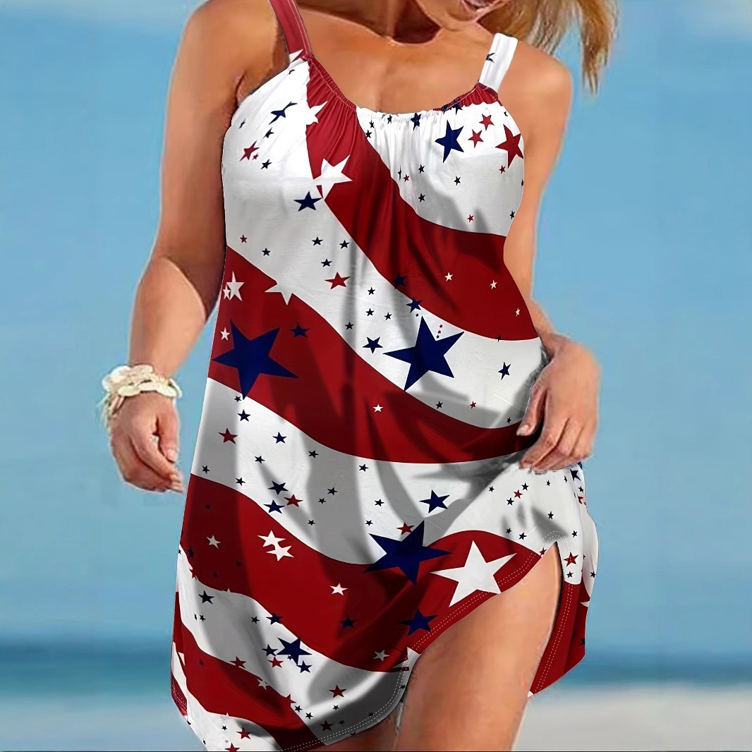 2025 Европа и США трансграничные амазонка новое летнее платье с принтом для женской одежды