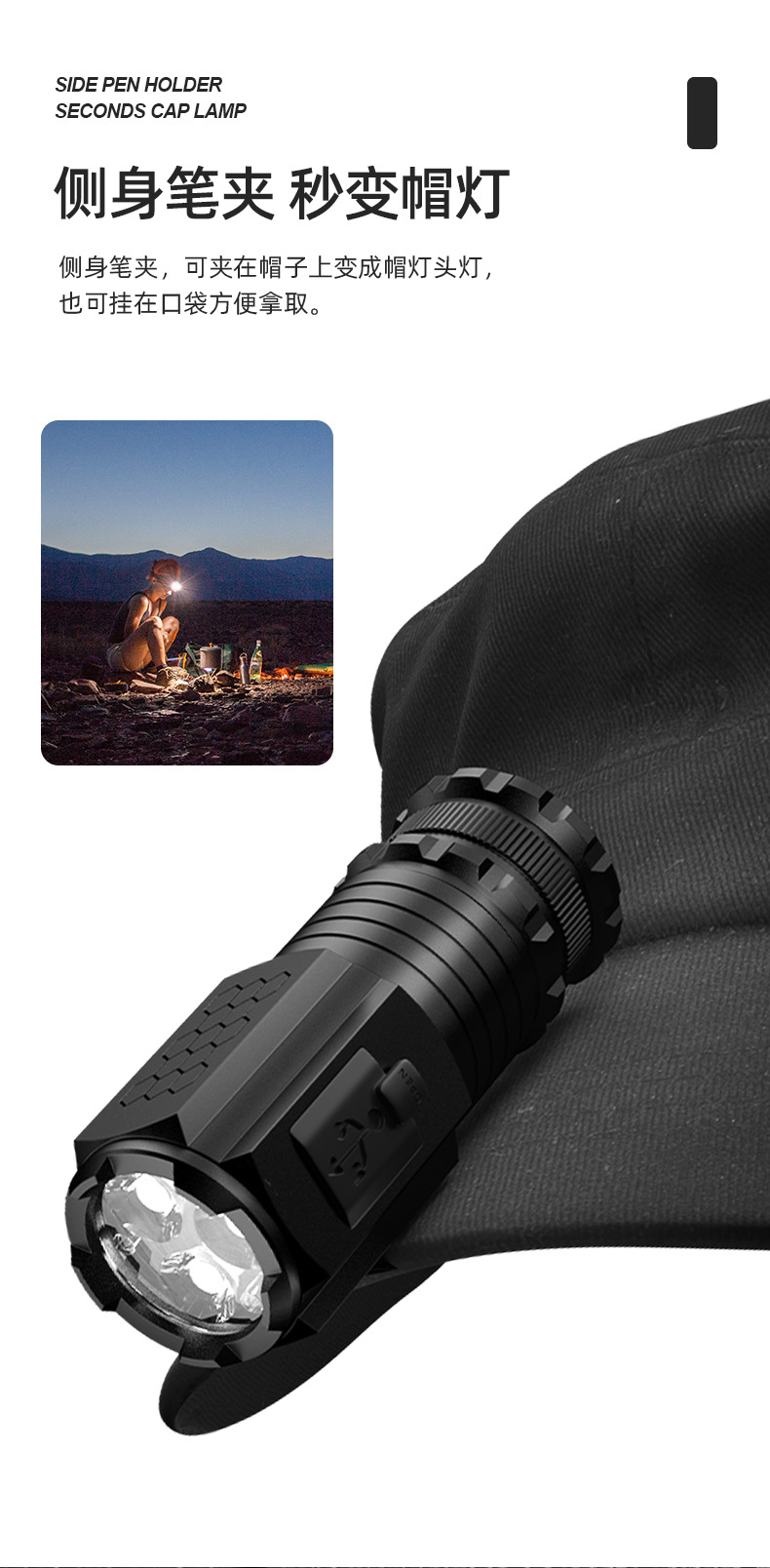 Трансграничный новый портативный фонарик водонепроницаемый и устойчив к падению мини-фонарик многофункциональный магнитная шляпа зажим для наружного фонарика