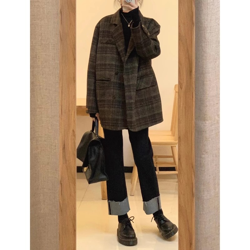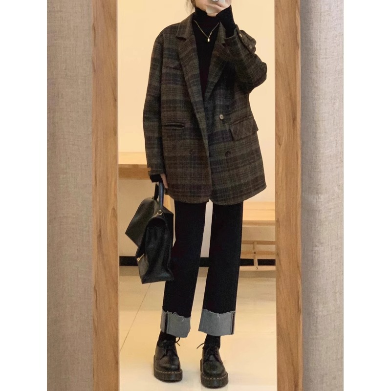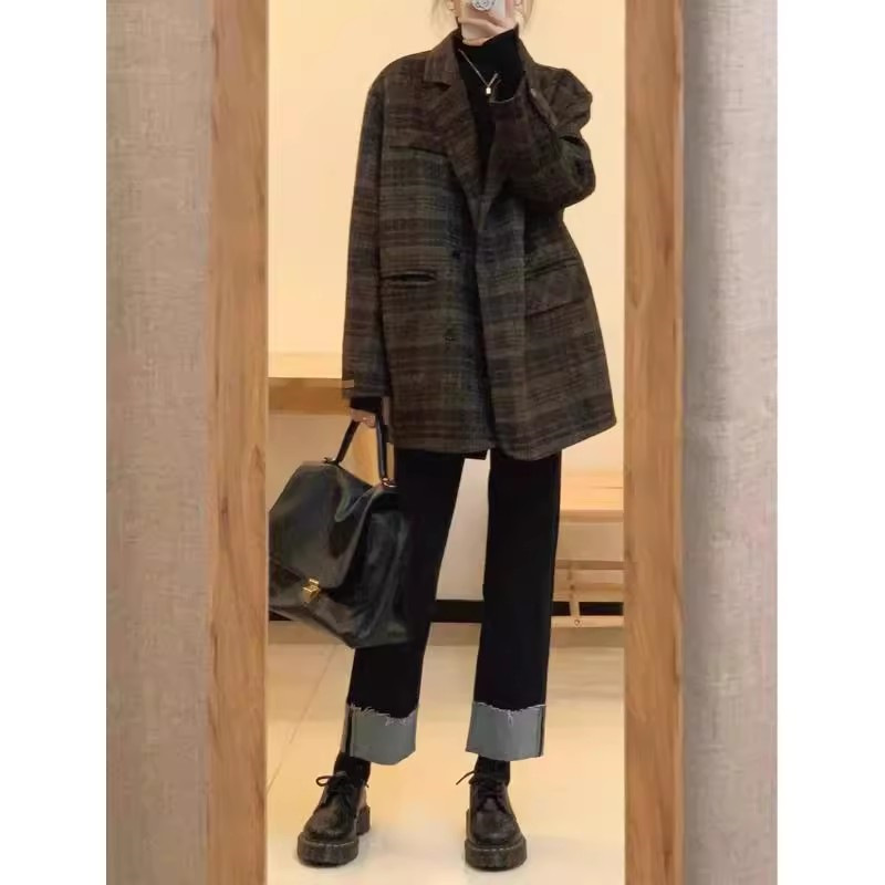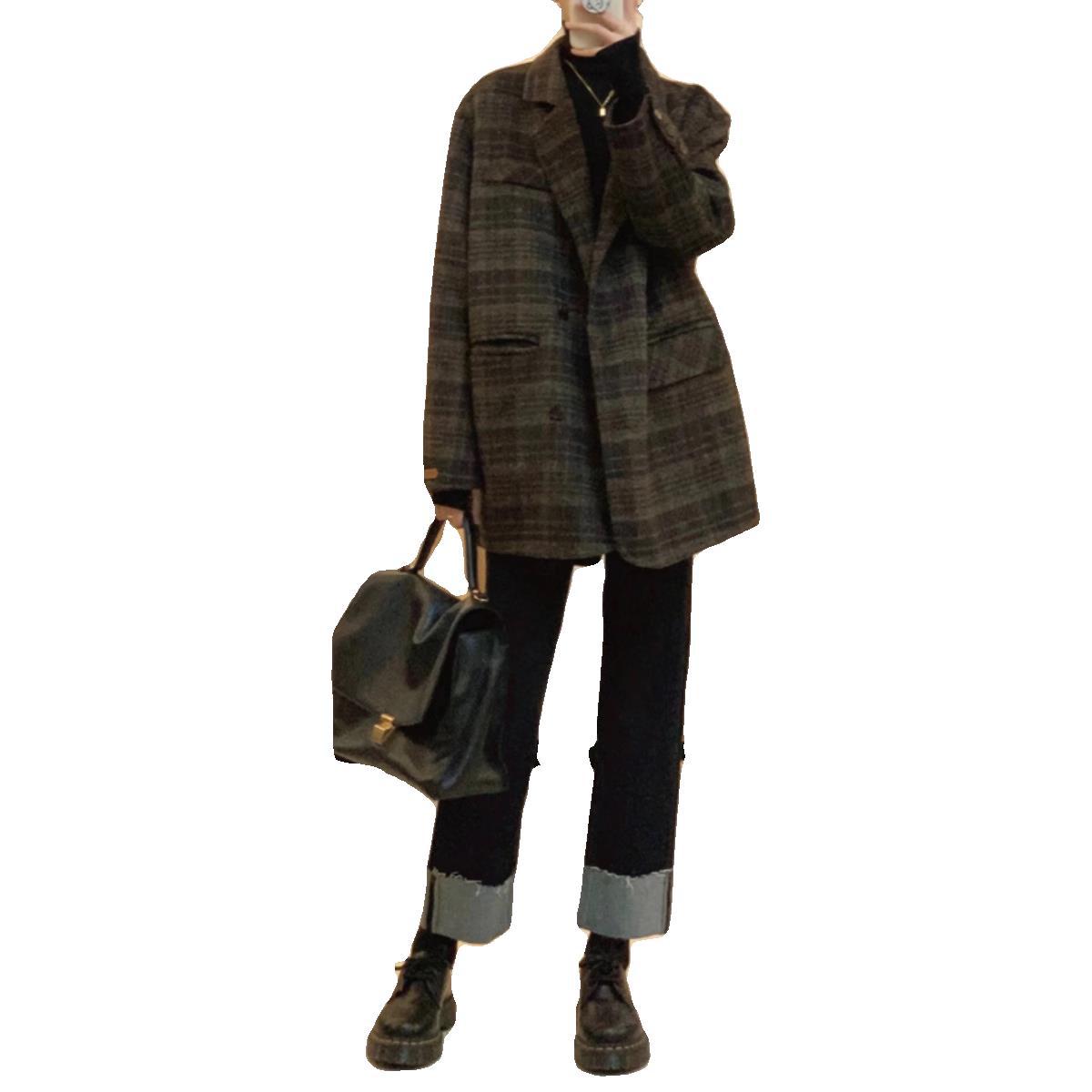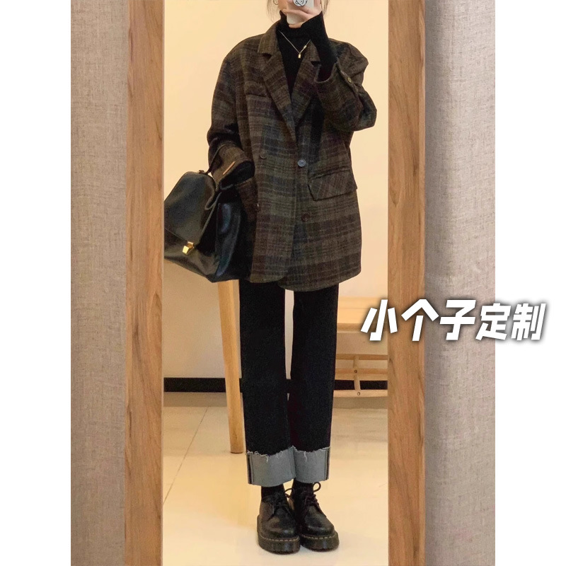 150 маленьких коротких шерстяных пальто в клетку женские осенние и зимние ретро шерстяные шерстяные куртки высокого уровня чувство короткий костюм топ