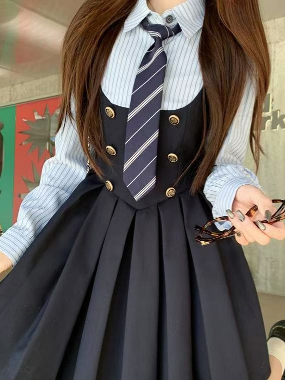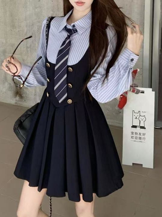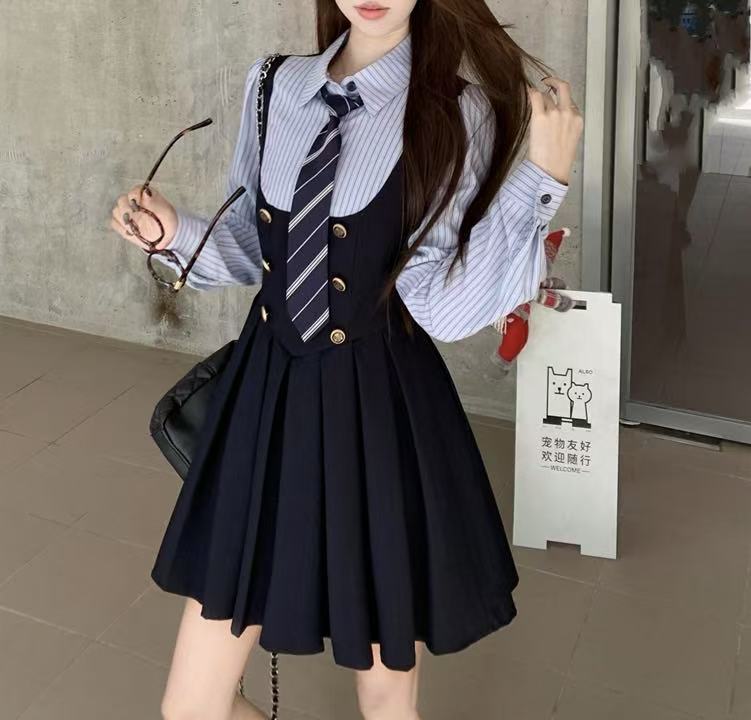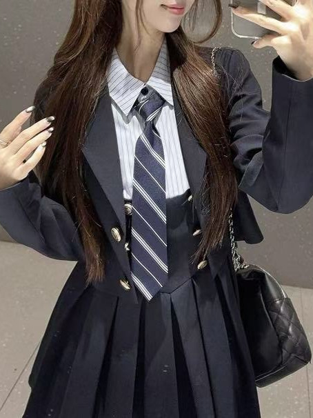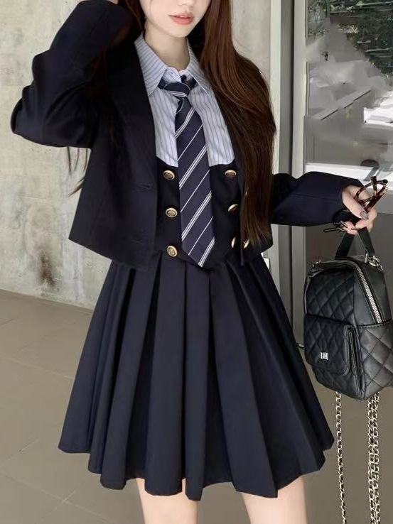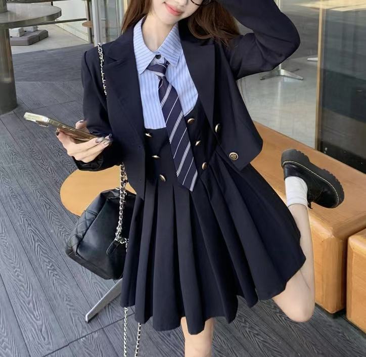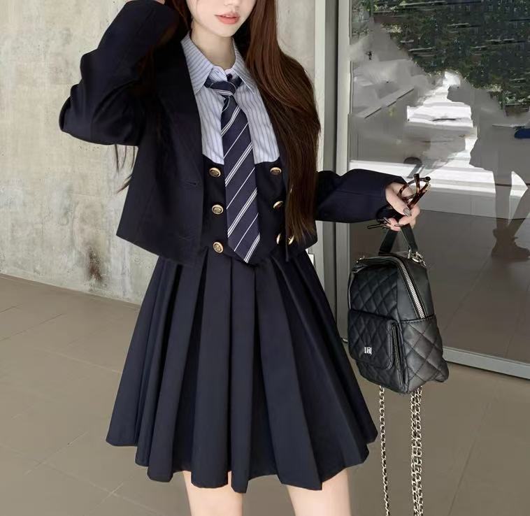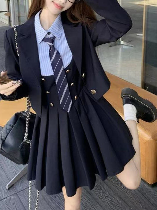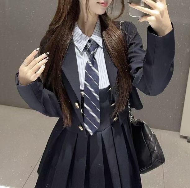 Академический стиль японский jk униформа набор мода весна и осень школа чувство короткого пиджака поддельное платье из двух частей