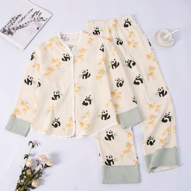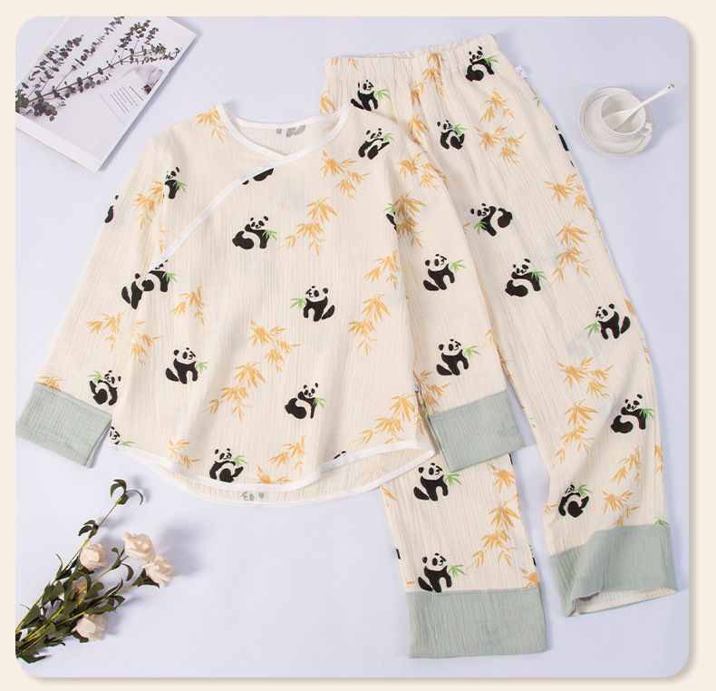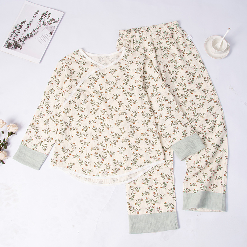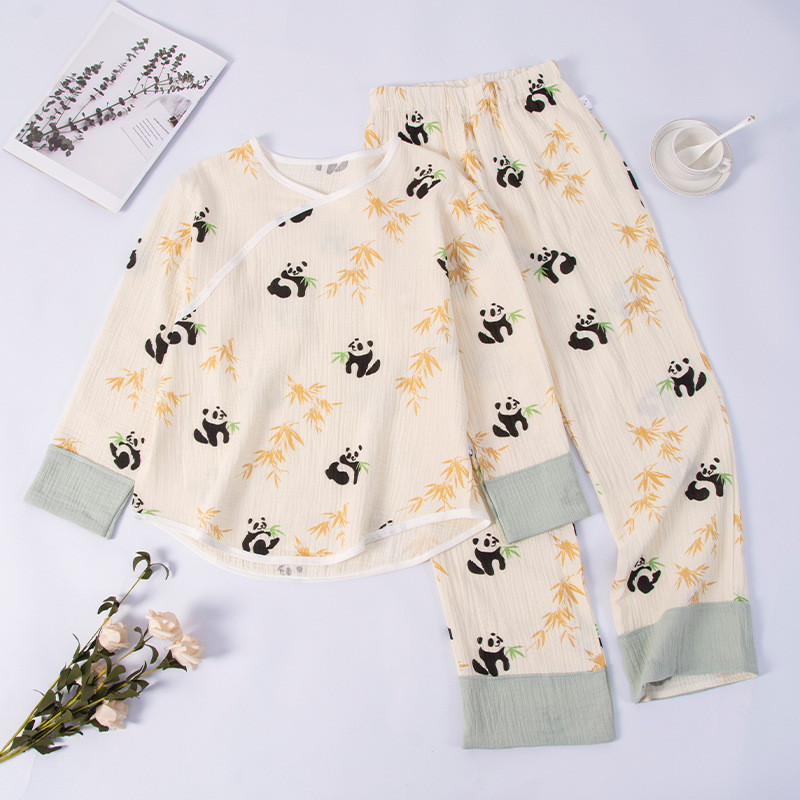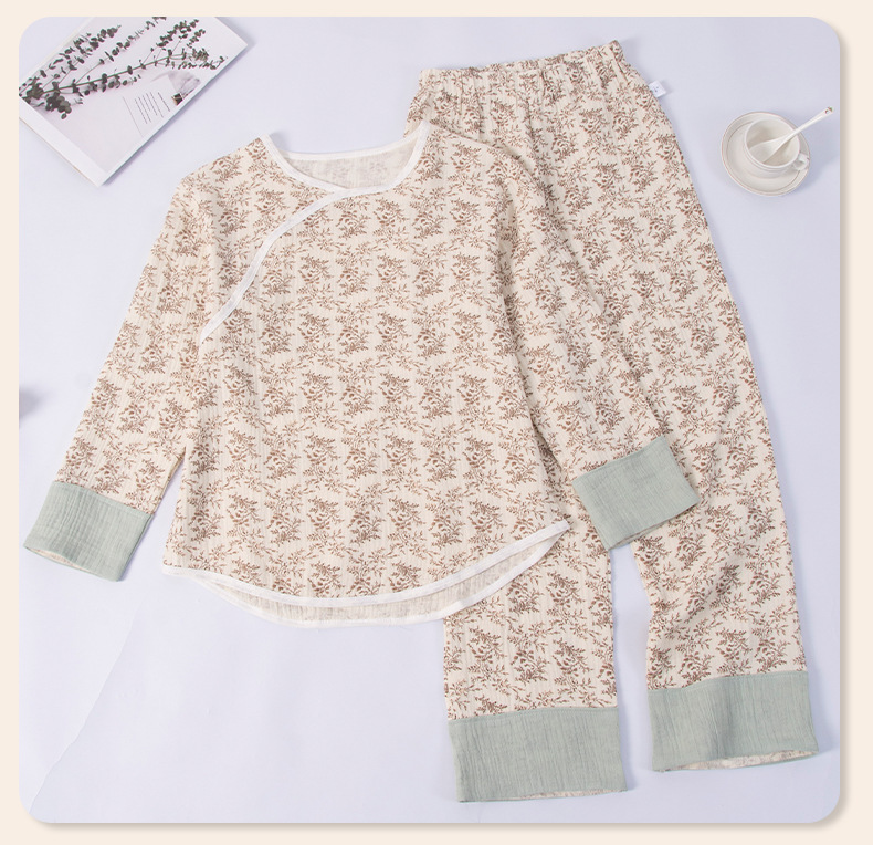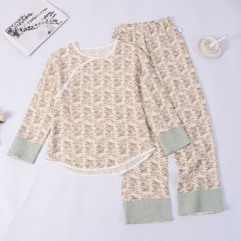 Женский национальный стиль пижамы набор двойной пряжи мягкий и удобный хлопок домашняя одежда
