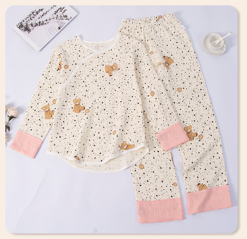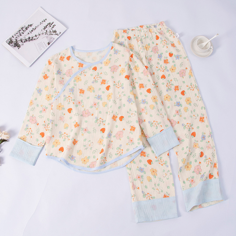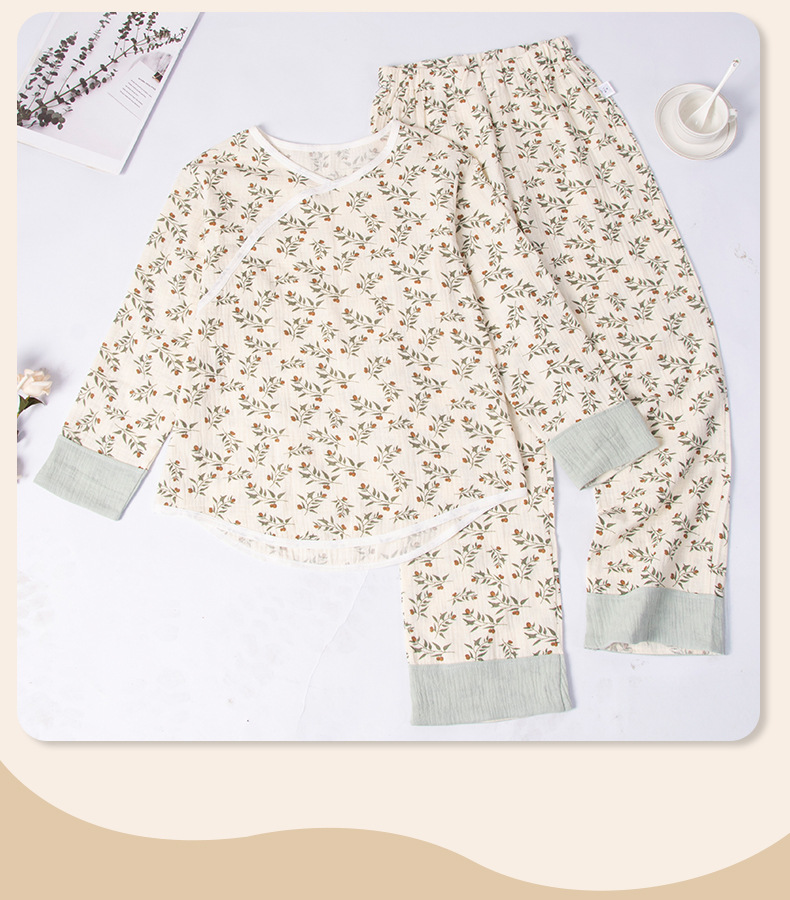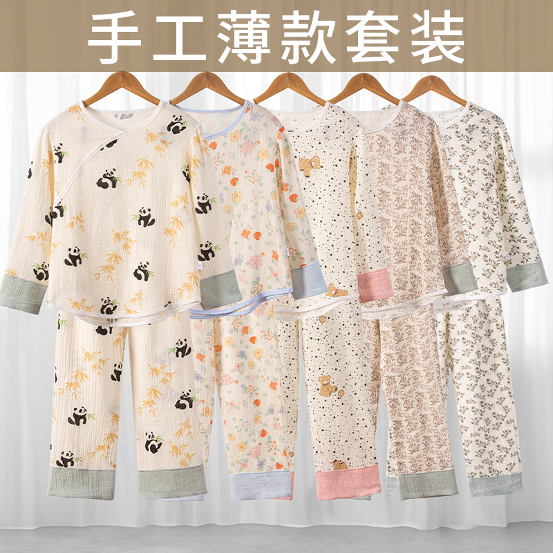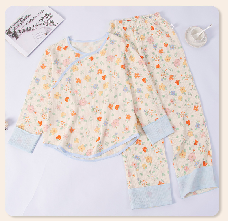 Женский национальный стиль пижамы набор двойной пряжи мягкий и удобный хлопок домашняя одежда