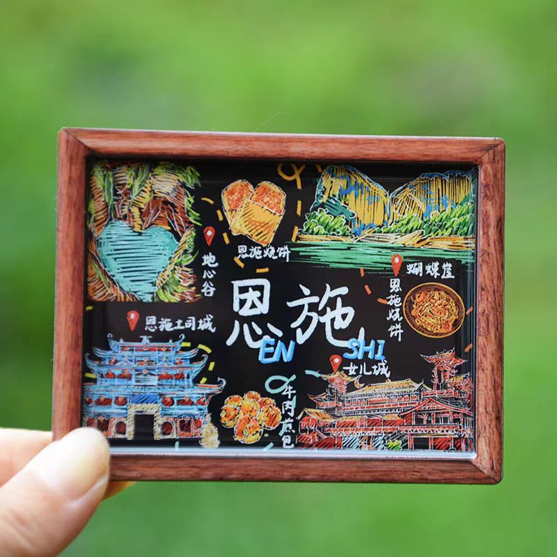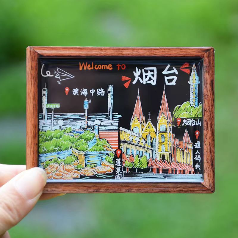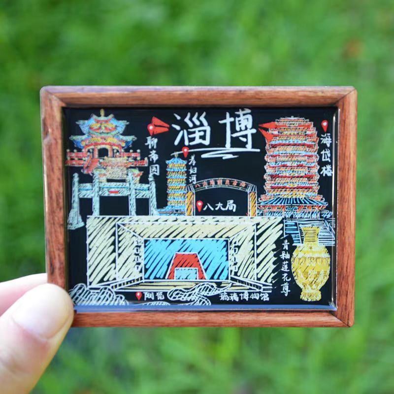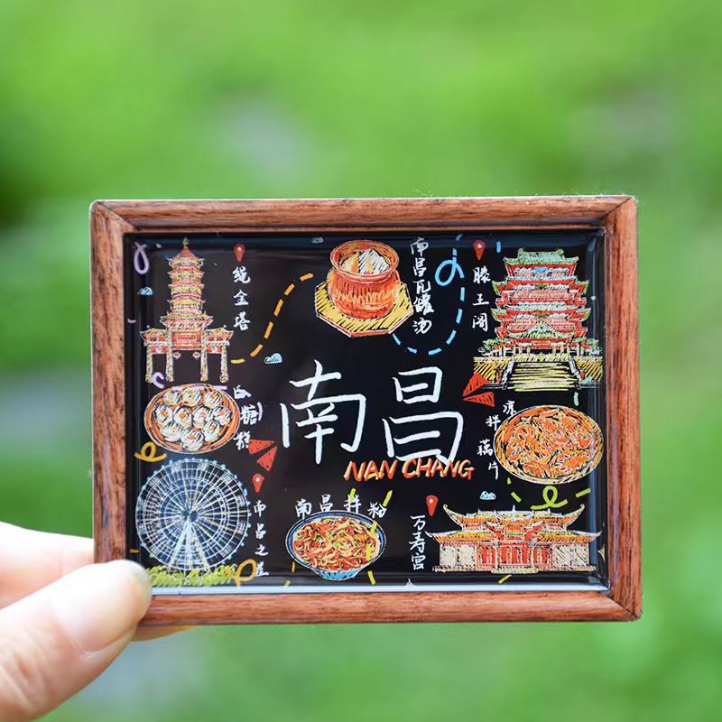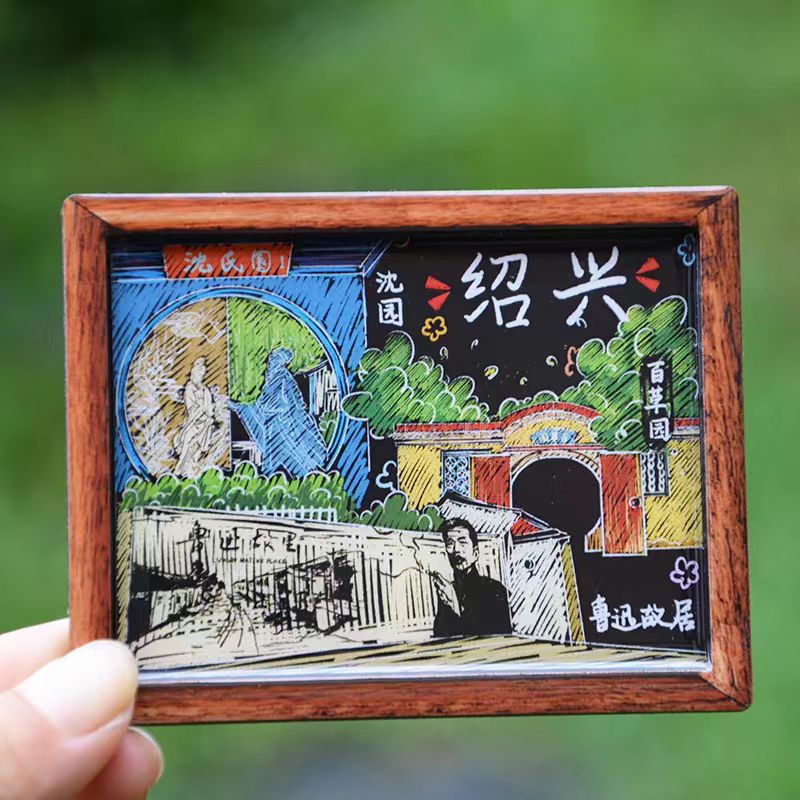 Родной город Лу Сюня, Шаосин Байкаоюань, туристическая достопримечательность Шэнь Шень, креативная ручная роспись доски деревянная наклейка на холодильник