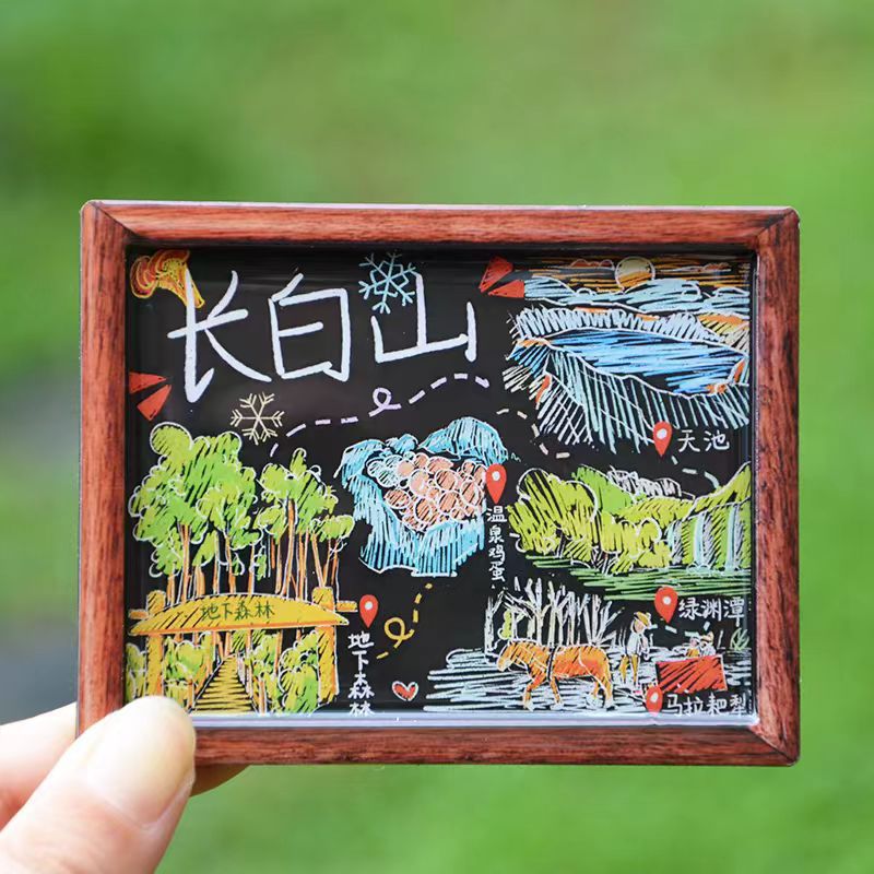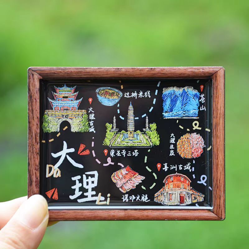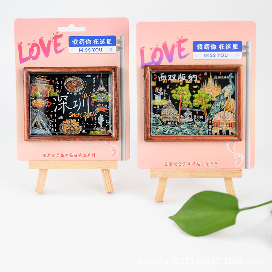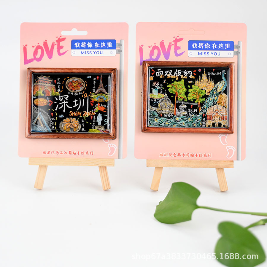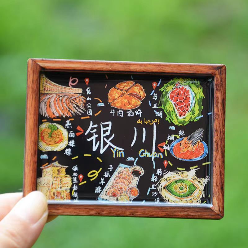 Родной город Лу Сюня, Шаосин Байкаоюань, туристическая достопримечательность Шэнь Шень, креативная ручная роспись доски деревянная наклейка на холодильник