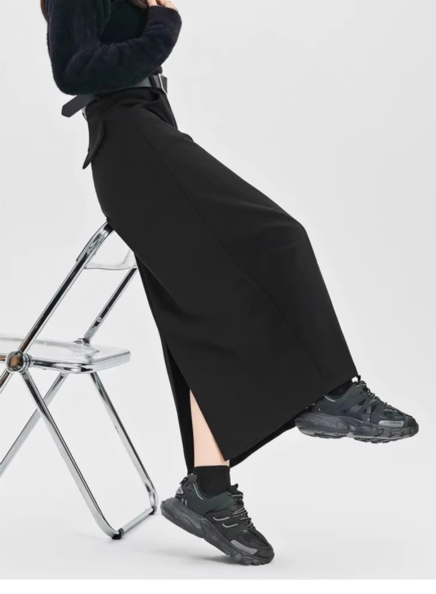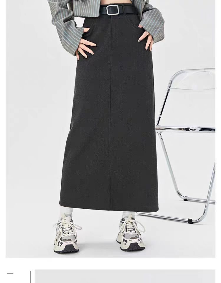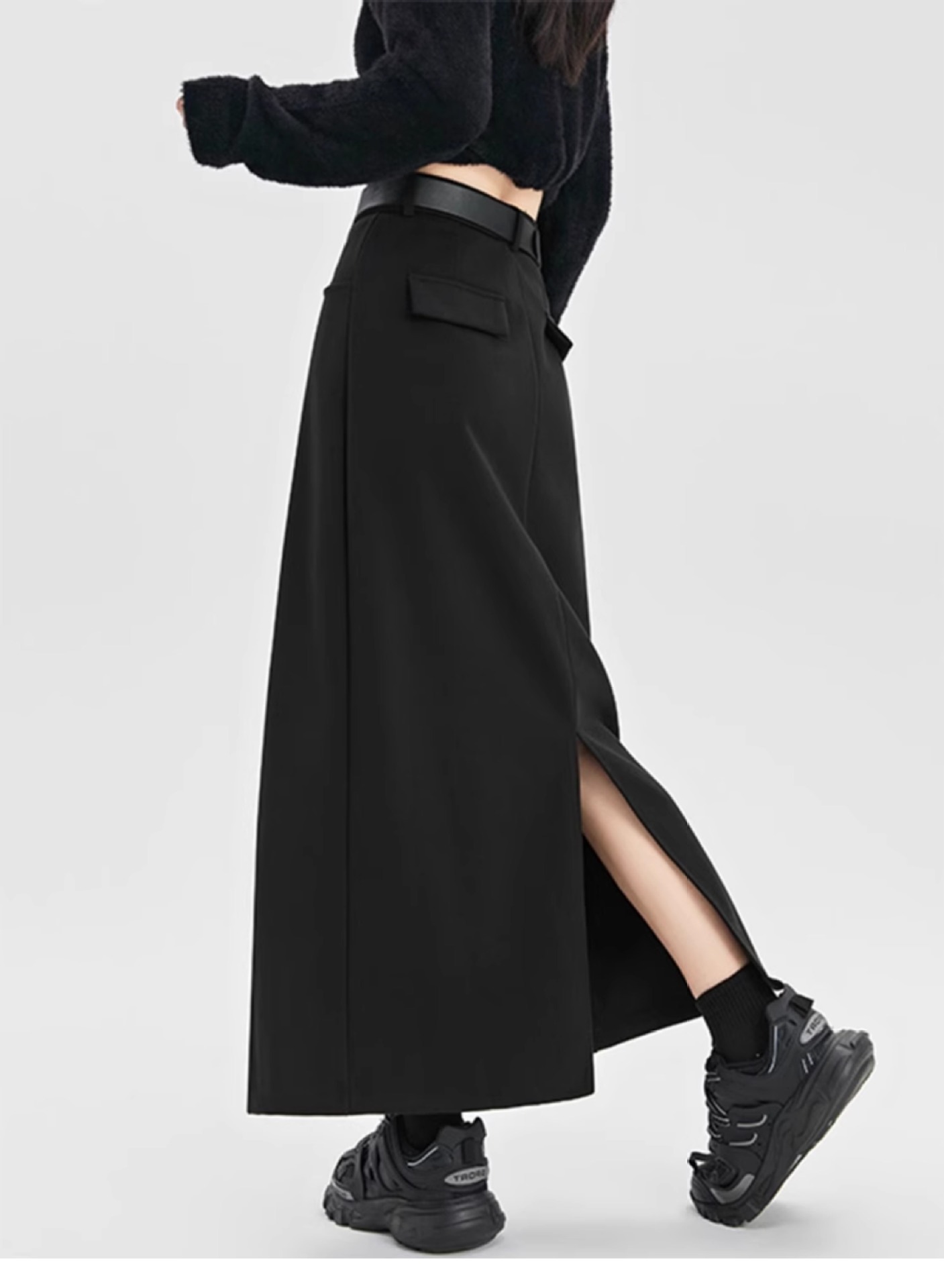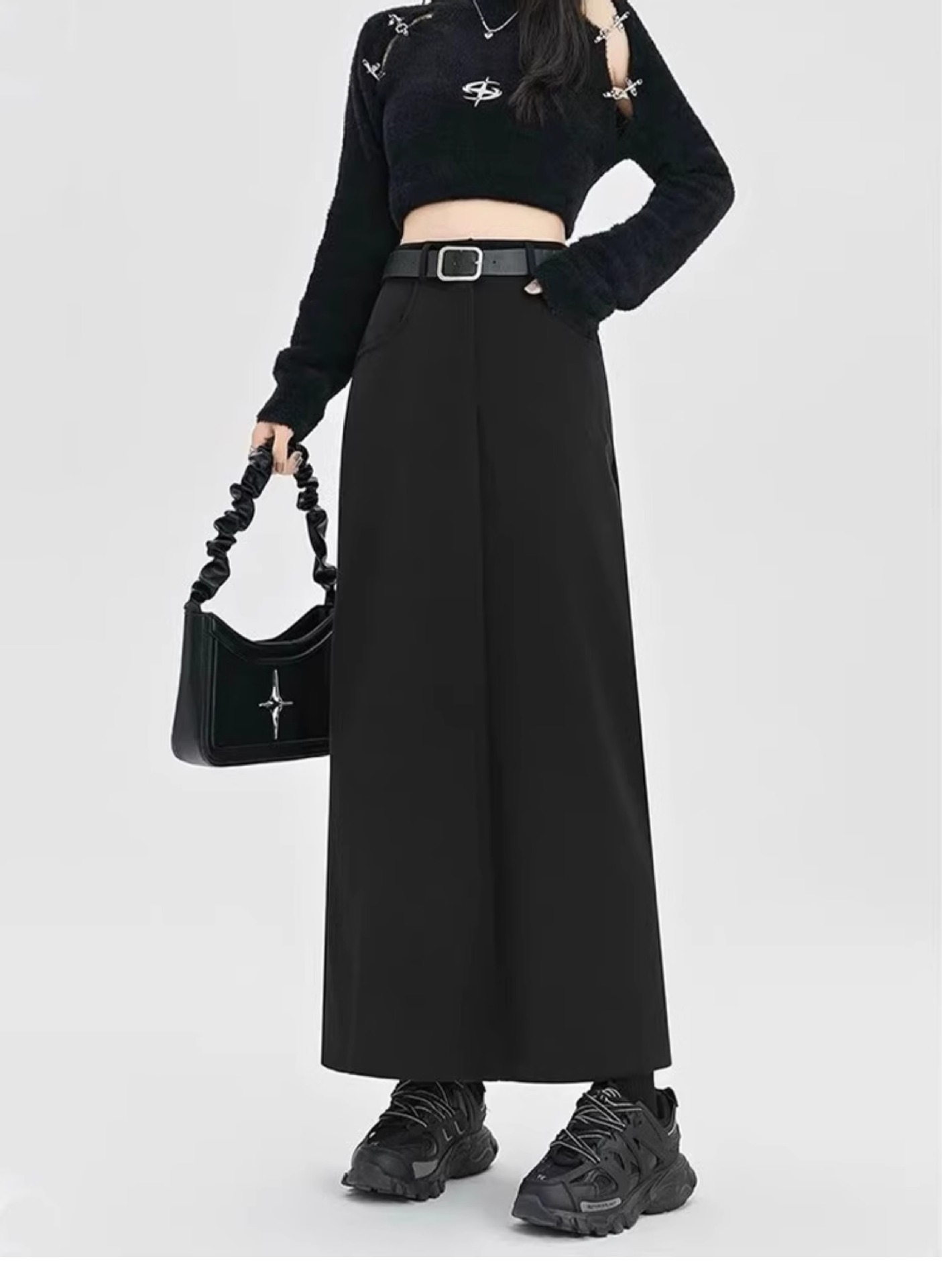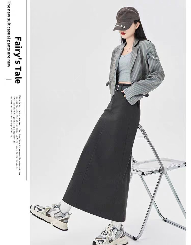 Черный костюм Юбка Женская Весна и Осень 2025 Прямая Ягодица Один шаг Юбка