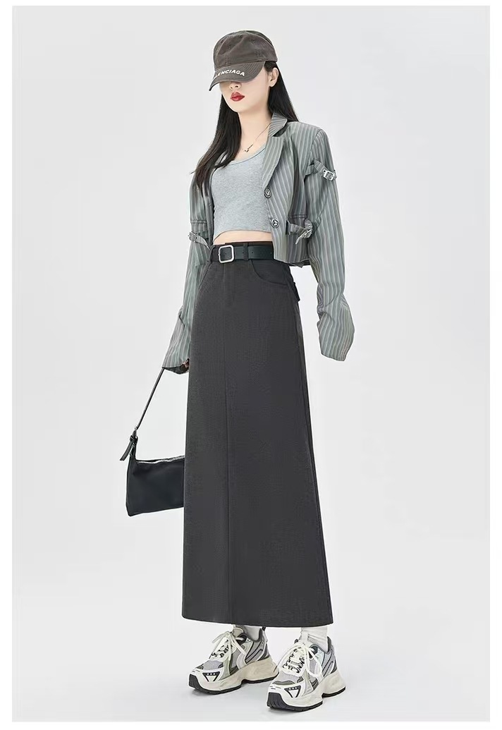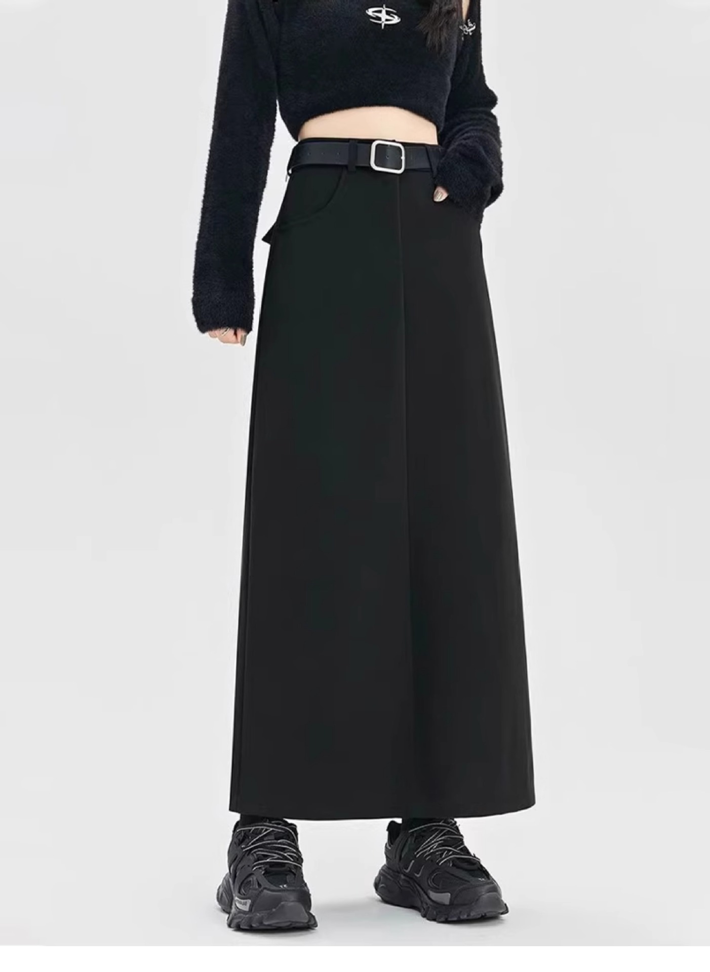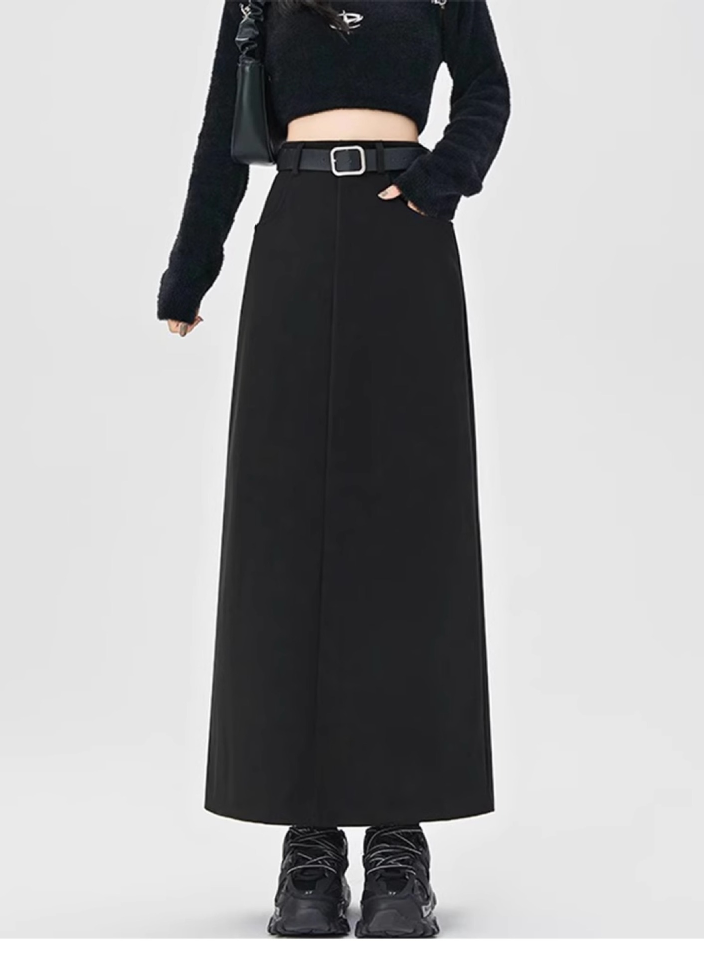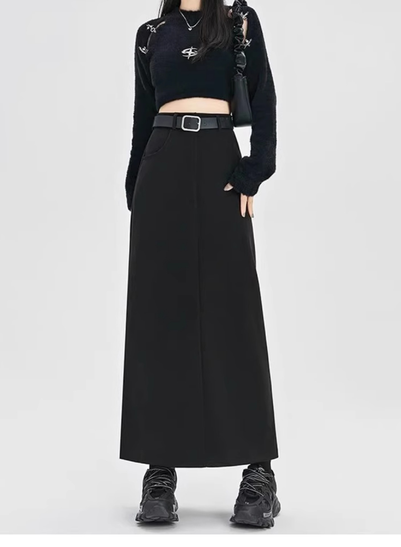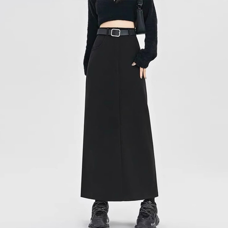 Черный костюм Юбка Женская Весна и Осень 2025 Прямая Ягодица Один шаг Юбка