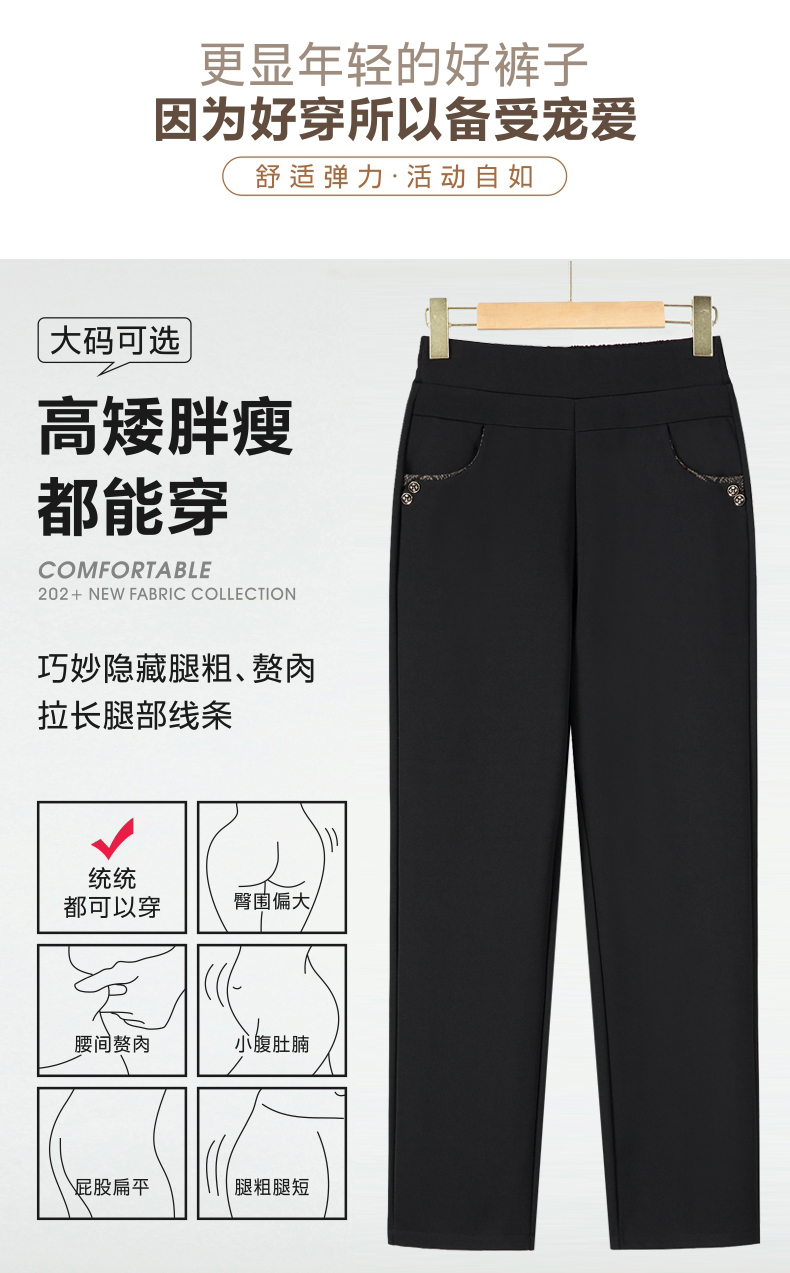 Женские брюки среднего и пожилого возраста весенние и осенние зимние брюки свободные с высокой талией мамы брюки старушки толстые бархатные бабушкины брюки