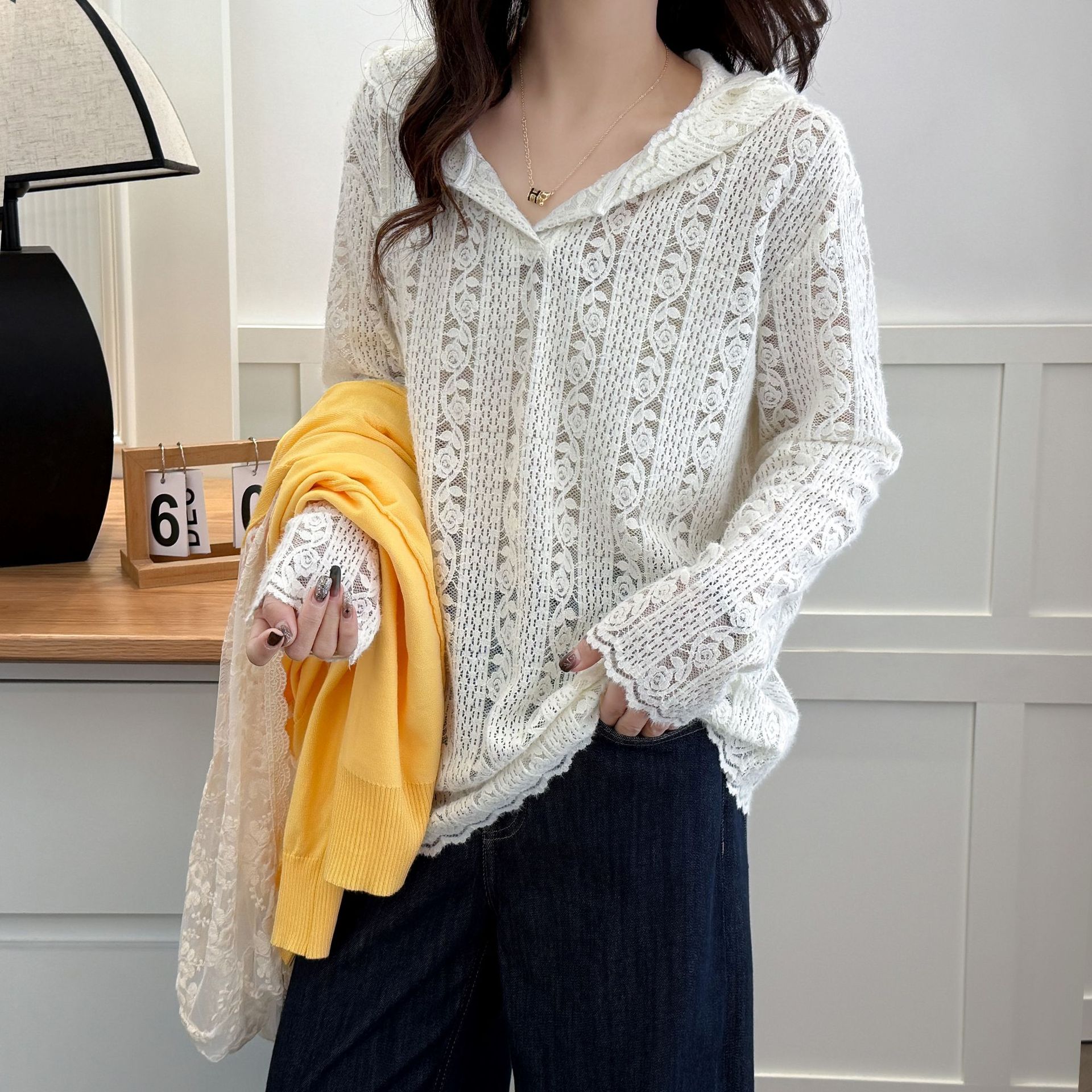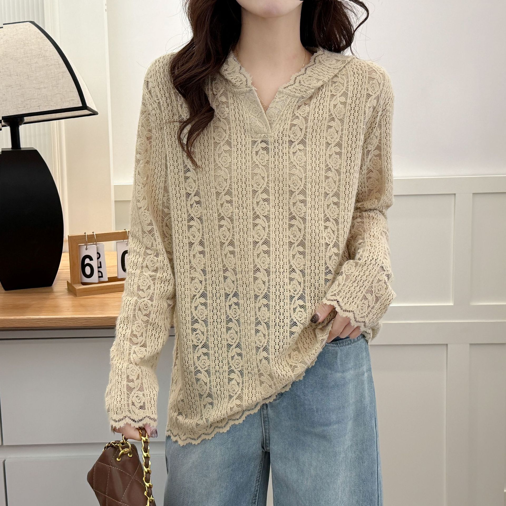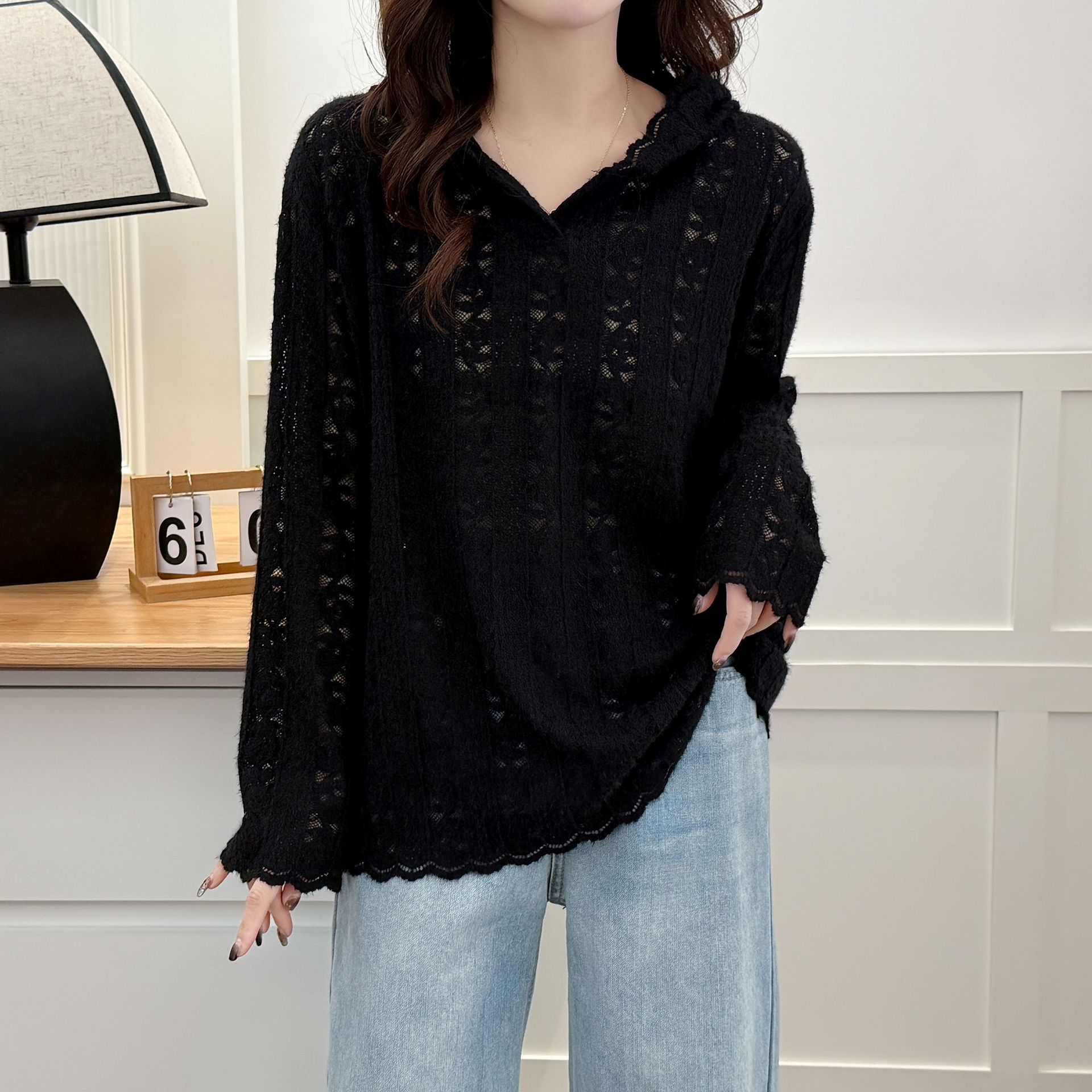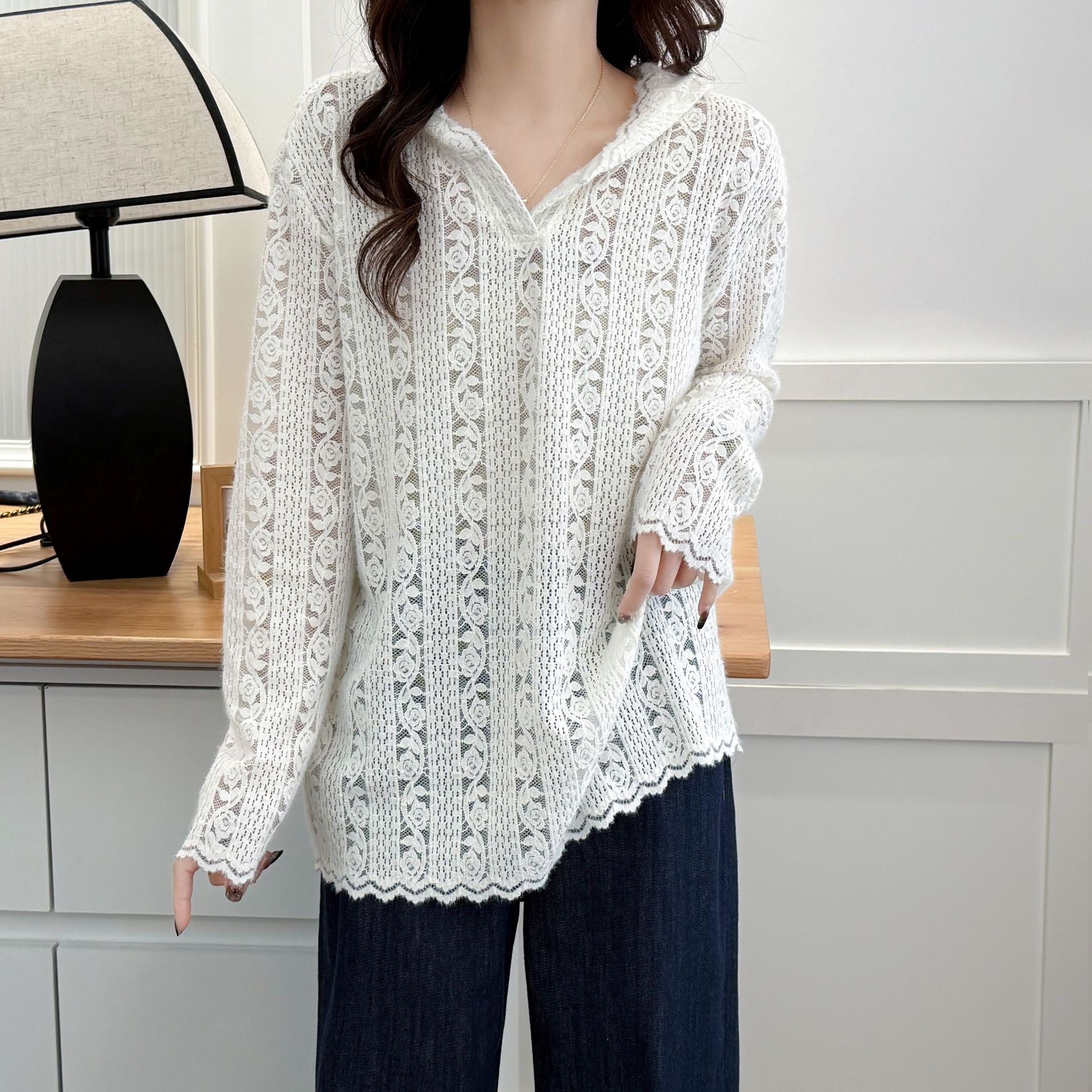 Цветочная кружевная рубашка большой размер женский топ 2025 новый толстый MM весенний сшитый толстовка стильный 2178